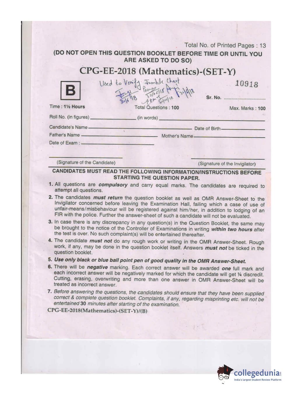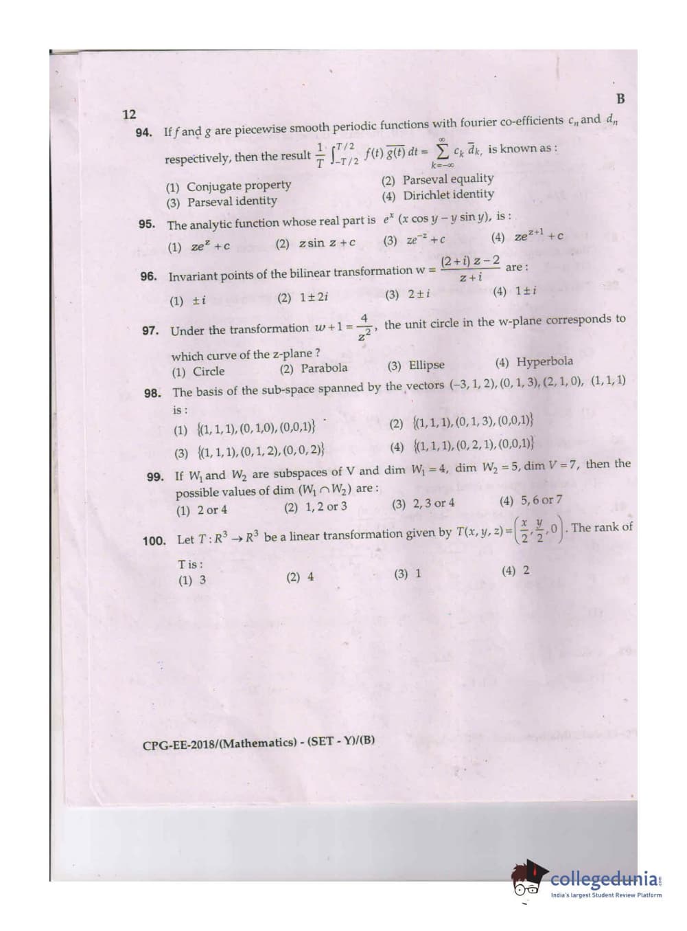 MDUCEE 2018 Mathematics Set B Question paper with answer key pdf is available for download. The exam was successfully organized by Maharishi Dayanand University. The question paper comprised a total of 100 questions.