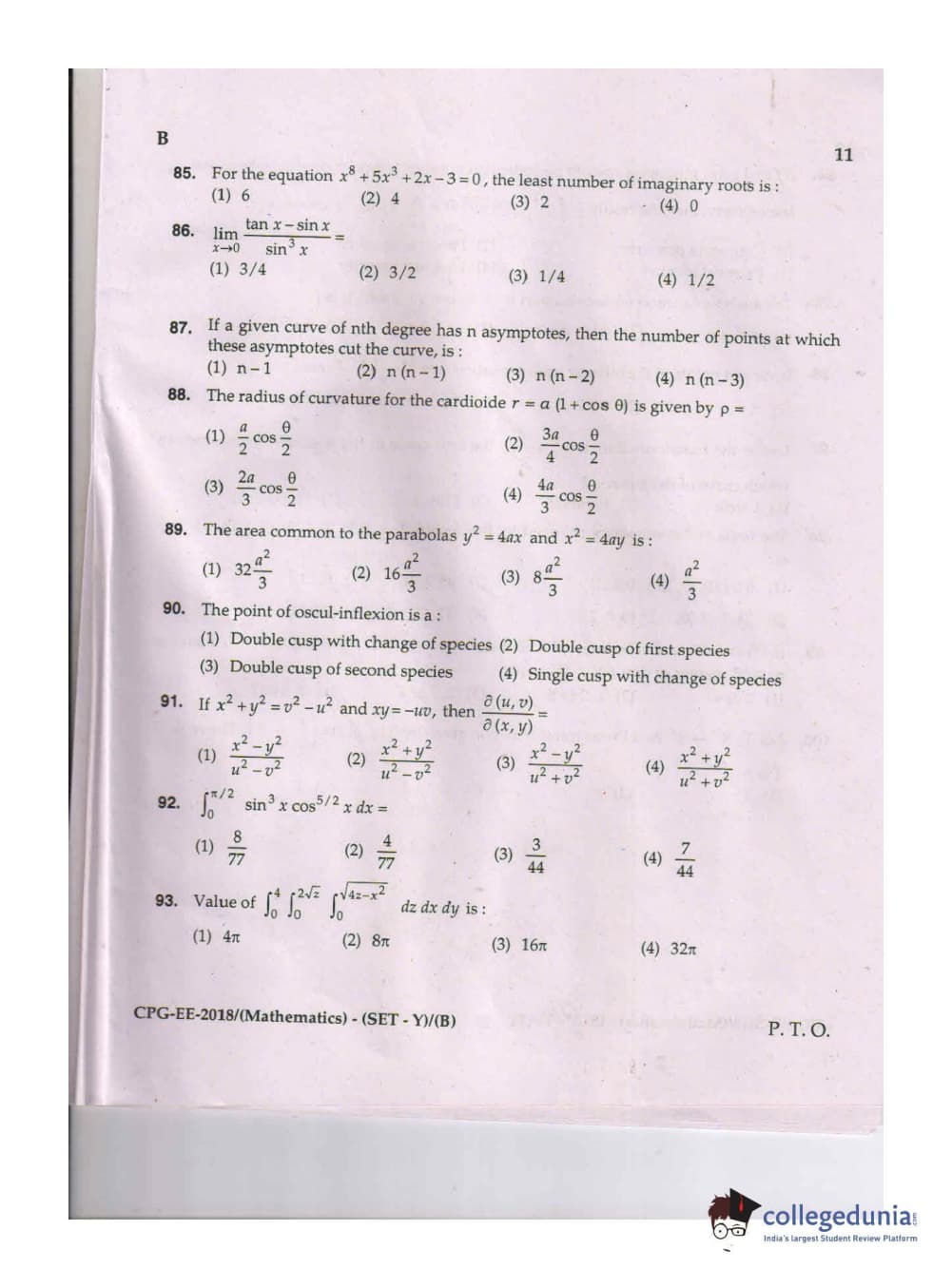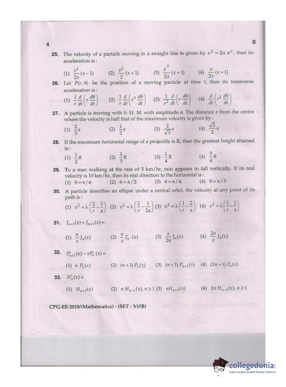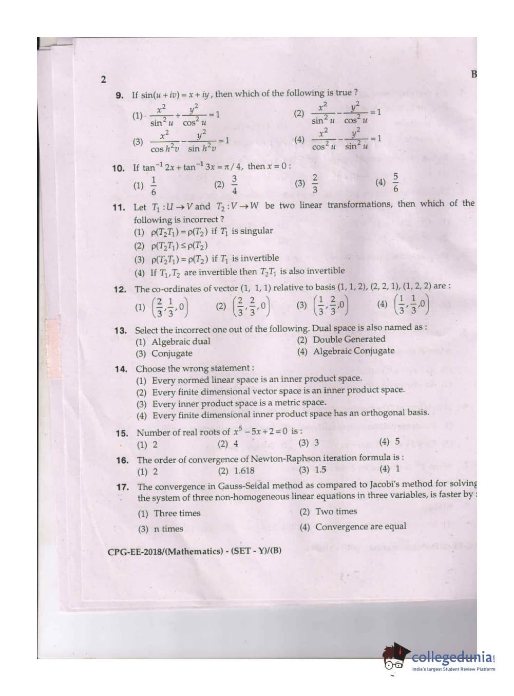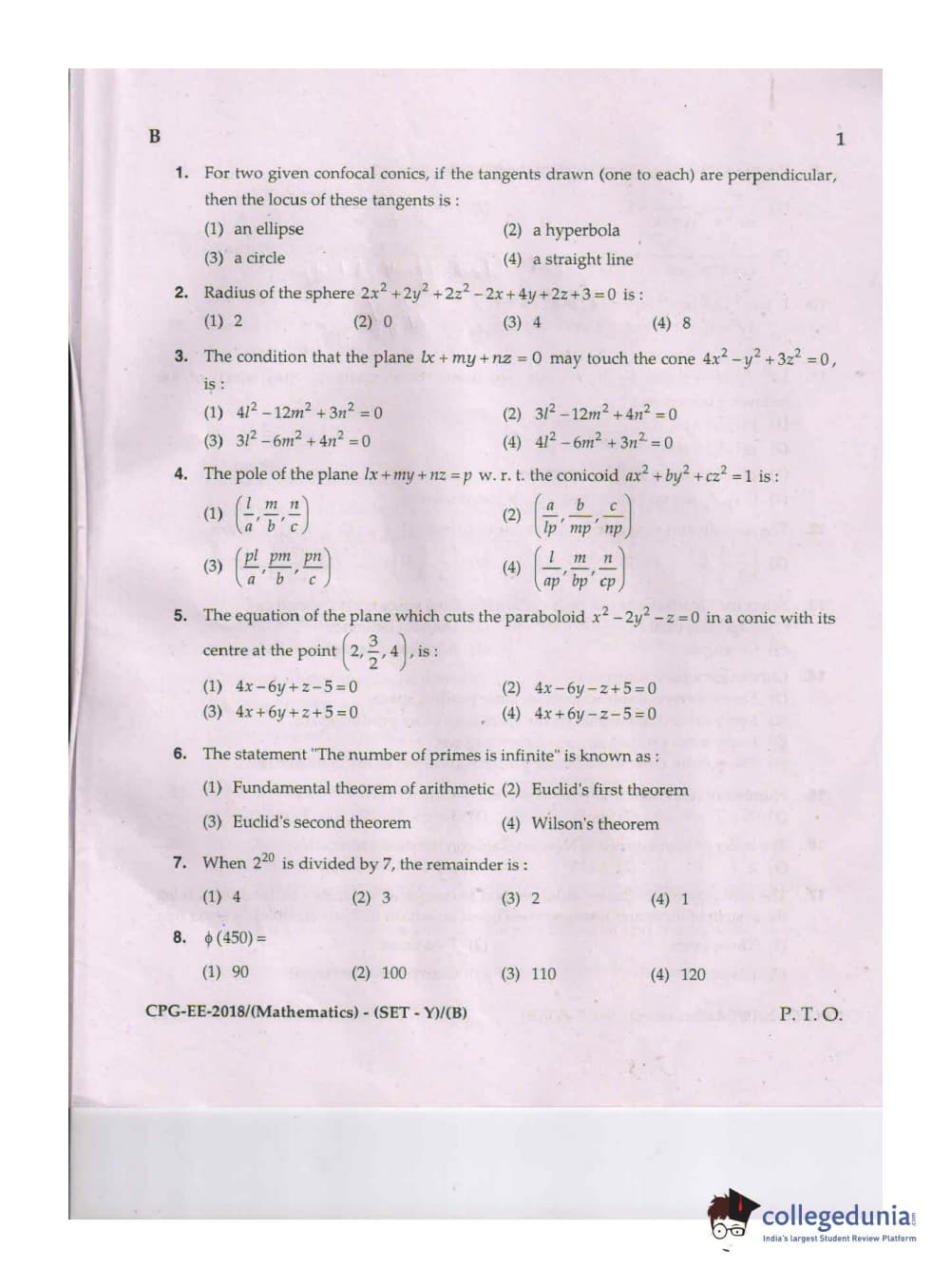 MDUCEE 2018 Mathematics Set B Question Paper with Answer Key PDFs
