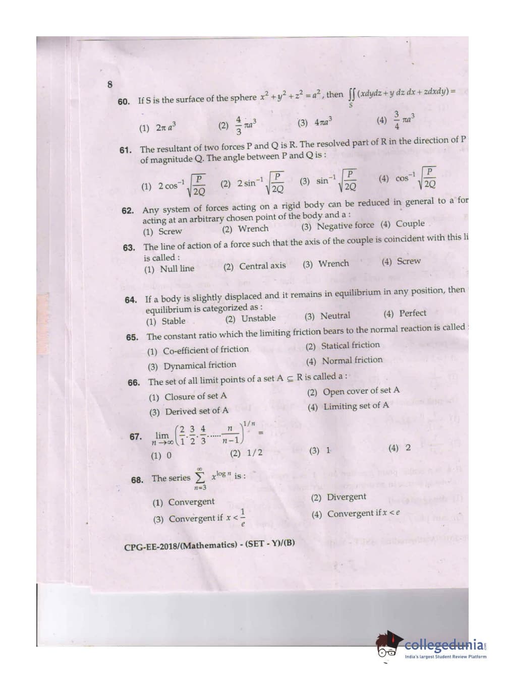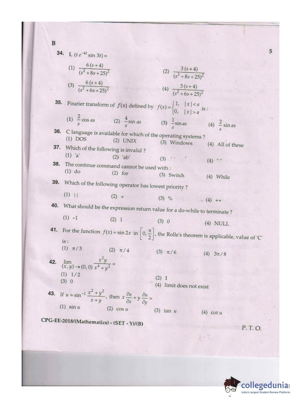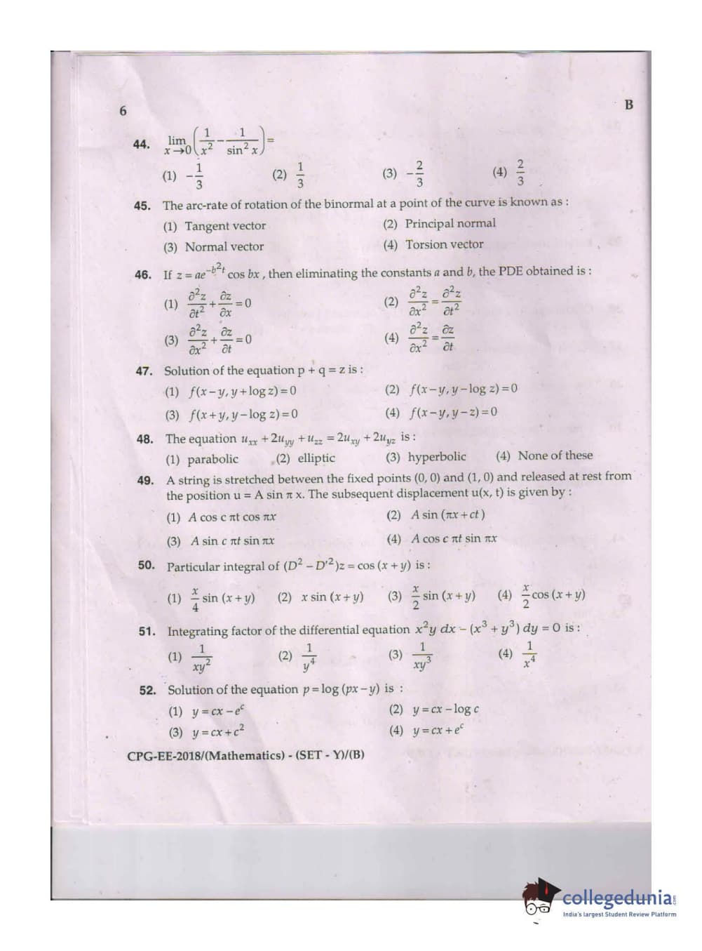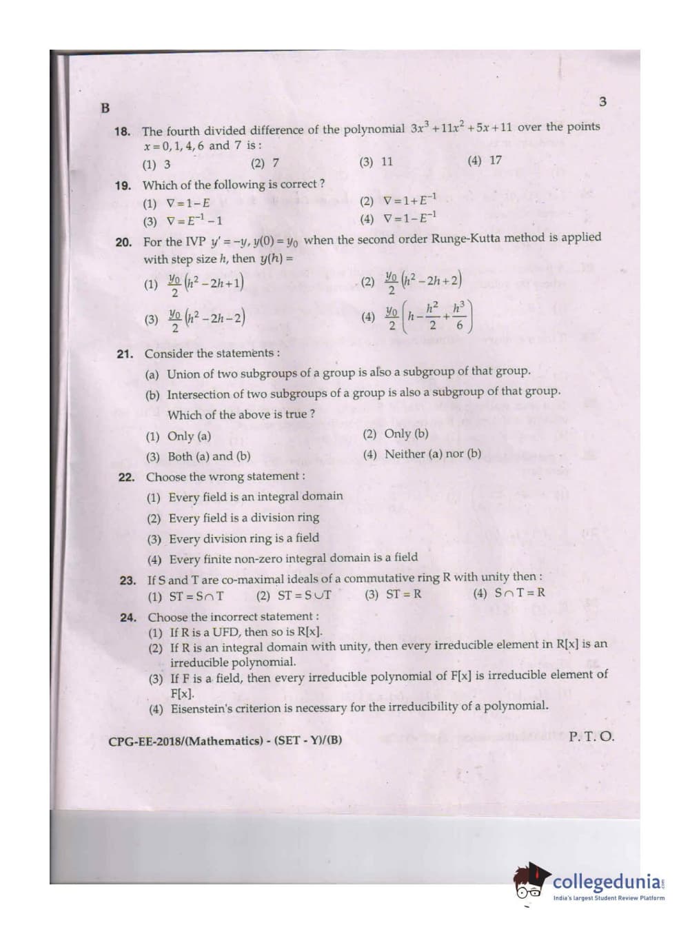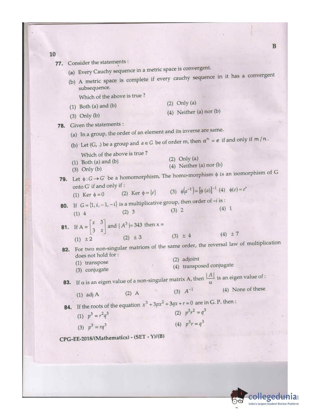 MDUCEE 2018 Mathematics Set B Question Paper with Answer Key PDFs