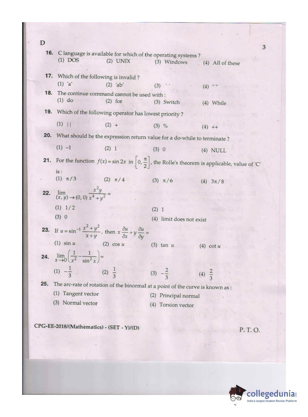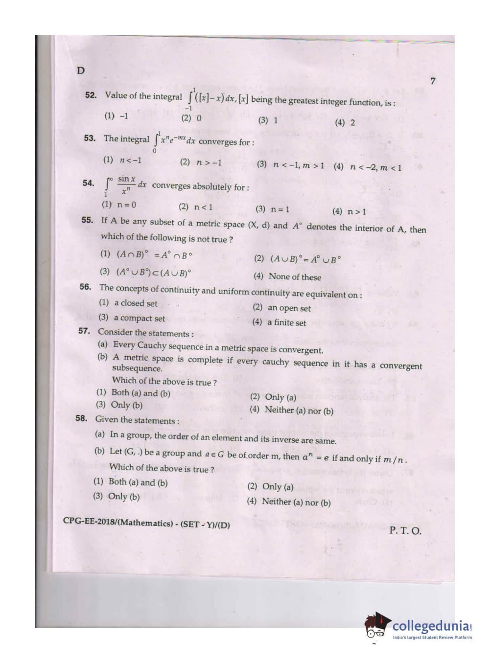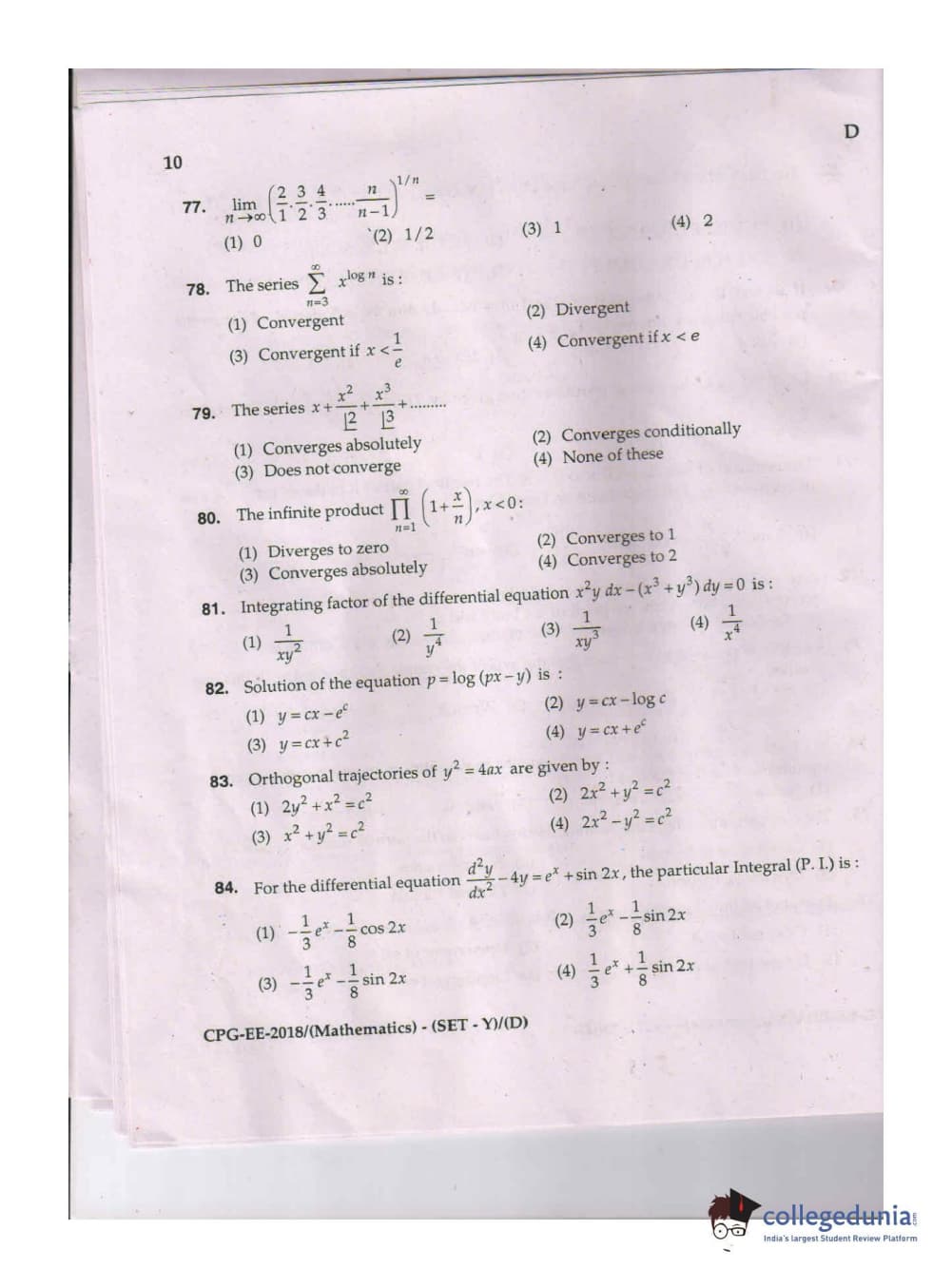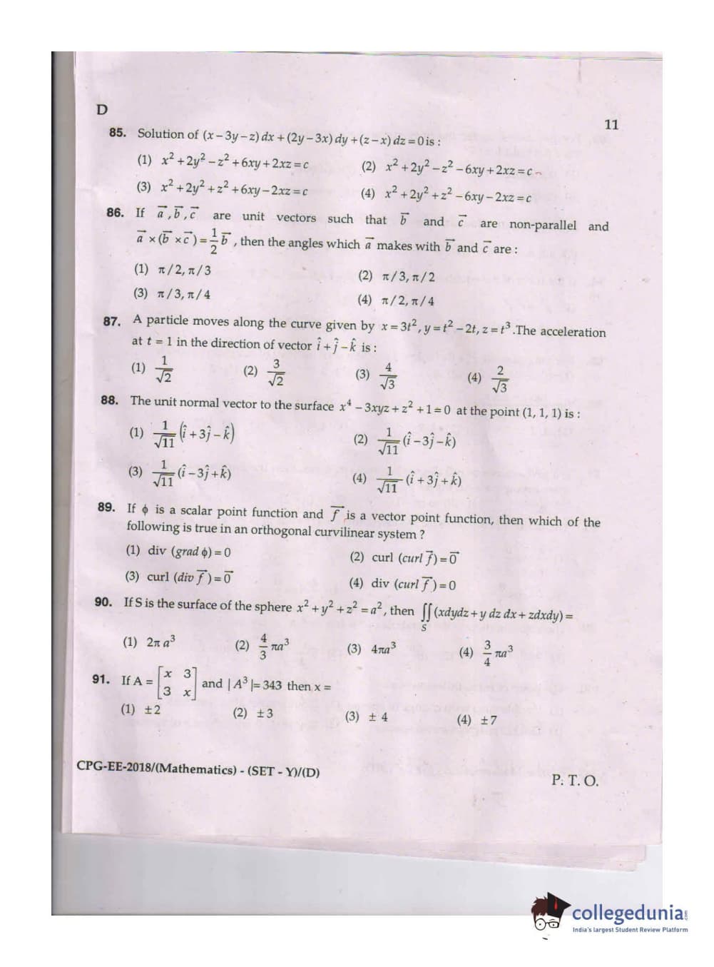 MDUCEE 2018 Mathematics Set D Question Paper with Answer Key PDFs