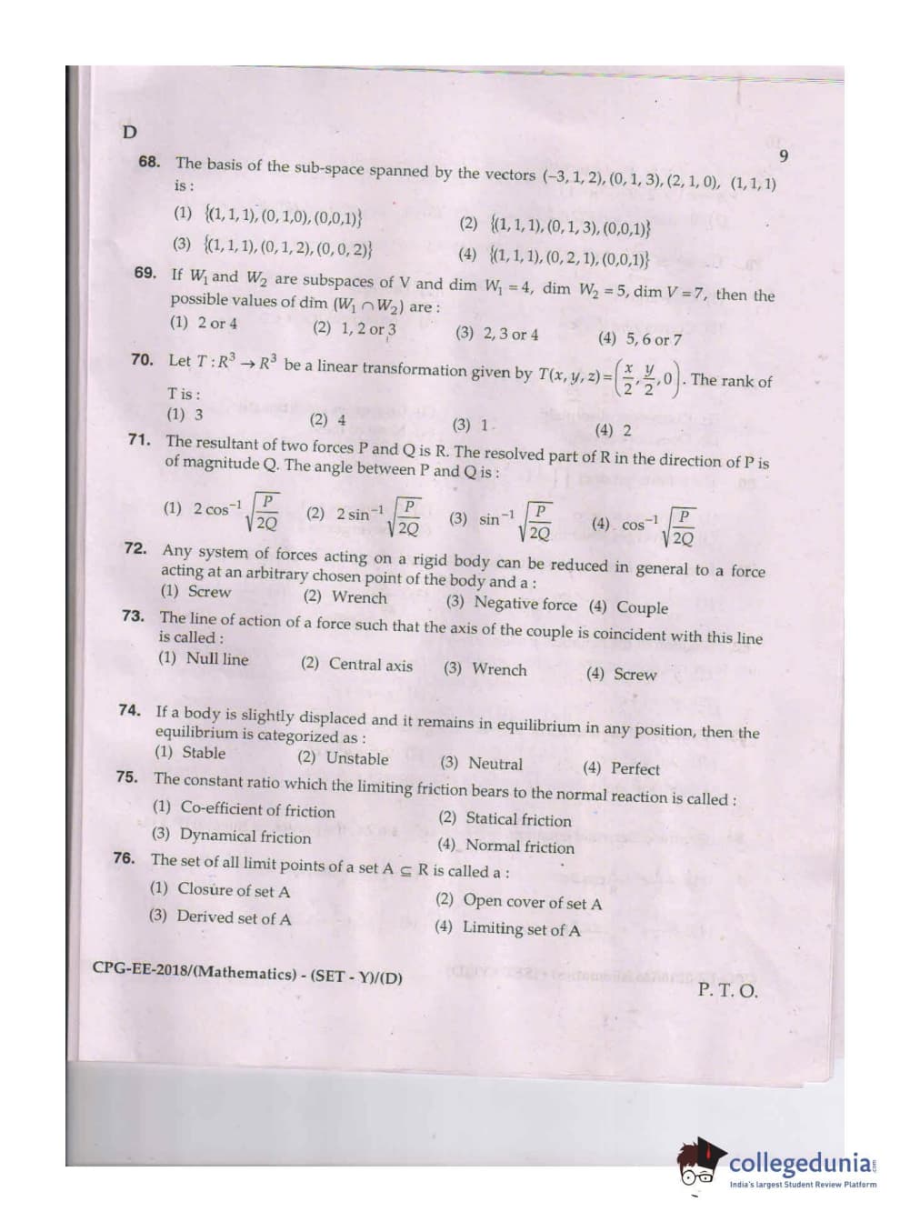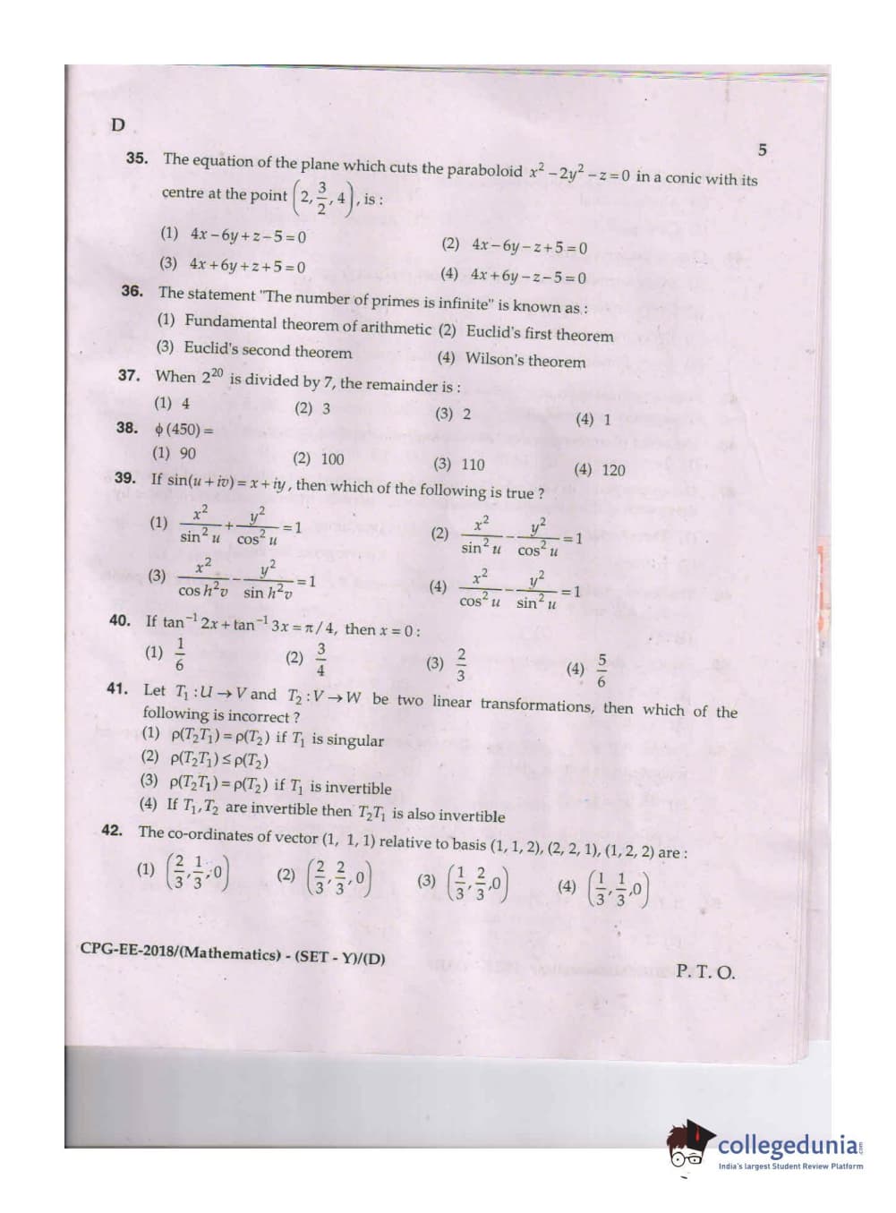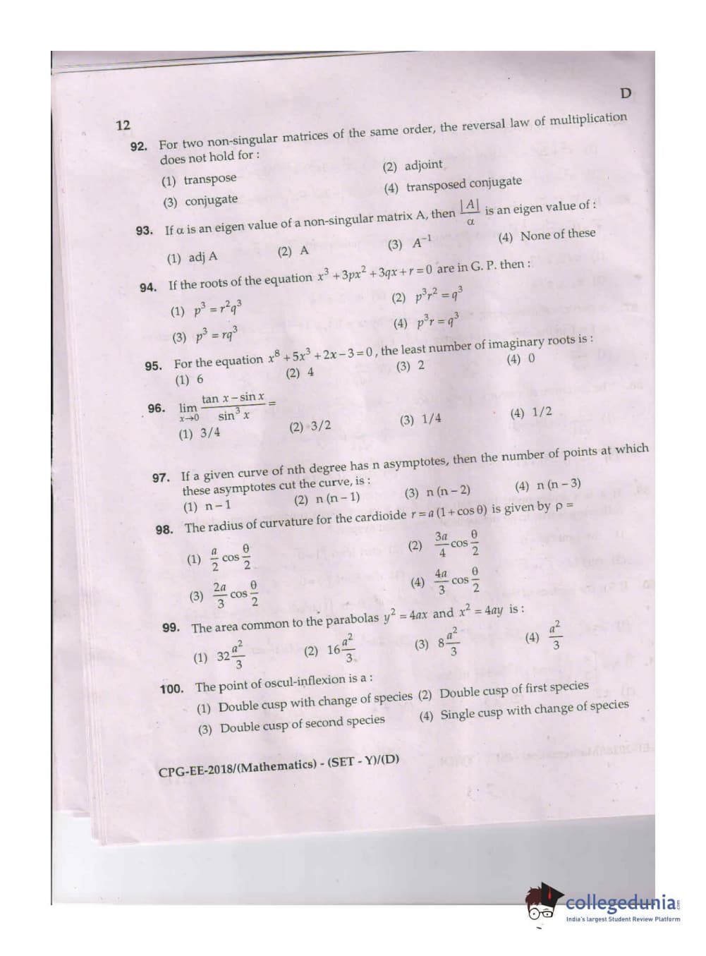MDUCEE 2018 Mathematics Set D Question paper with answer key pdf is available for download. The exam was successfully organized by Maharishi Dayanand University. The question paper comprised a total of 100 questions.