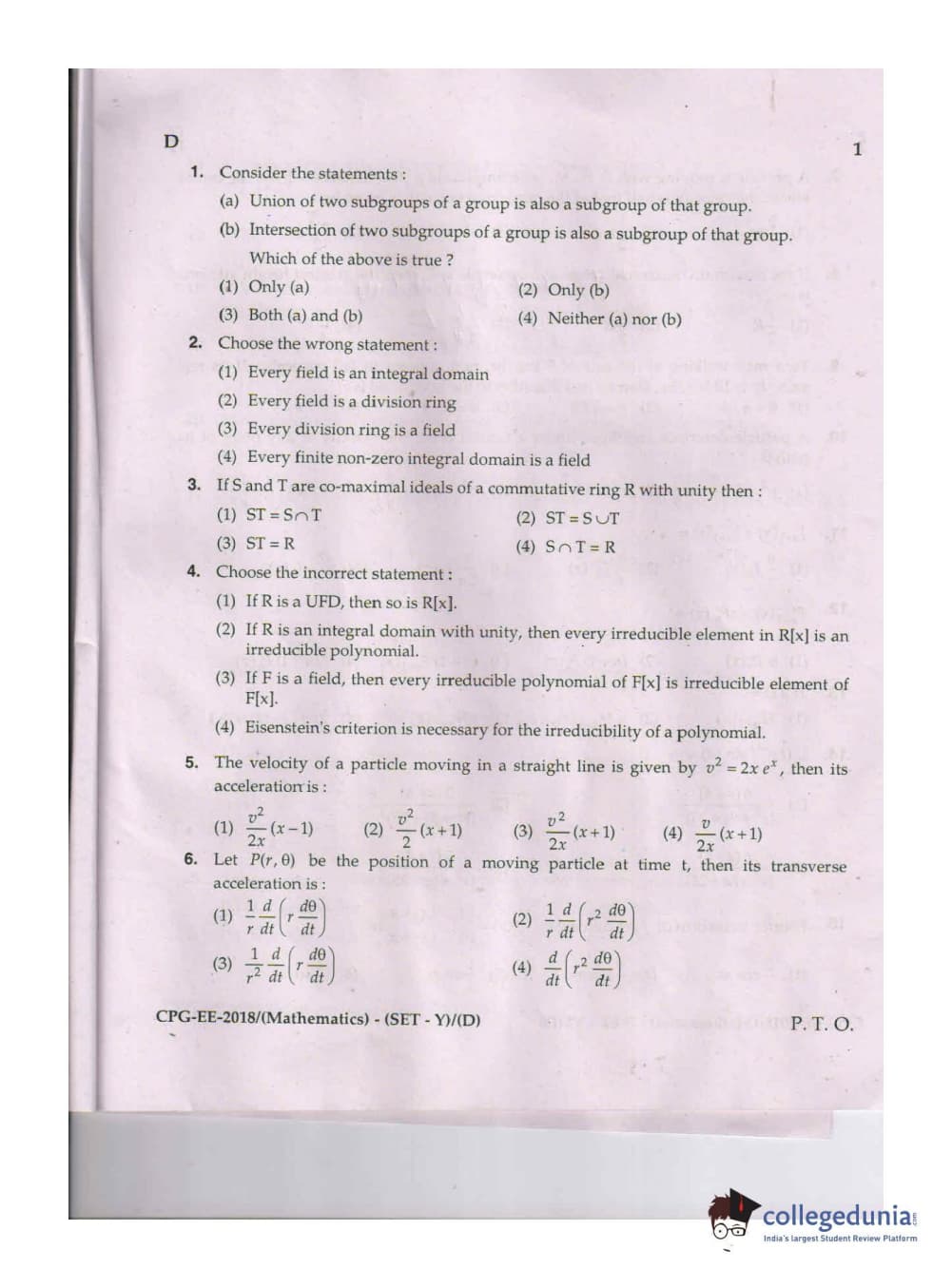 | MDUCEE 2018 Mathematics Set D Question Paper PDF | MDUCEE 2018 Mathematics Set D Answer Key PDF |