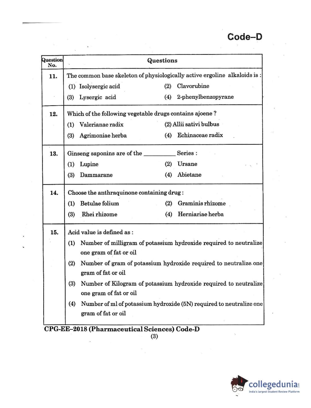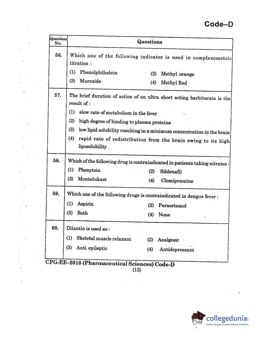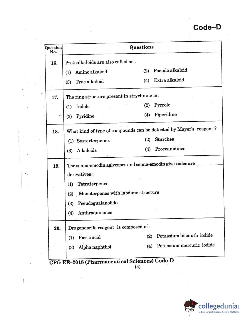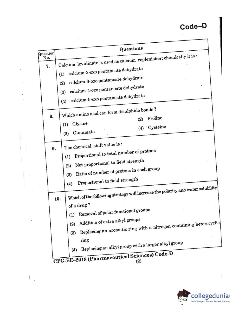 | MDUCEE 2018 Pharmaceutical Sciences Set D Question Paper PDF | MDUCEE 2018 Pharmaceutical Sciences Set D Answer Key PDF |