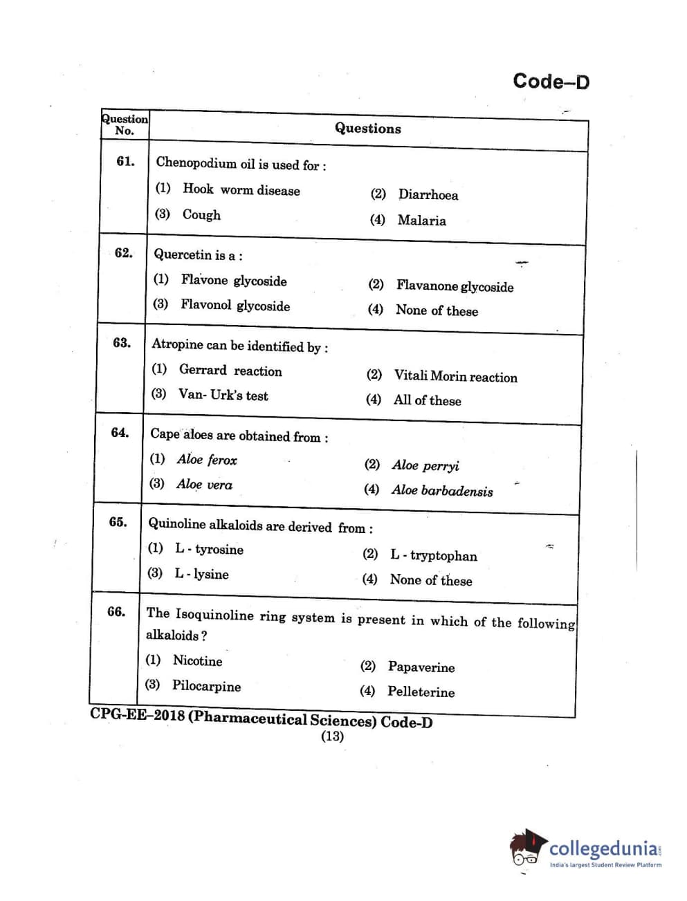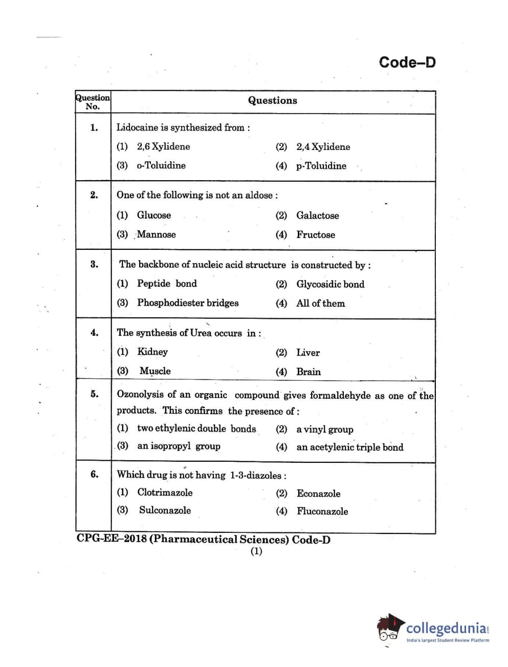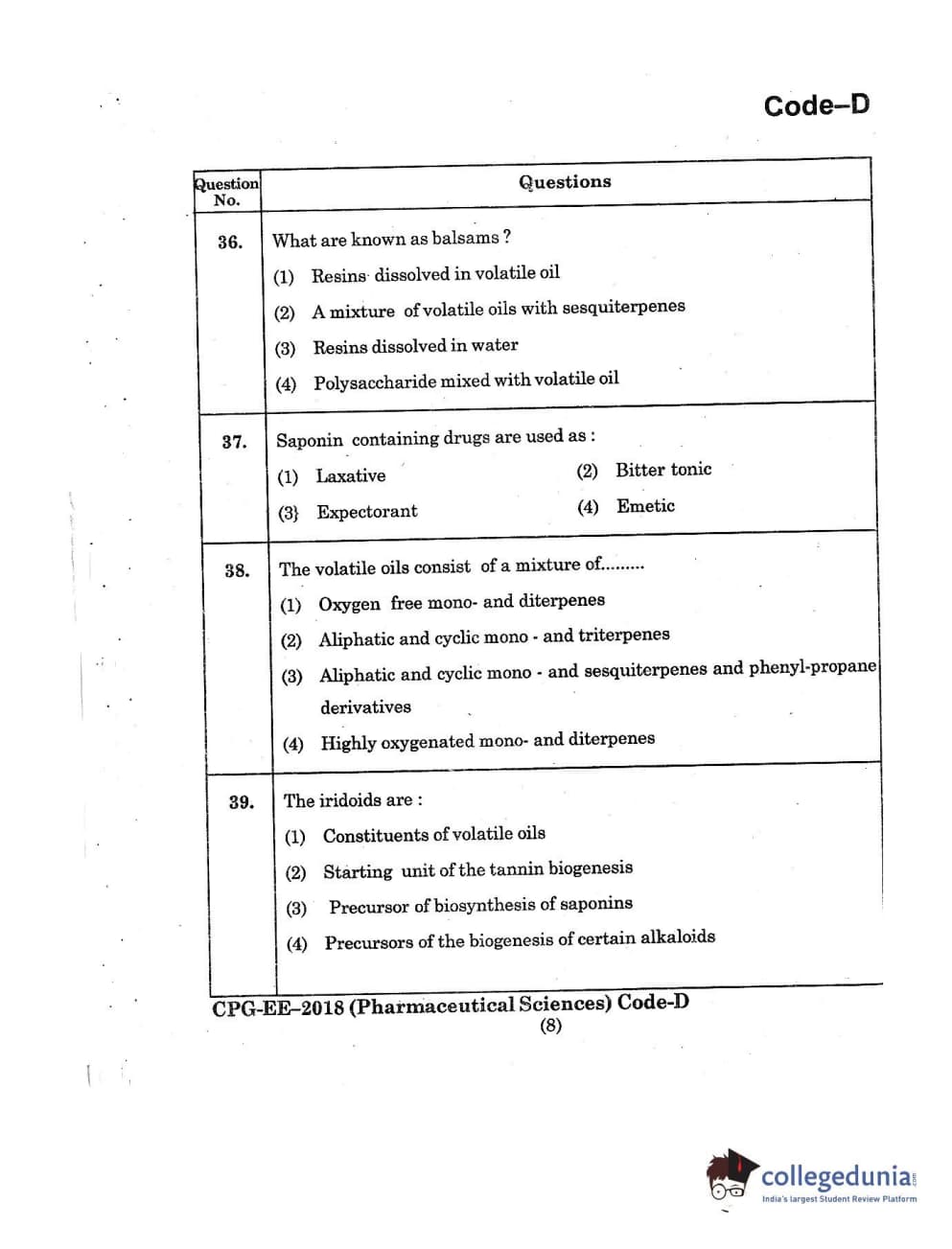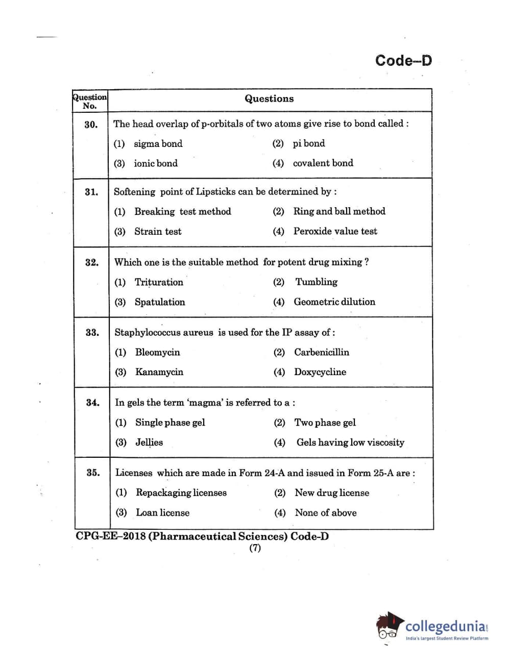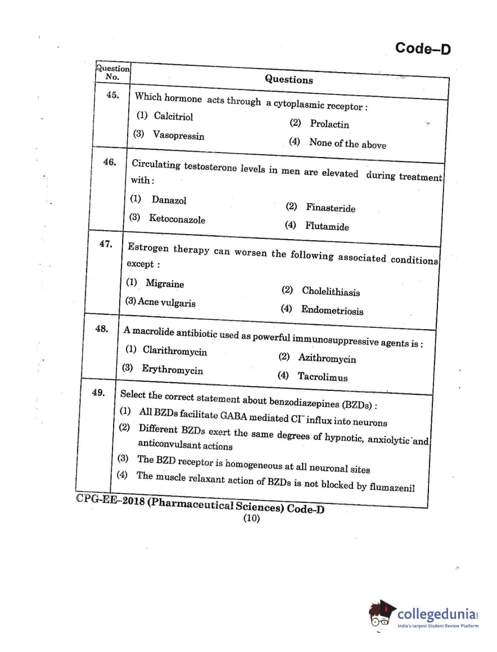 | MDUCEE 2018 Pharmaceutical Sciences Set D Question Paper PDF | MDUCEE 2018 Pharmaceutical Sciences Set D Answer Key PDF |