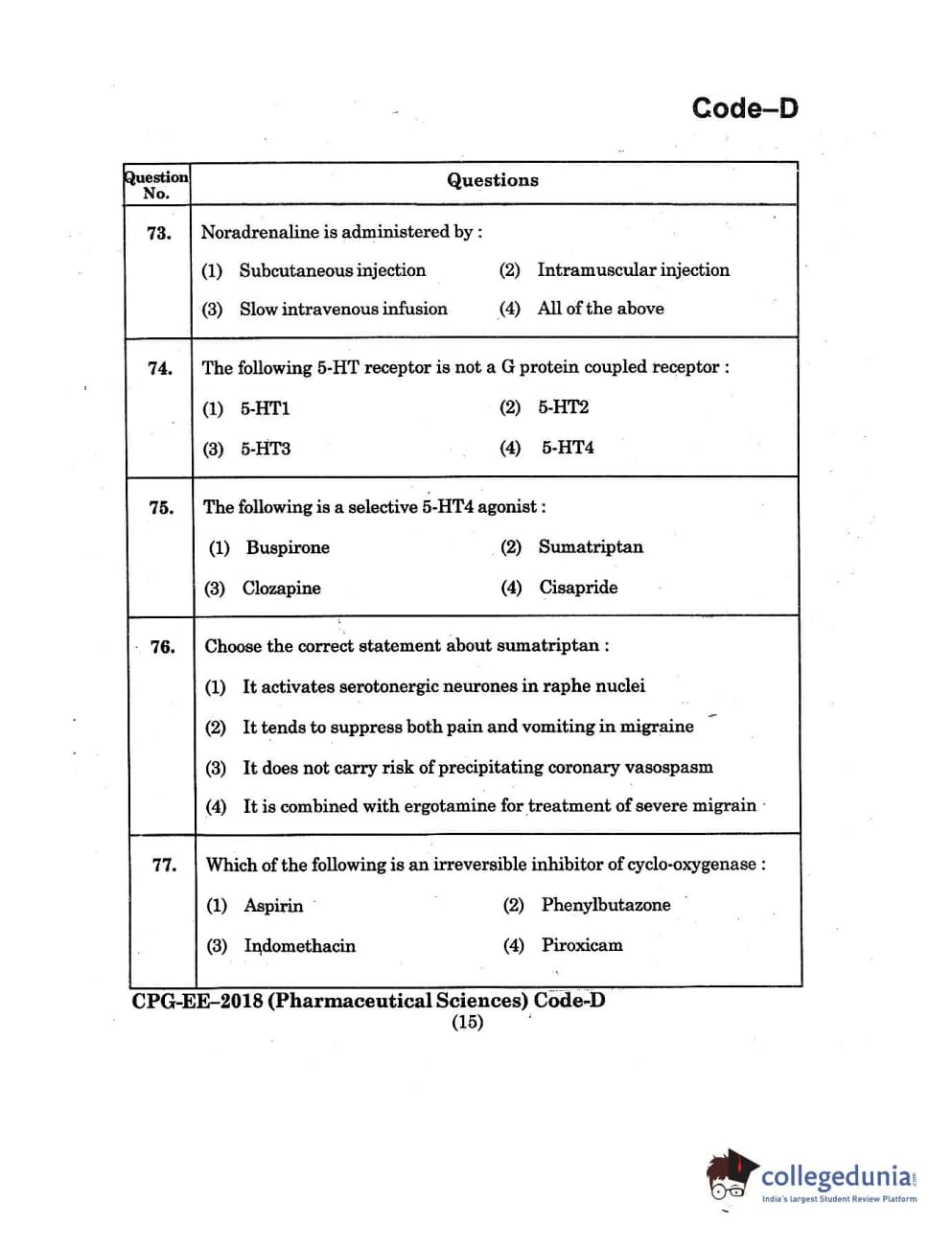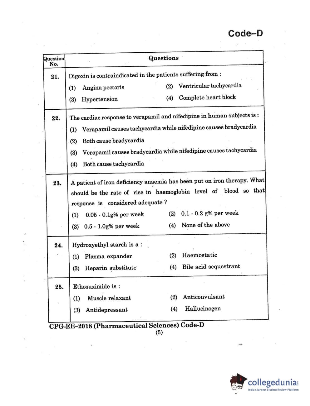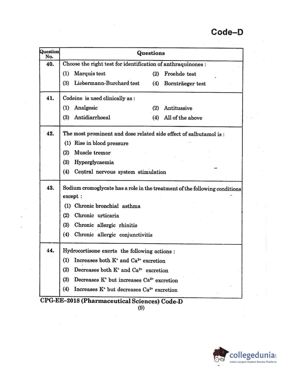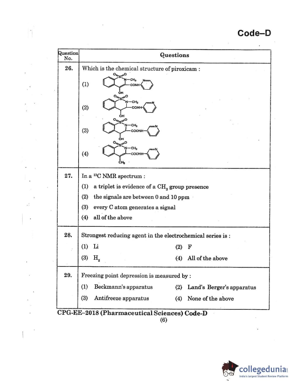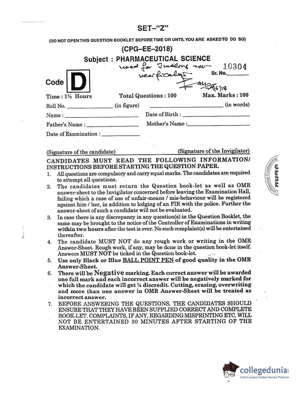 | MDUCEE 2018 Pharmaceutical Sciences Set D Question Paper PDF | MDUCEE 2018 Pharmaceutical Sciences Set D Answer Key PDF |
