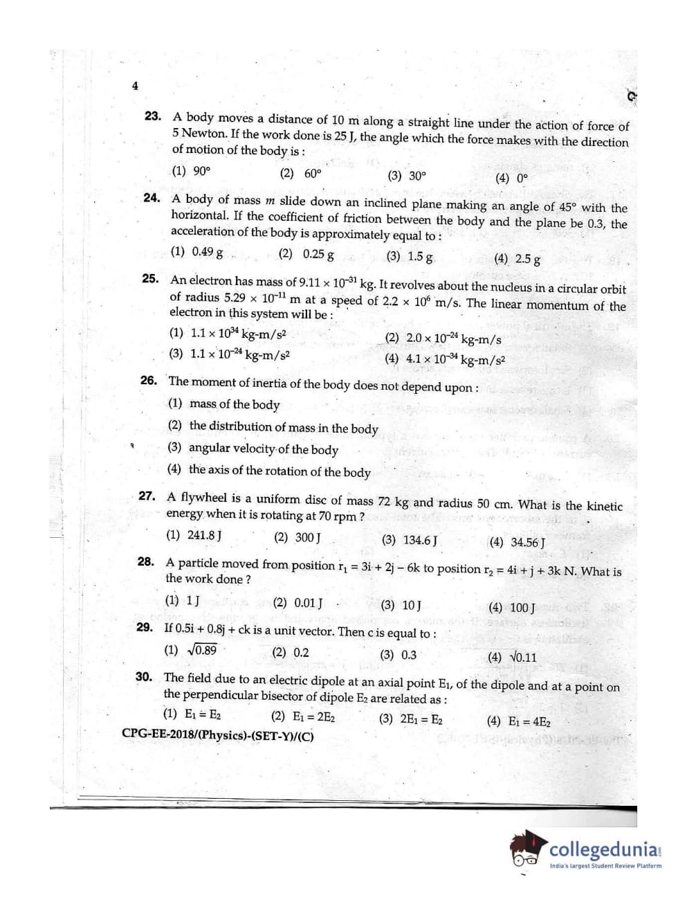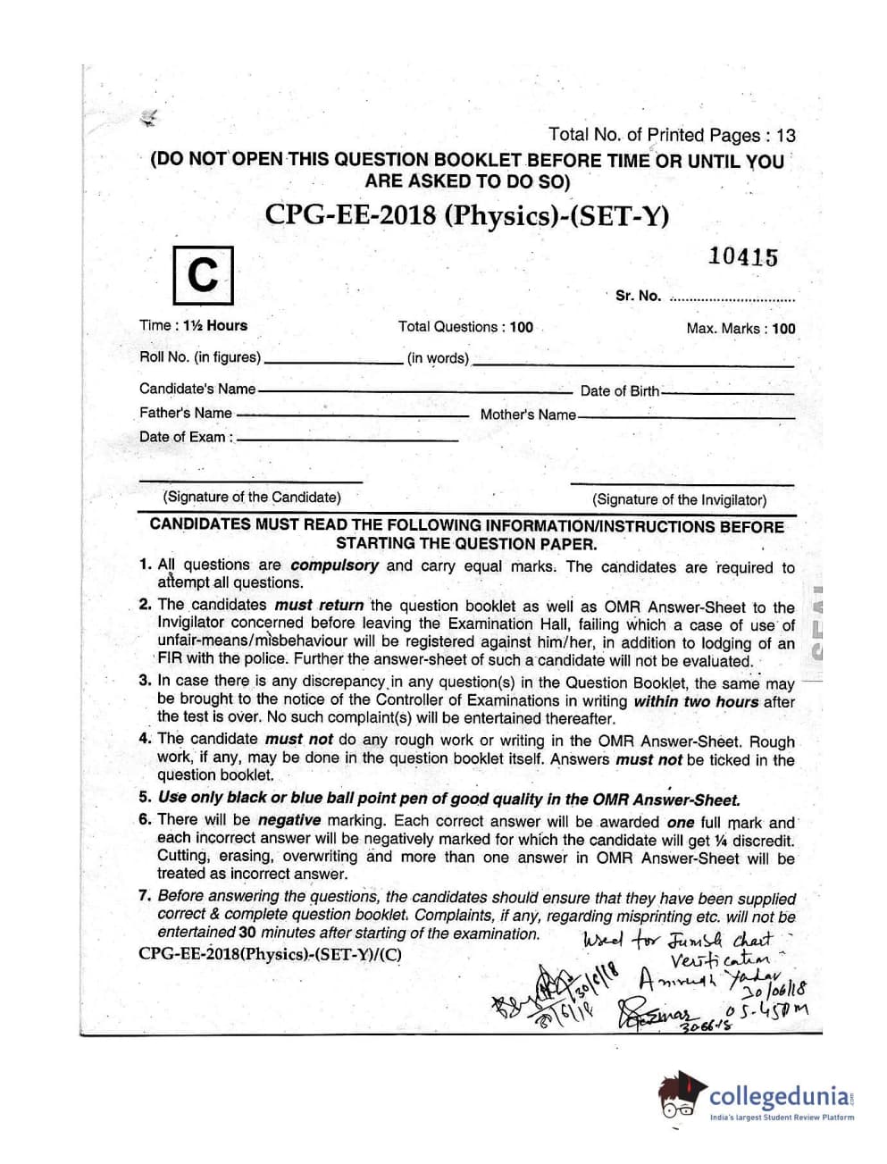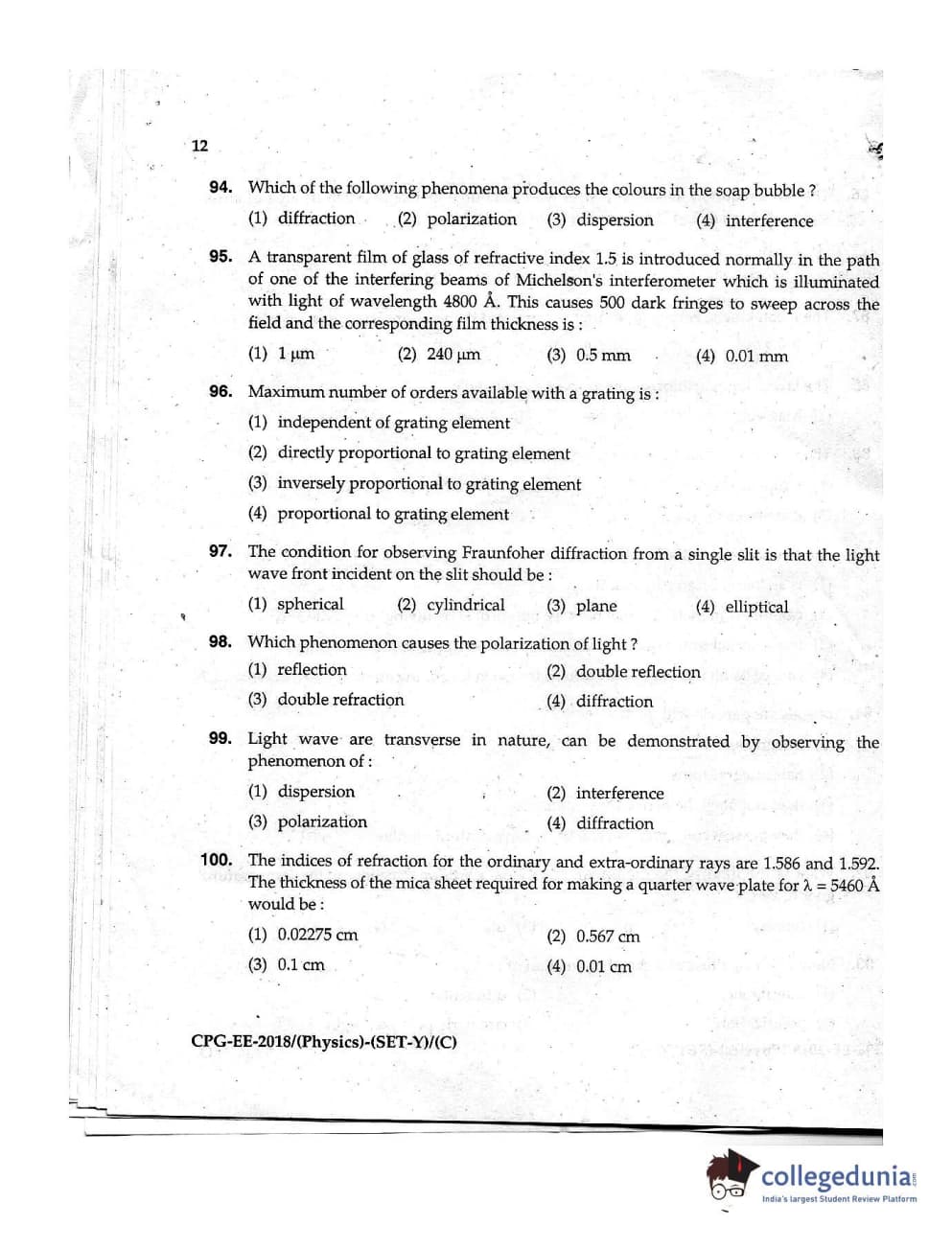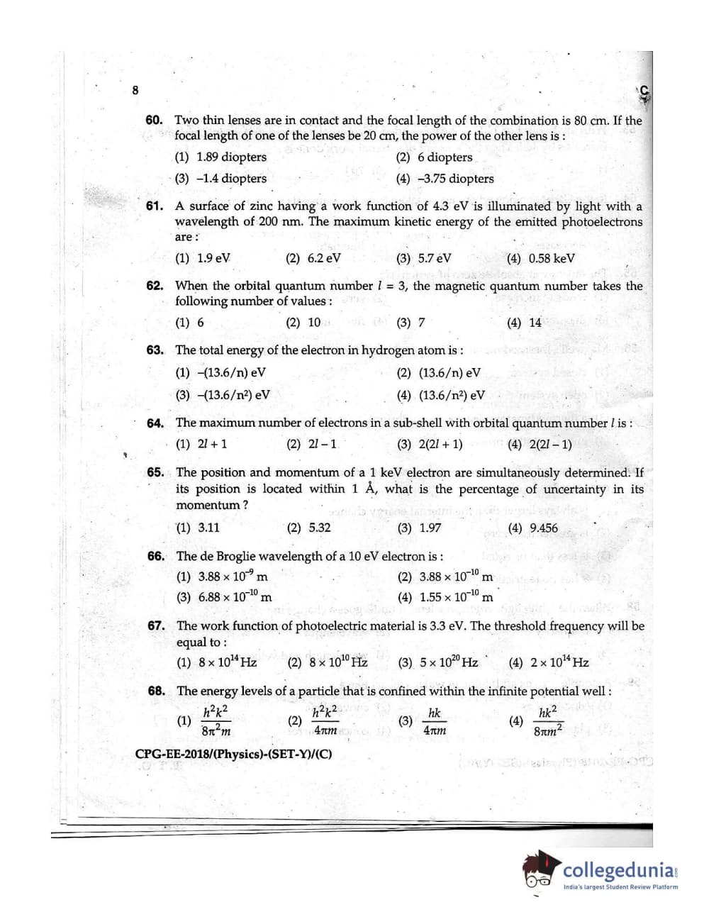 MDUCEE 2018 Physics Set C Question Paper with Answer Key PDFs
