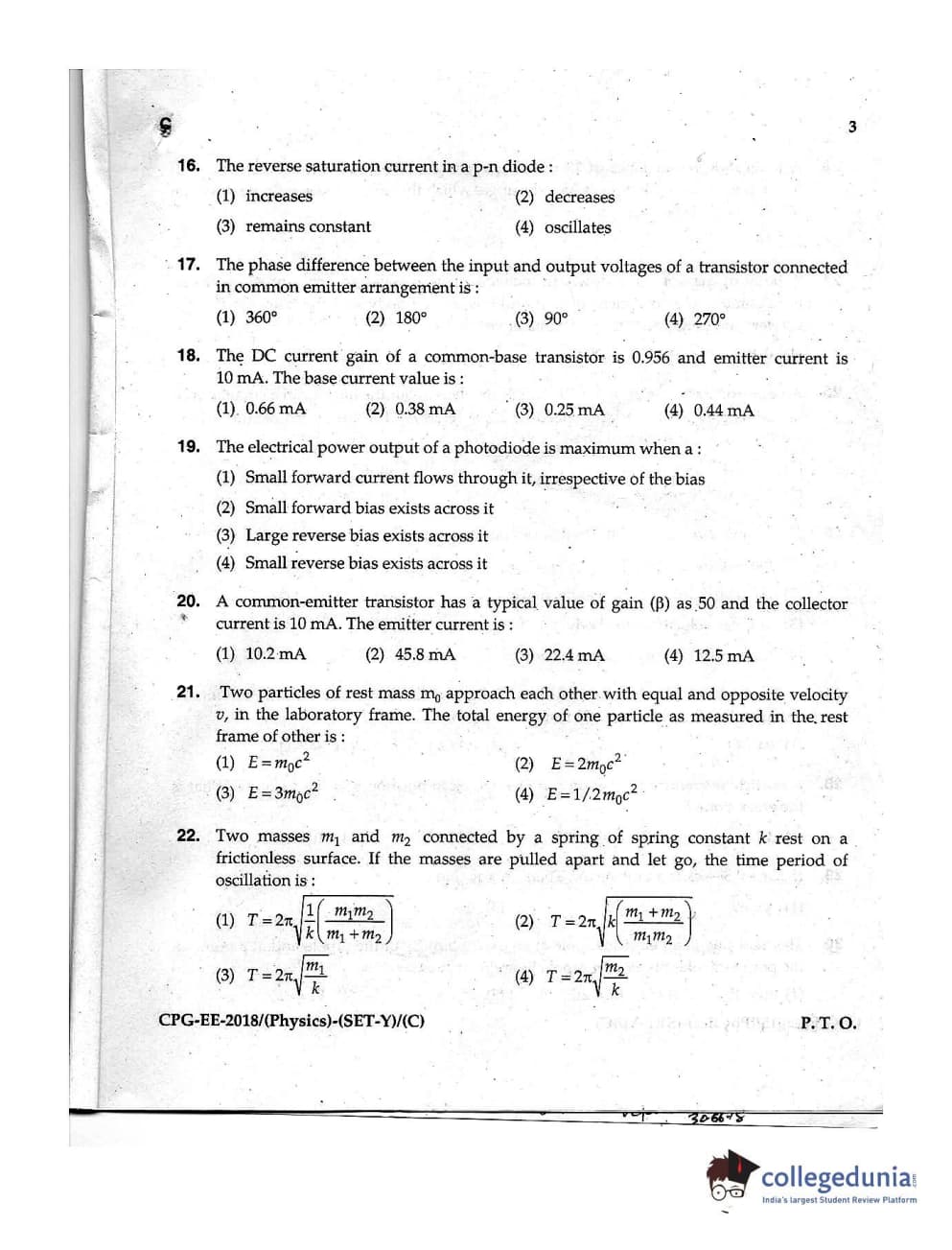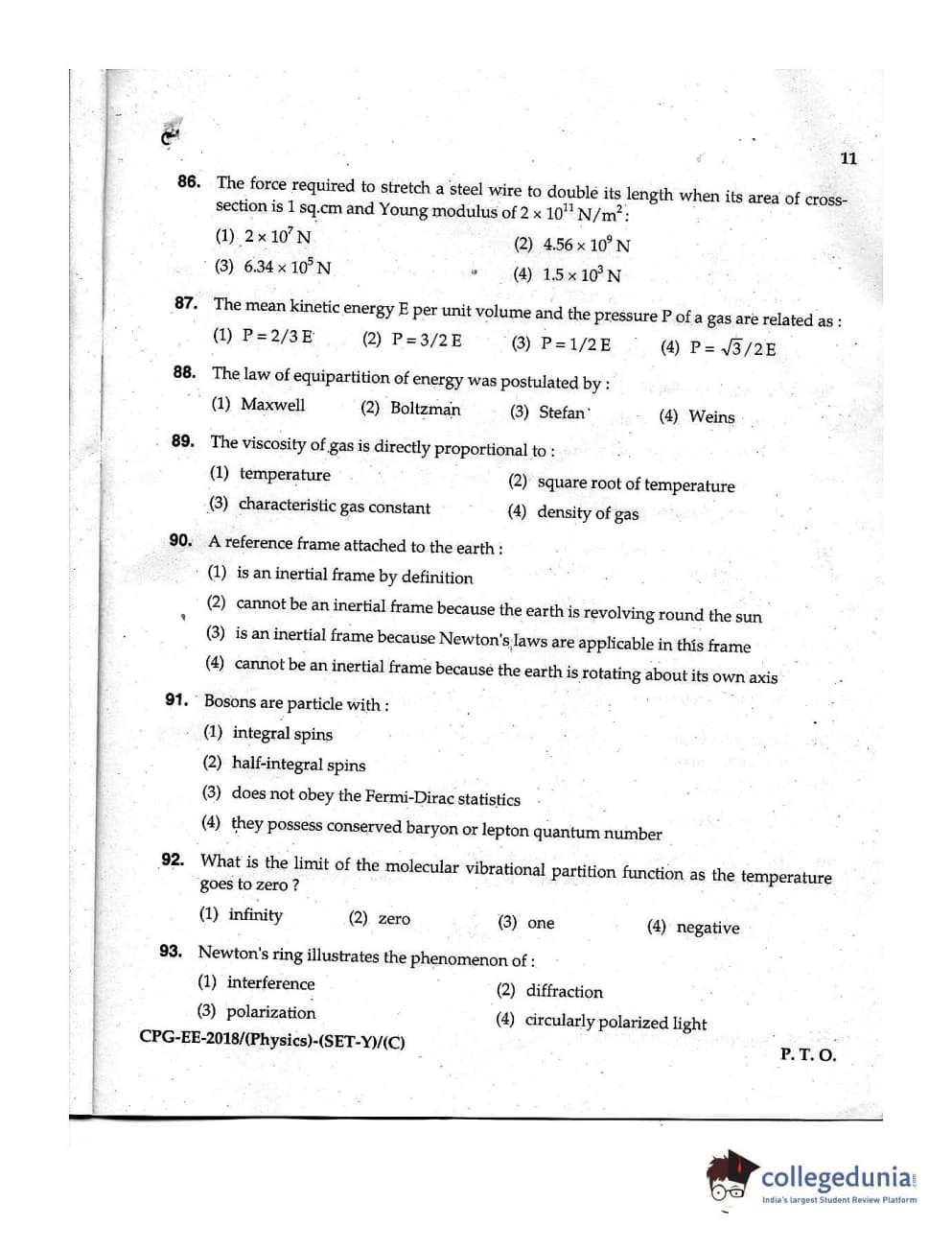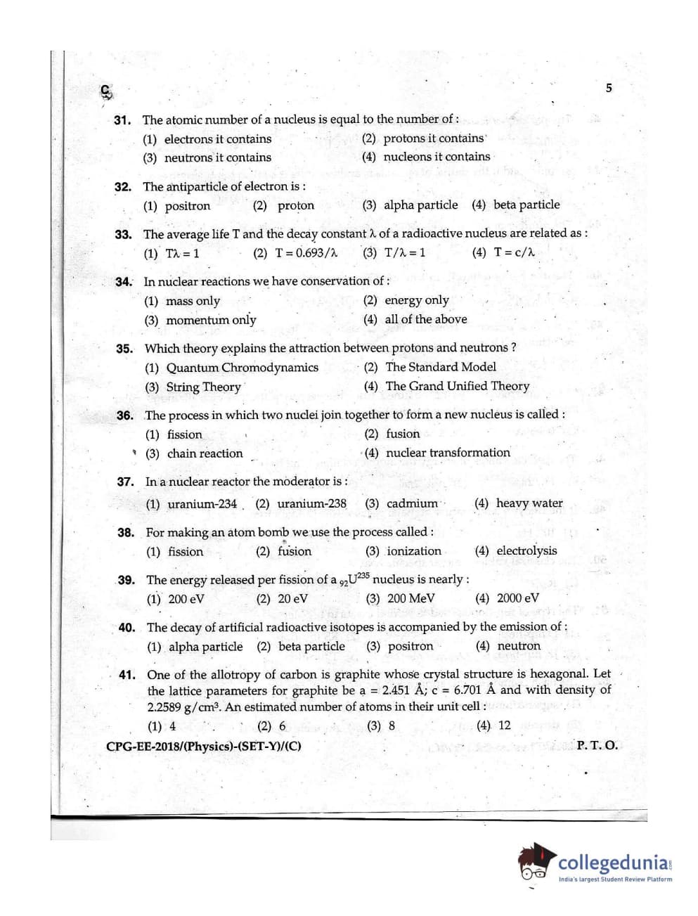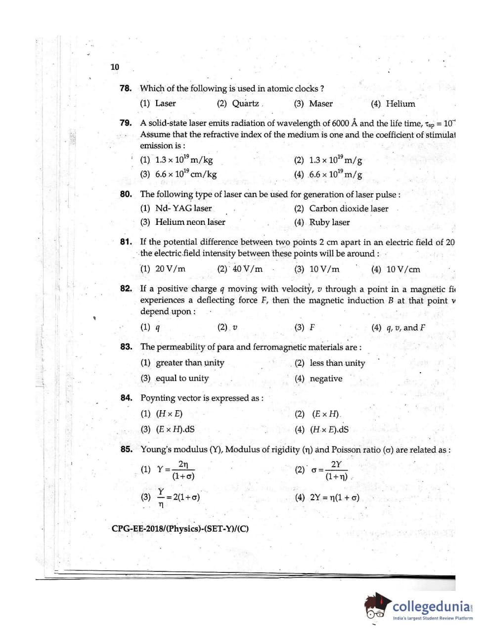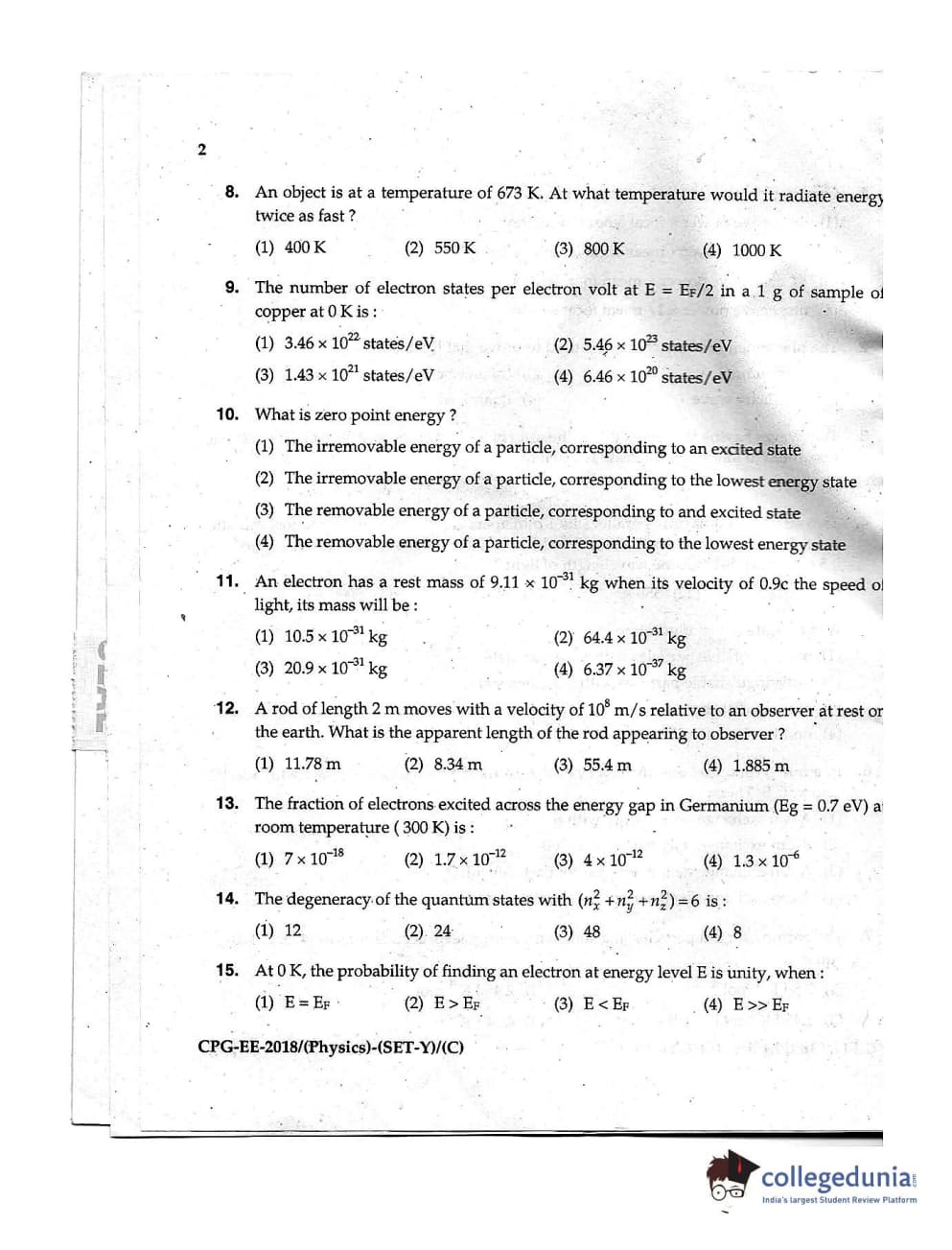 MDUCEE 2018 Physics Set C Question Paper with Answer Key PDFs