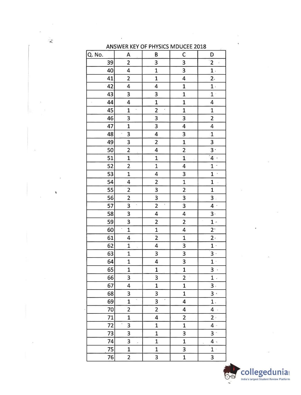 | MDUCEE 2018 Physics Set D Question Paper PDF | MDUCEE 2018 Physics Set D Answer Key PDF |