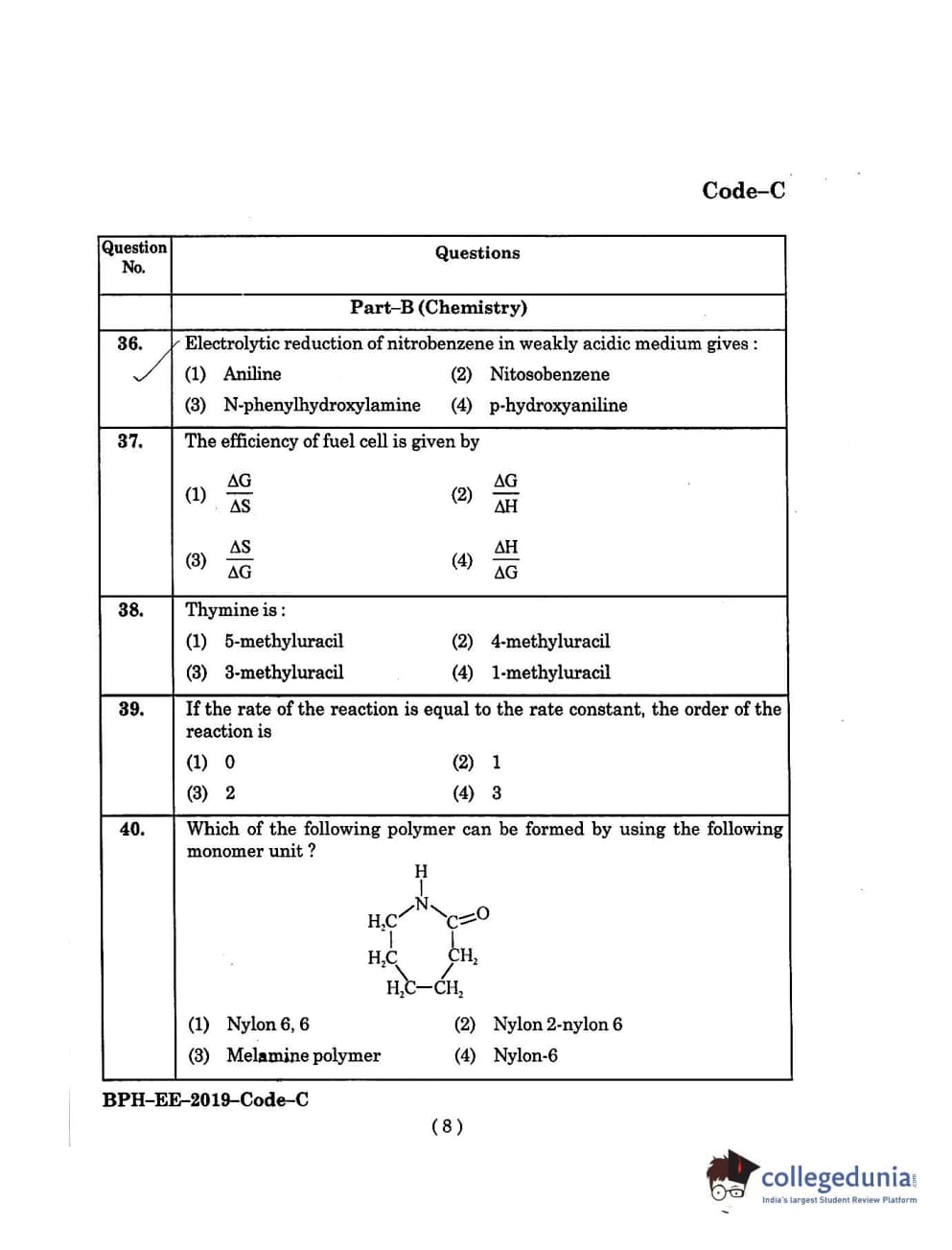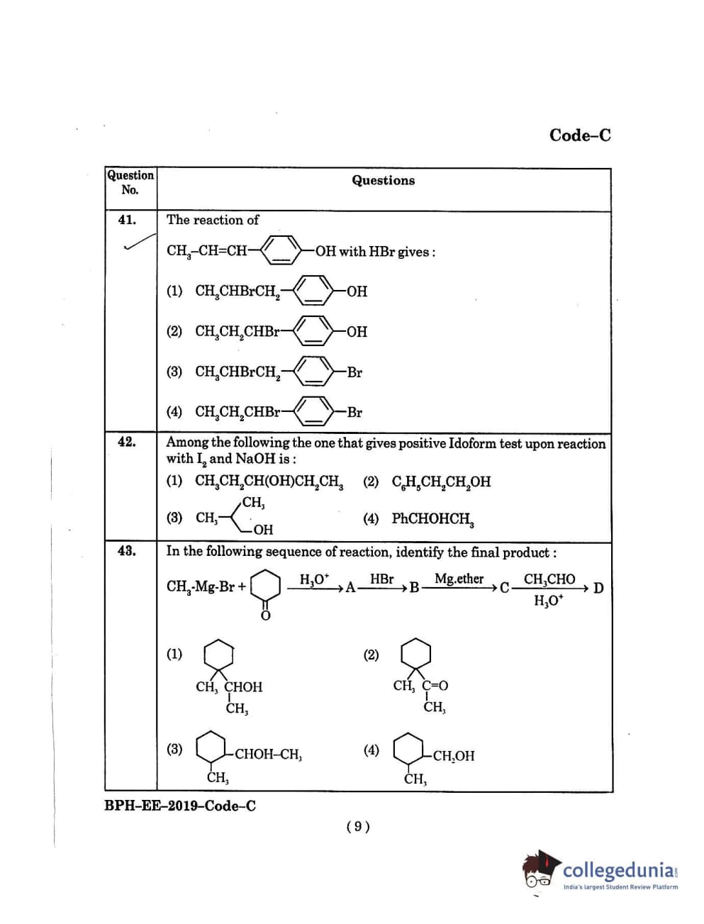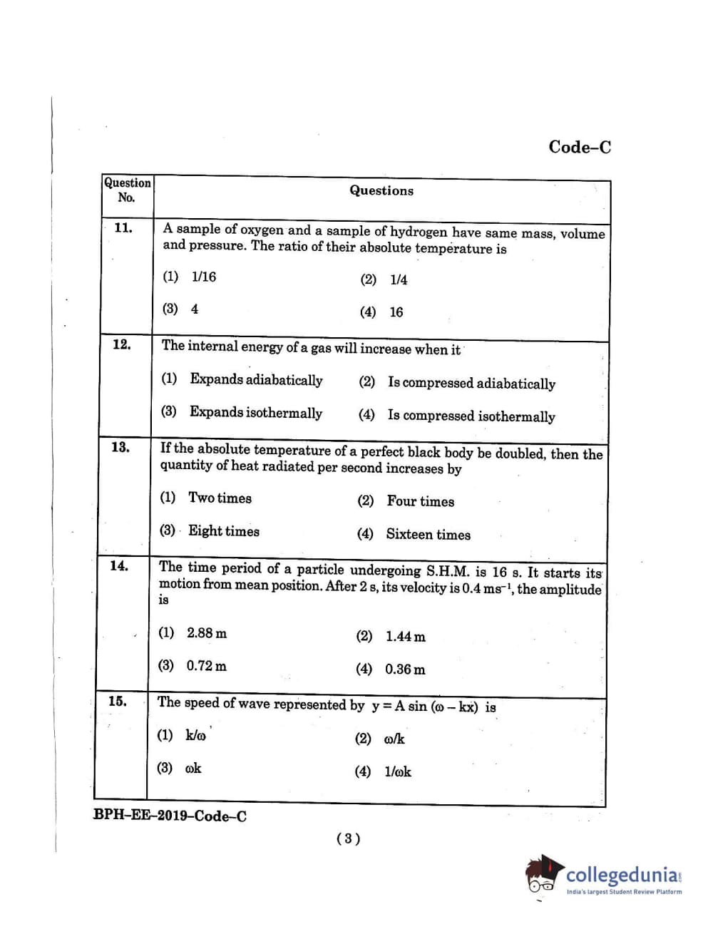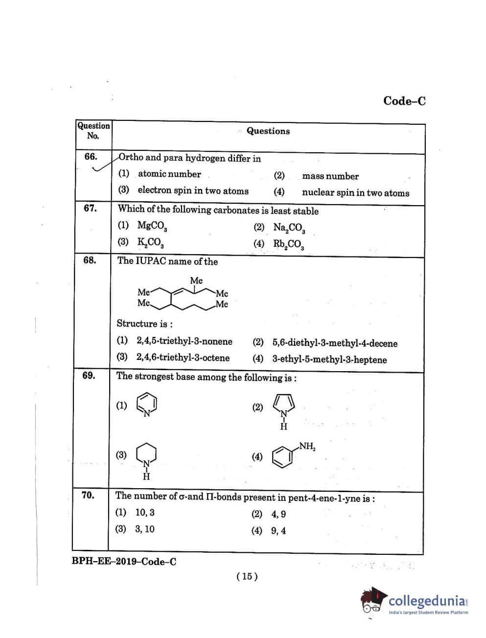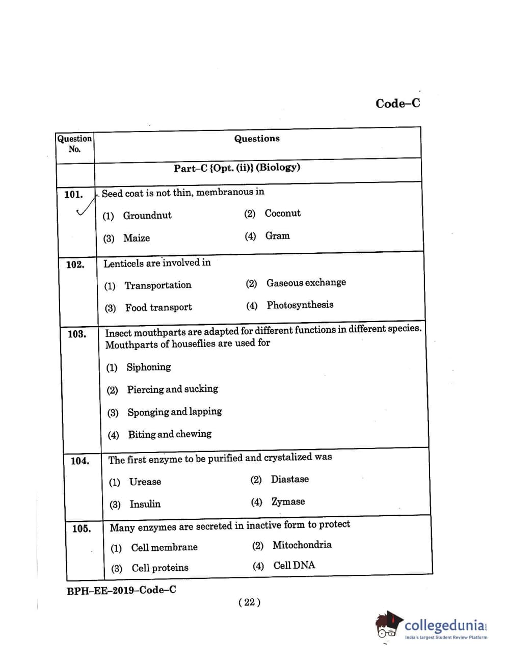 MDUCEE 2019 B.Pharma Set C Question Paper with Answer Key PDFs