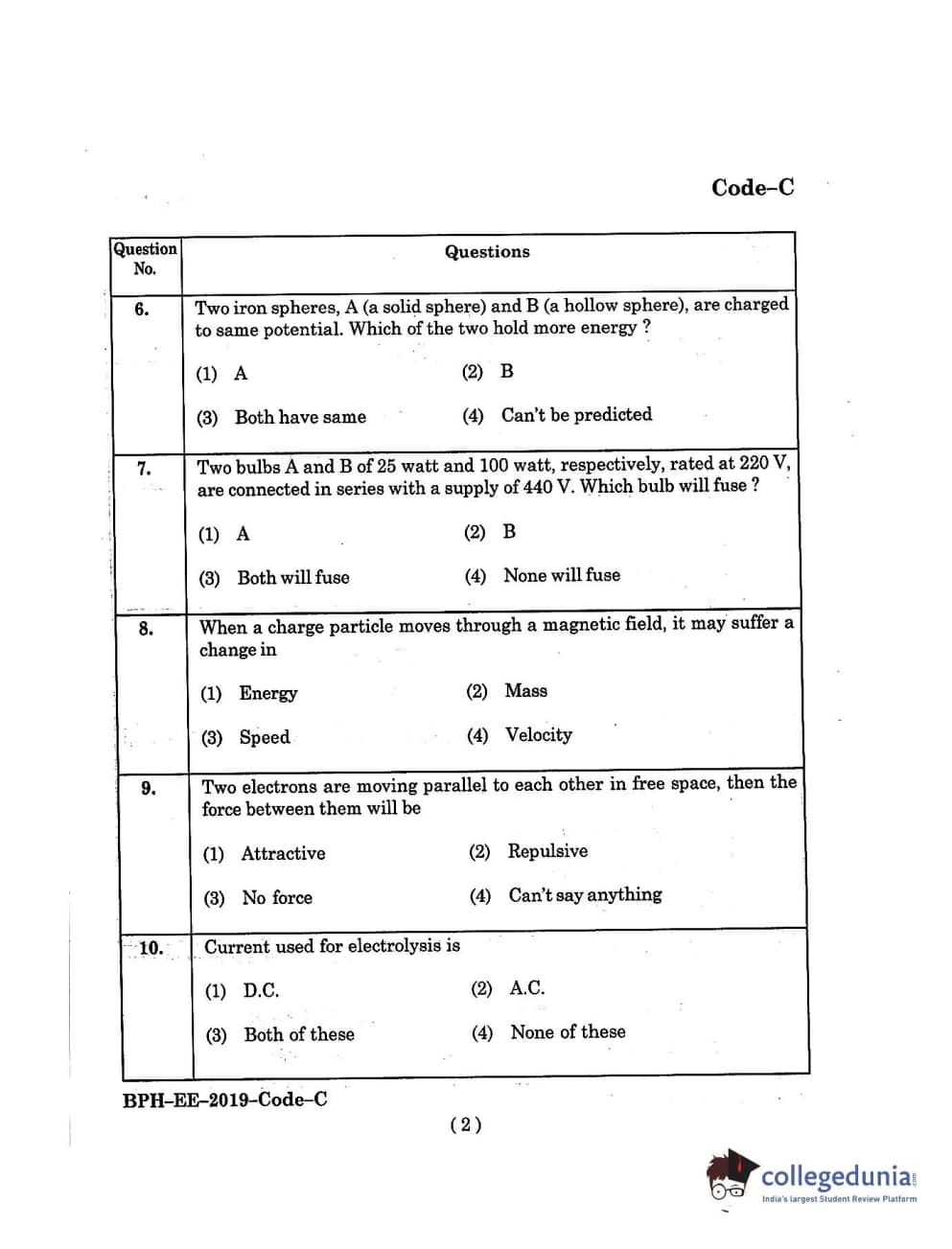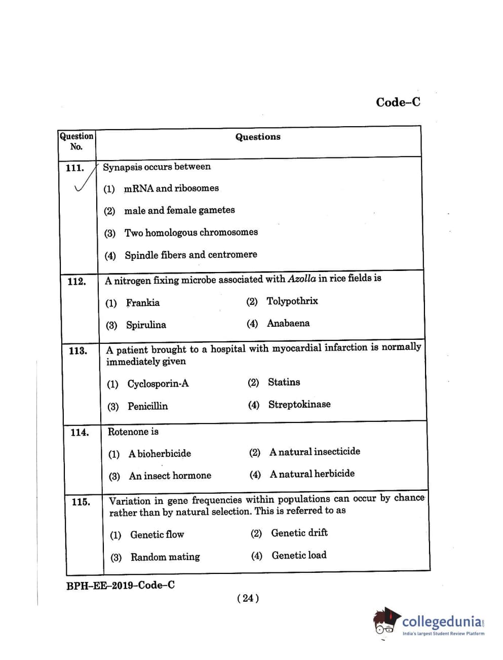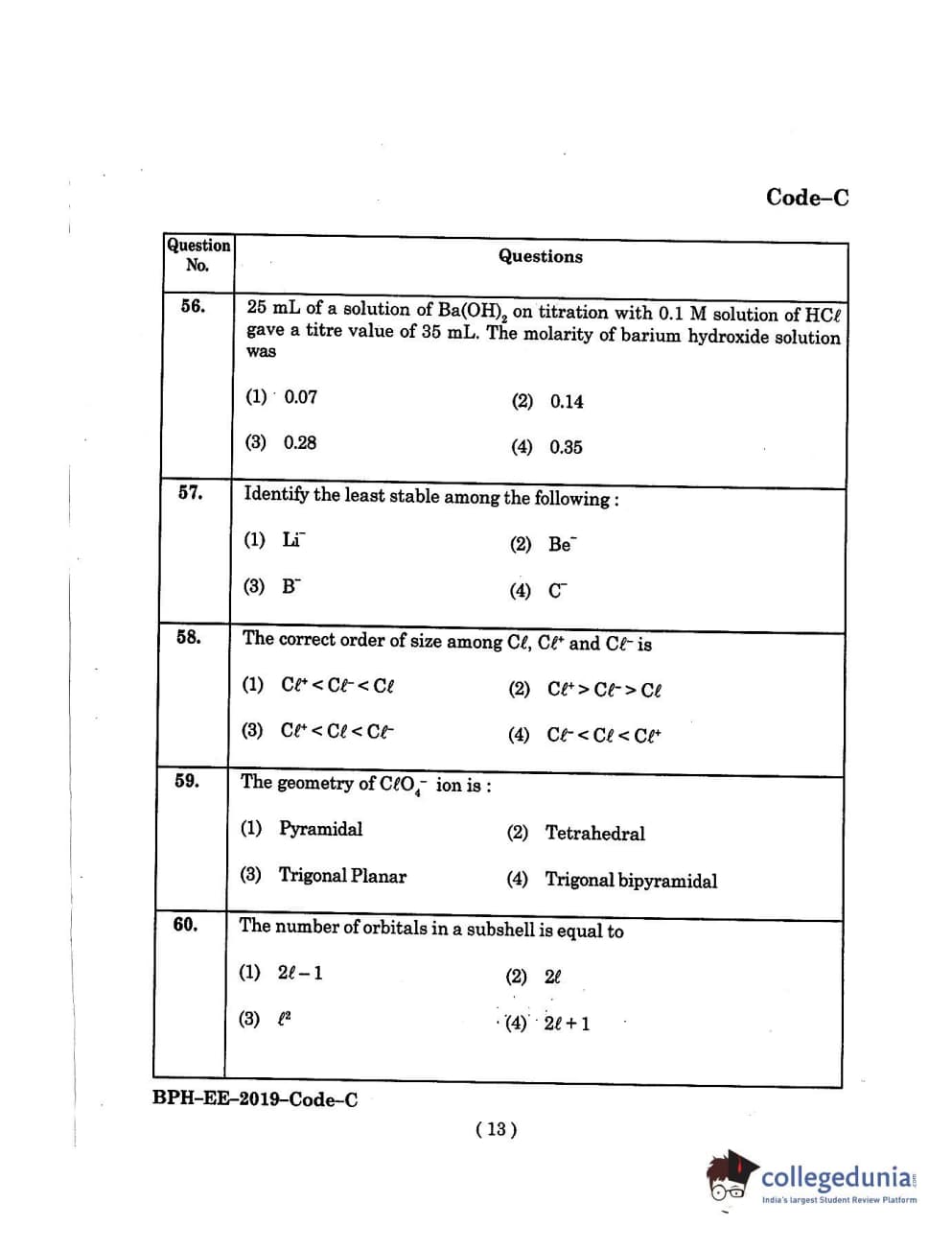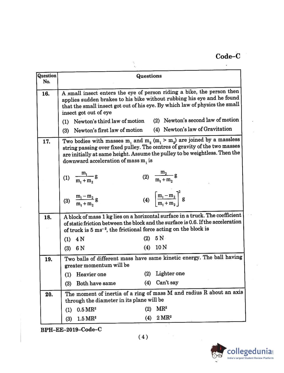 MDUCEE 2019 B.Pharma Set C Question Paper with Answer Key PDFs