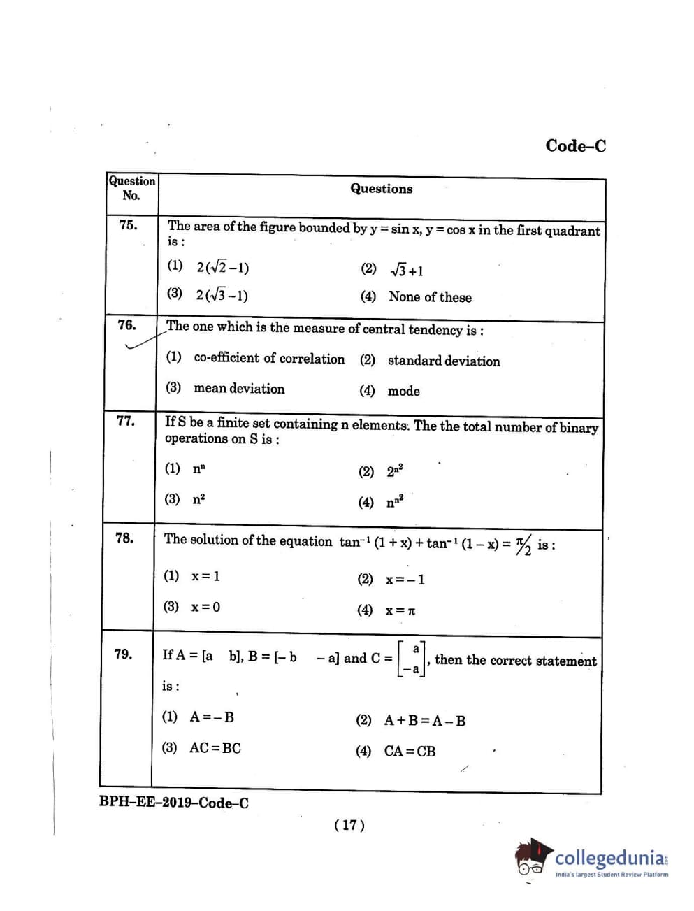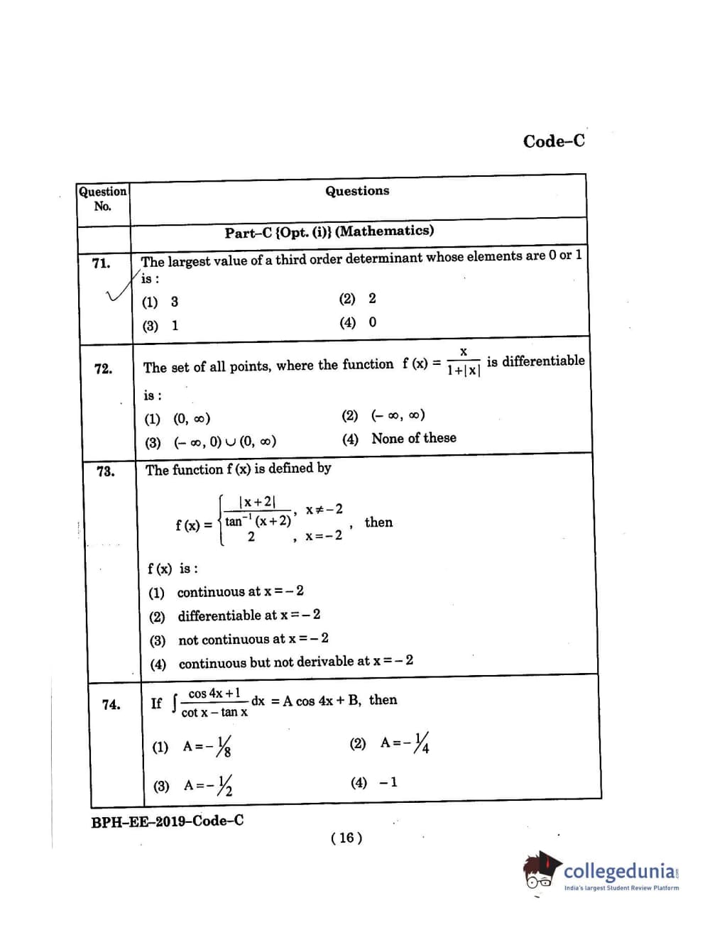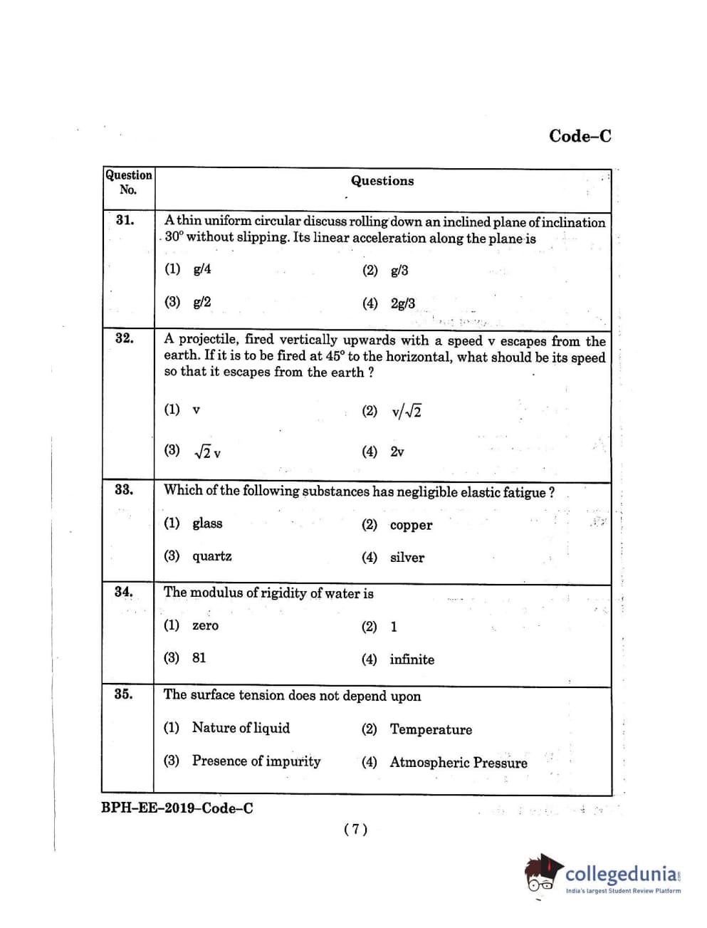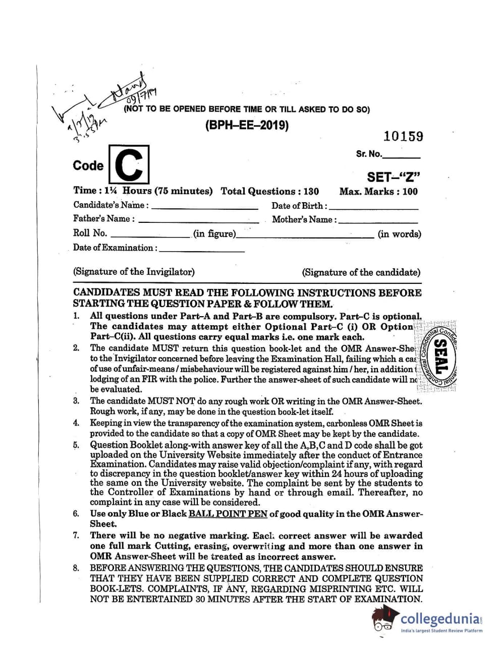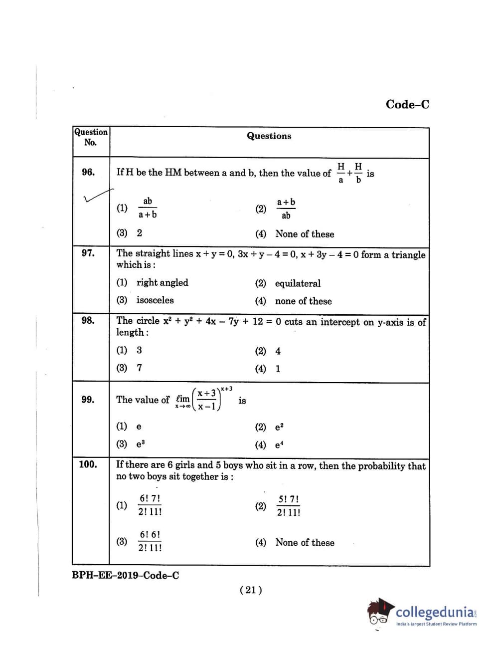 MDUCEE 2019 B.Pharma Set C Question Paper with Answer Key PDFs