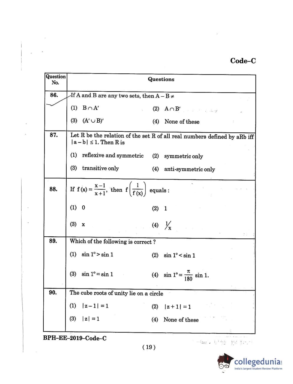 | MDUCEE 2019 B.Pharma Set C Question Paper PDF | MDUCEE 2019 B.Pharma Set C Answer Key PDF |