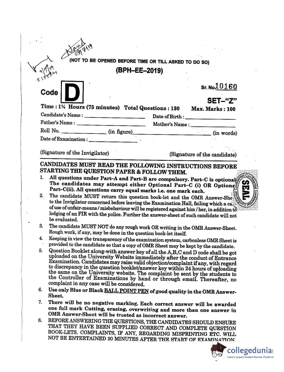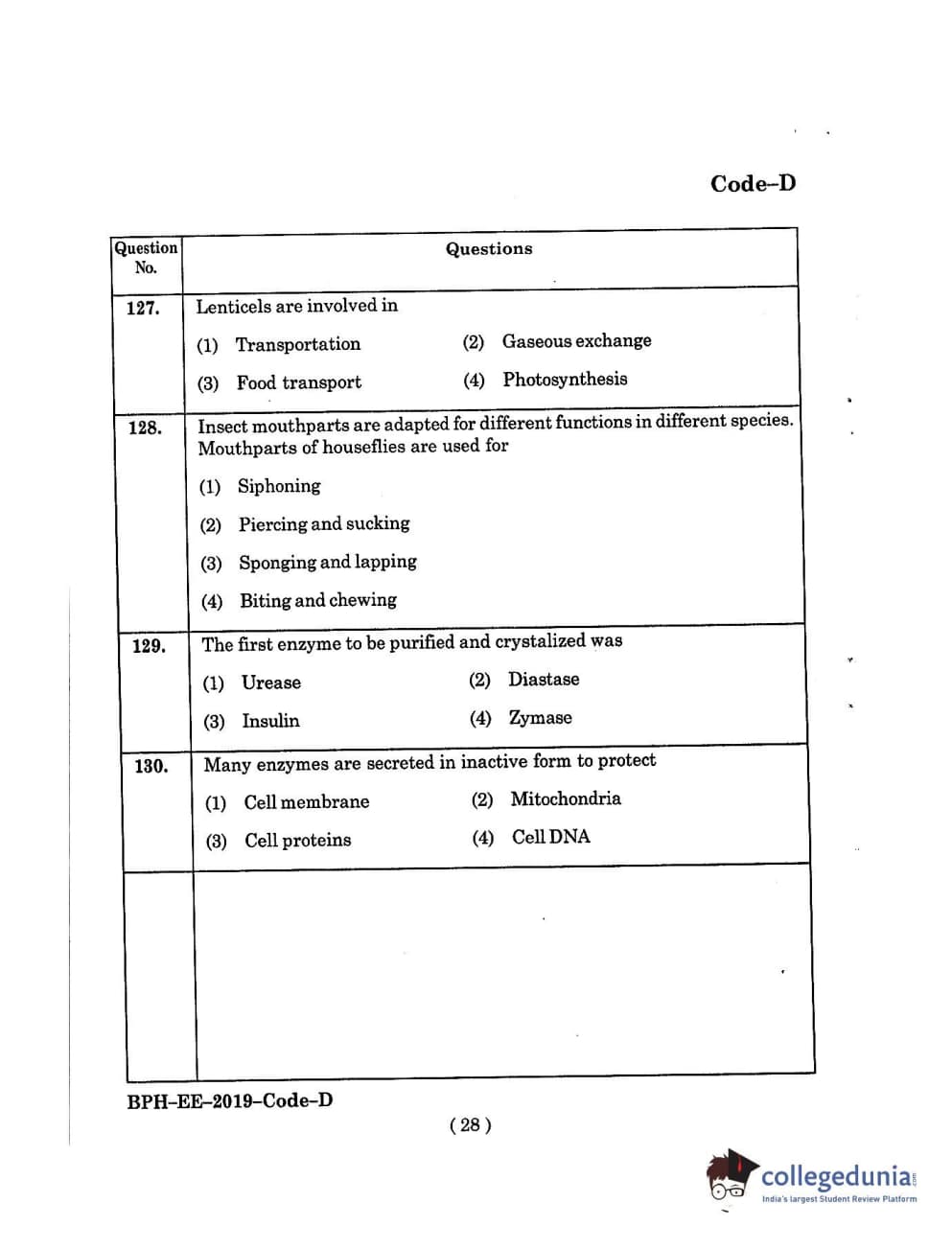 | MDUCEE 2019 B.Pharma Set D Question Paper PDF | MDUCEE 2019 B.Pharma Set D Answer Key PDF |