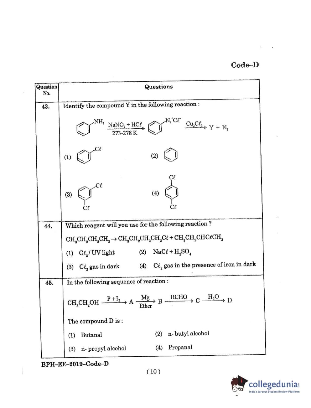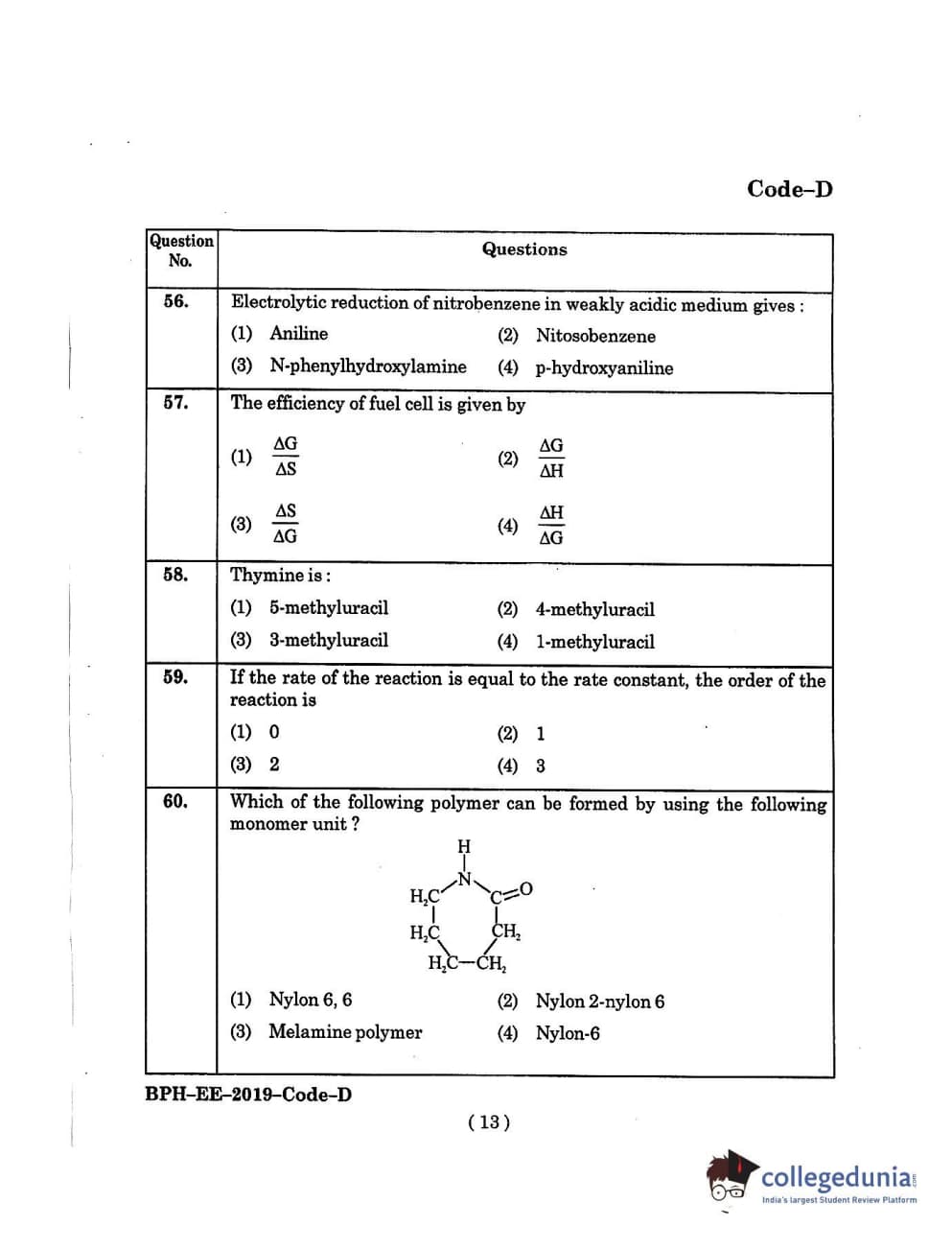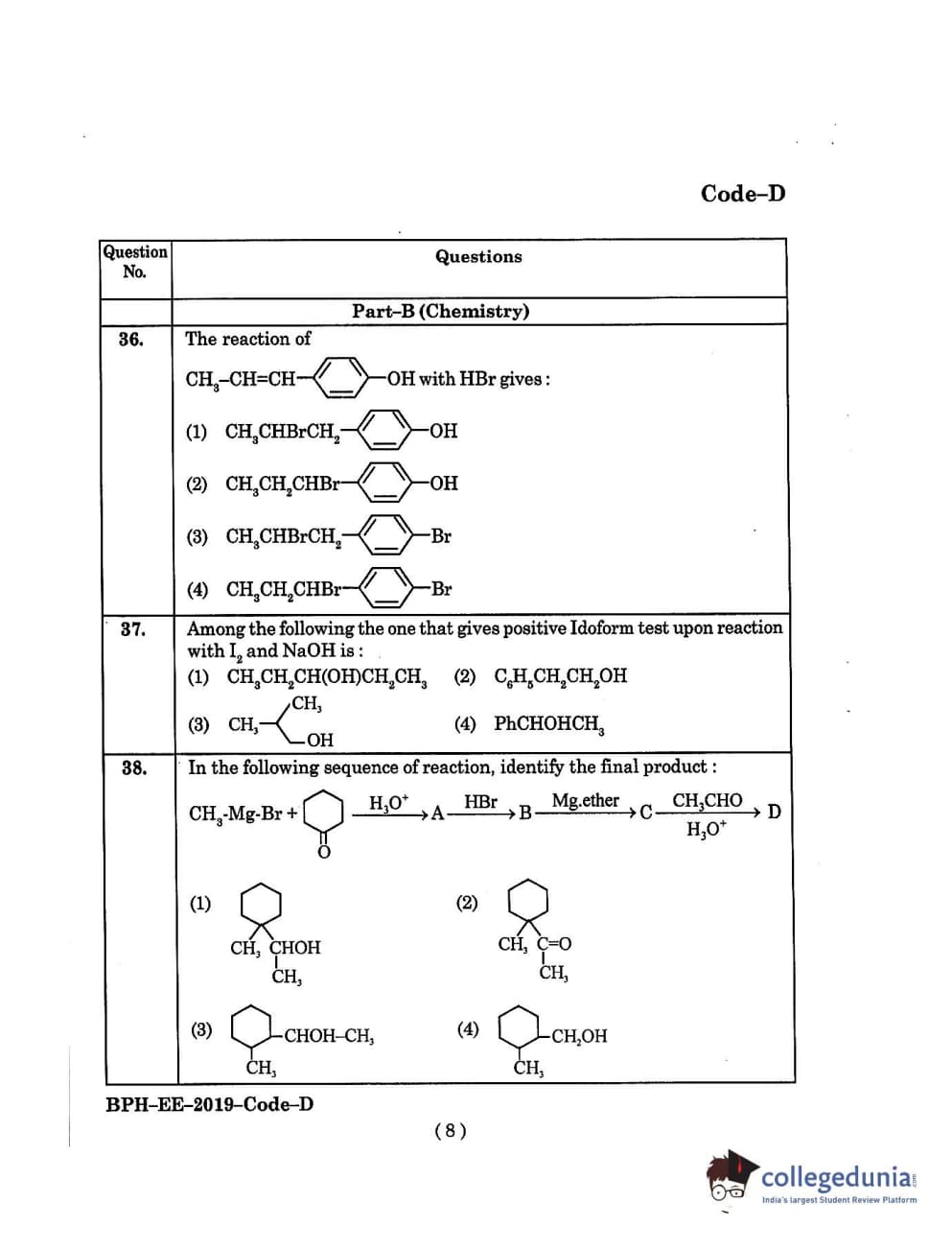 MDUCEE 2019 B.Pharma Set D Question Paper with Answer Key PDFs