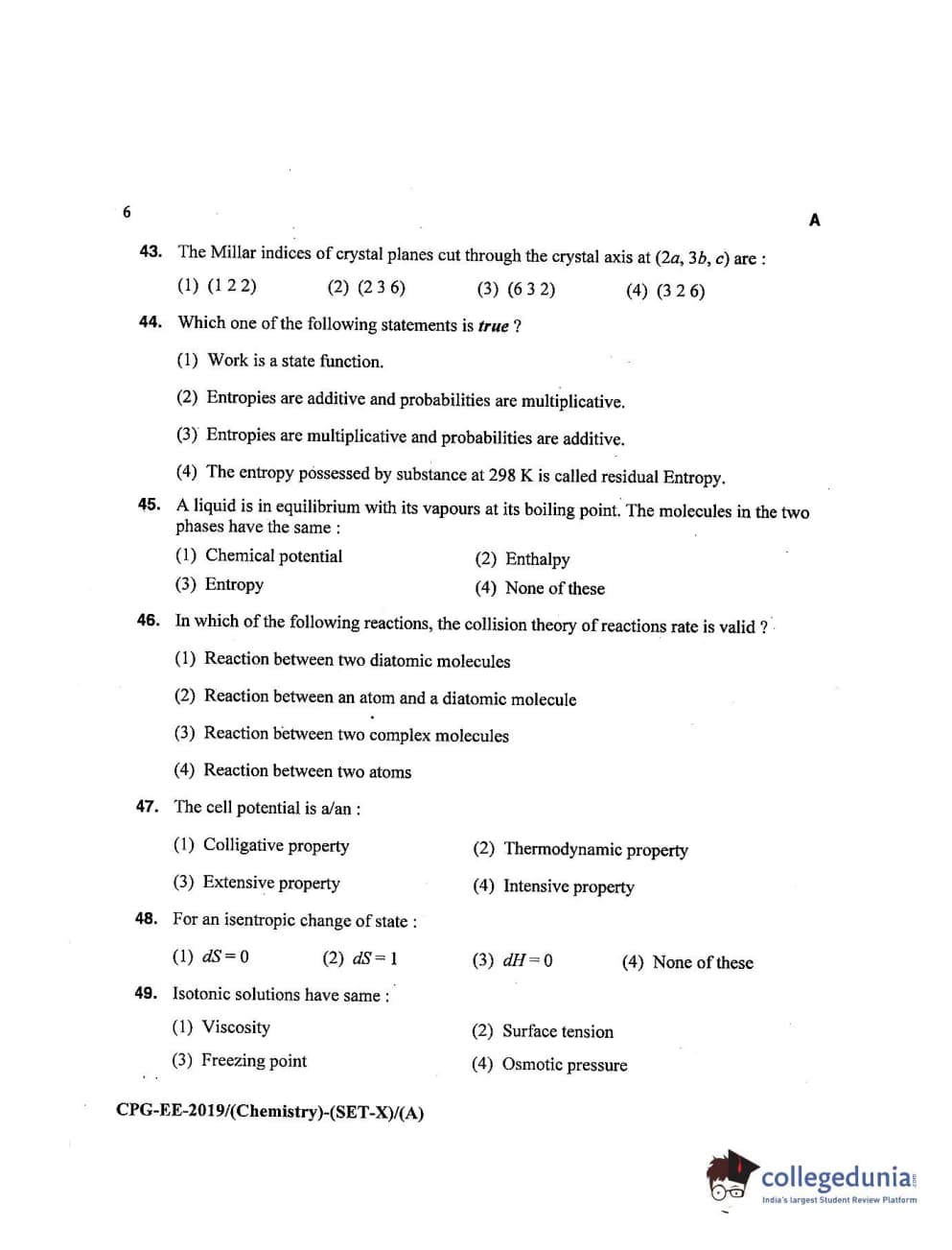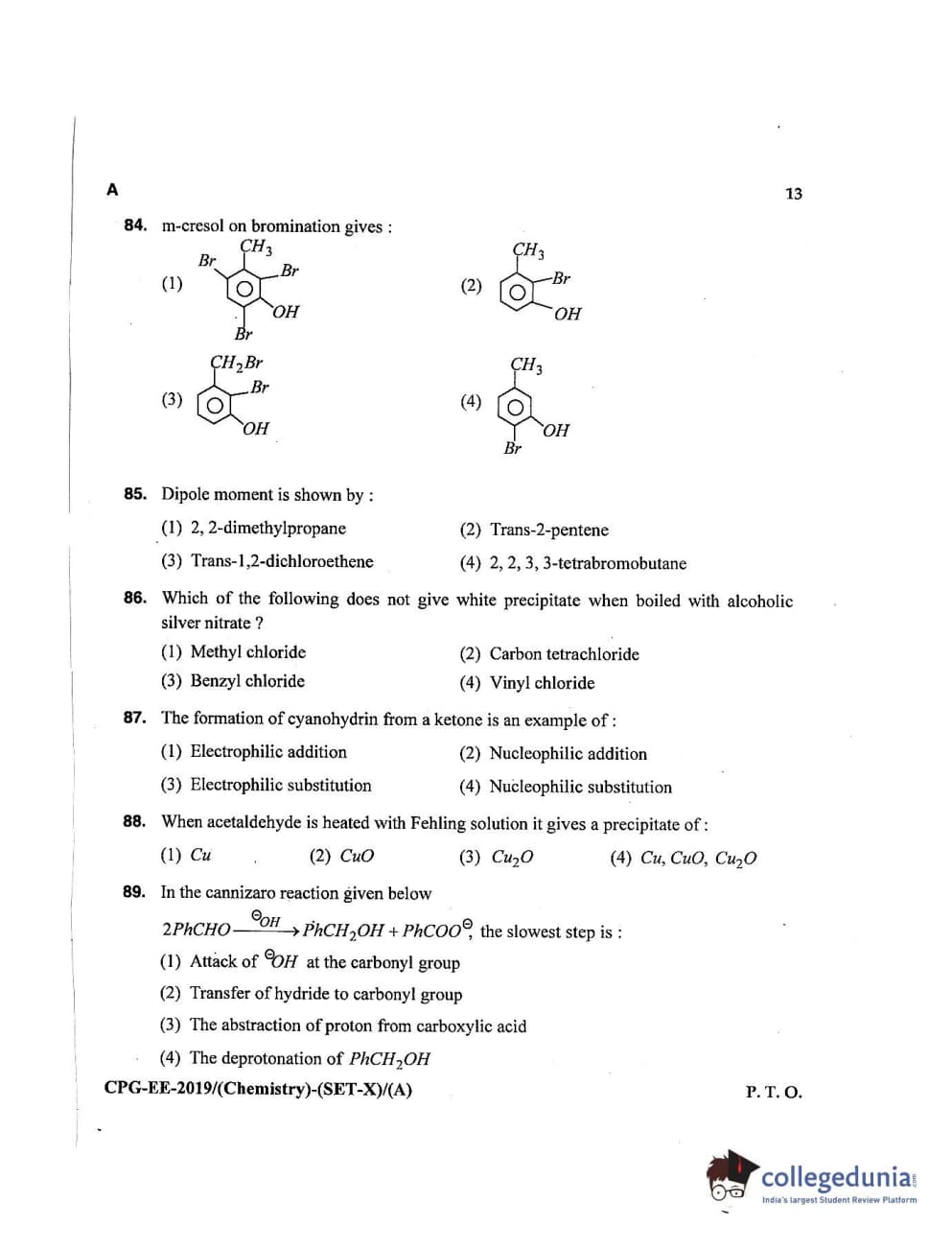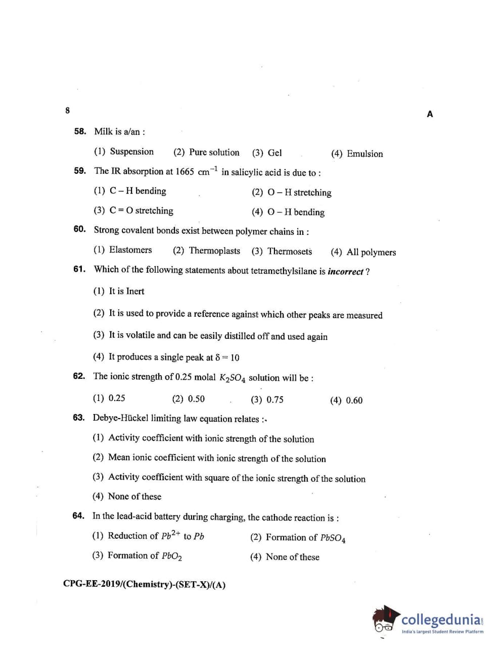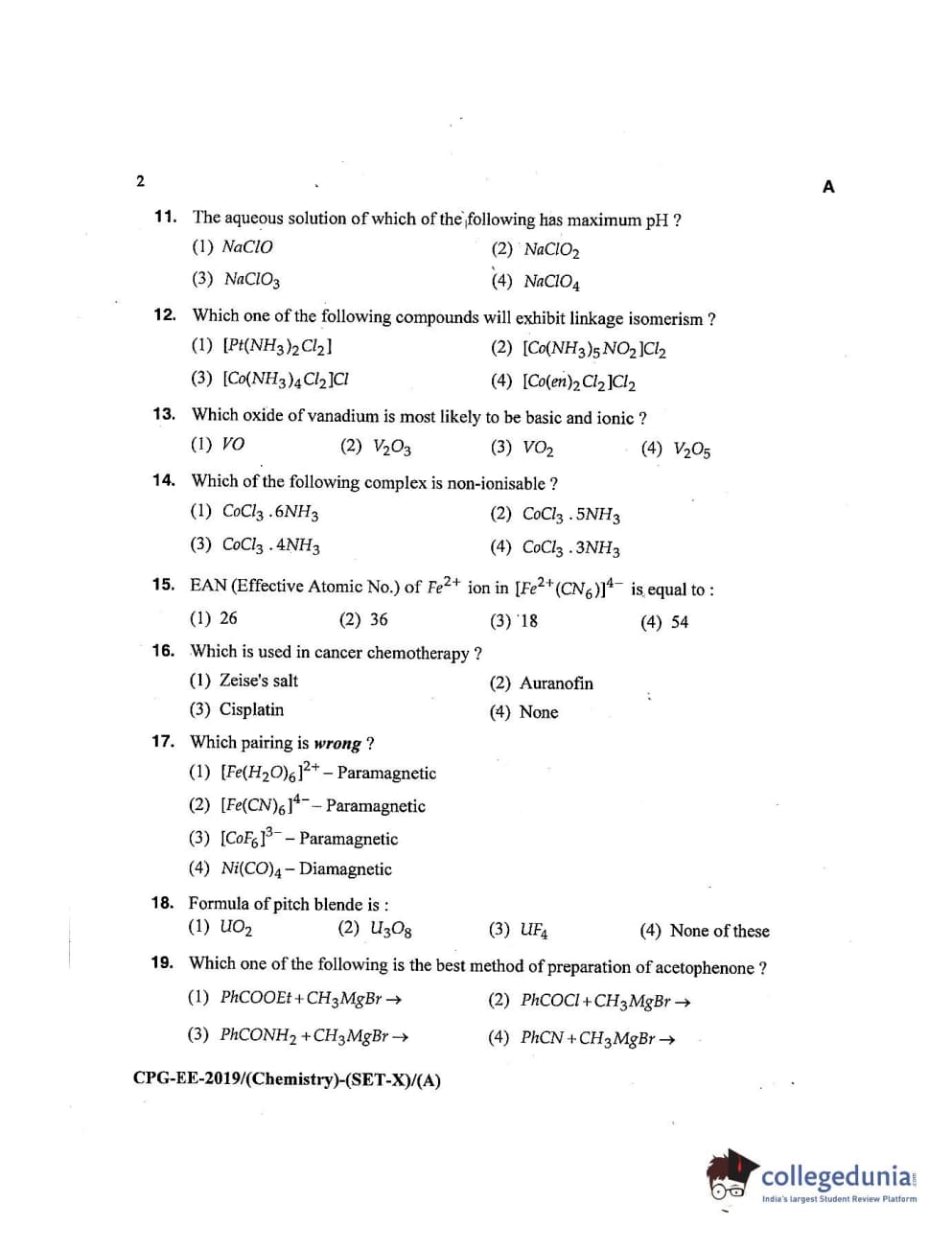 MDUCEE 2019 Chemistry Set A Question Paper with Answer Key PDFs