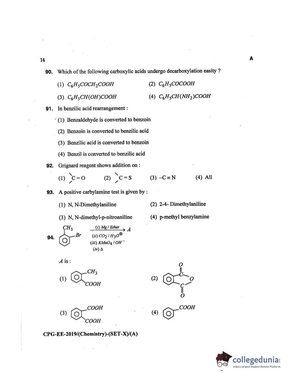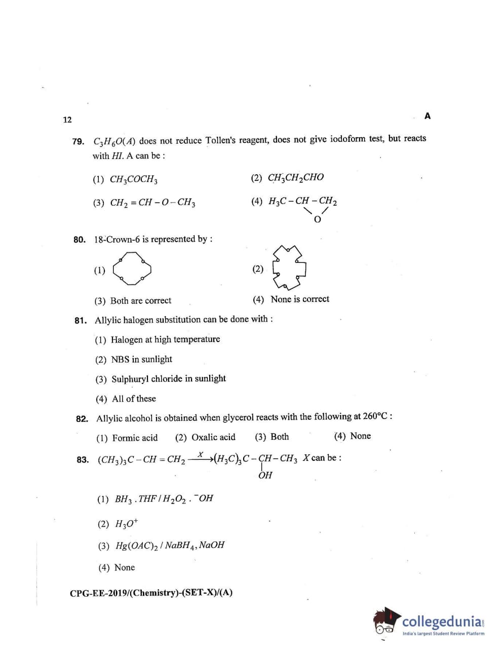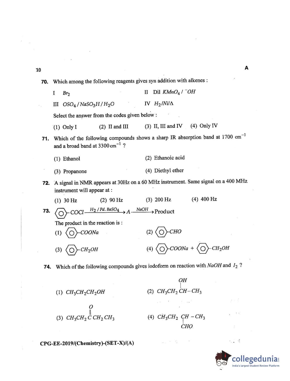 MDUCEE 2019 Chemistry Set A Question Paper with Answer Key PDFs