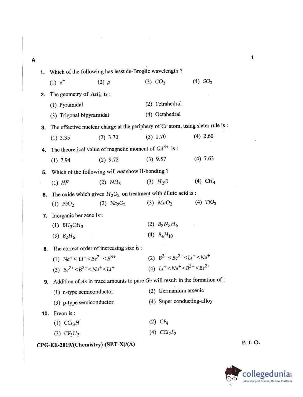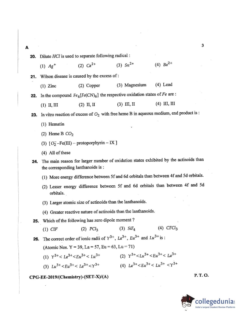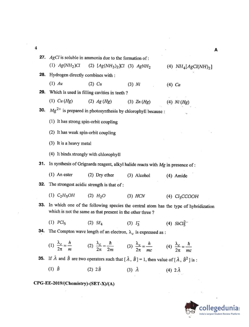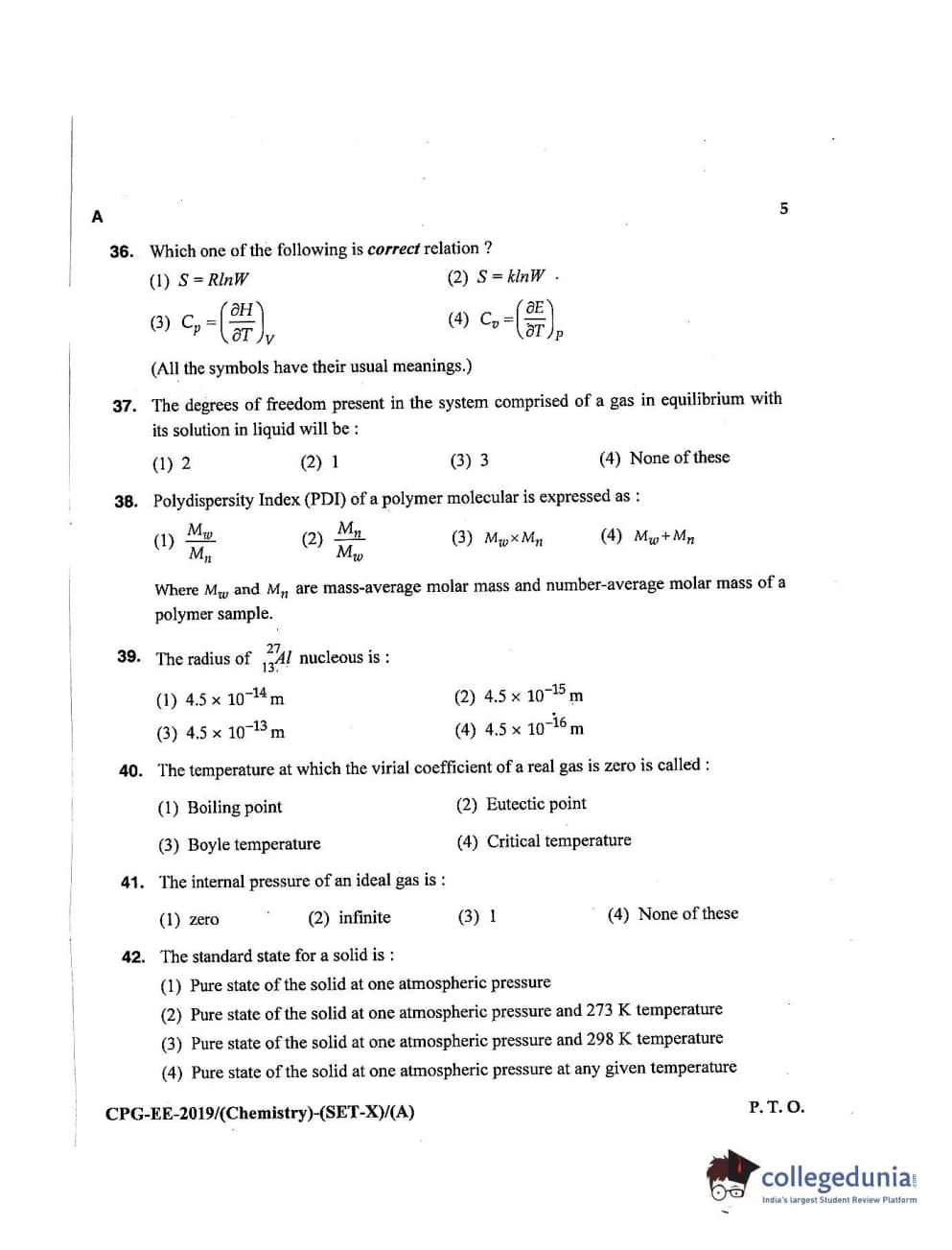 MDUCEE 2019 Chemistry Set A Question Paper with Answer Key PDFs