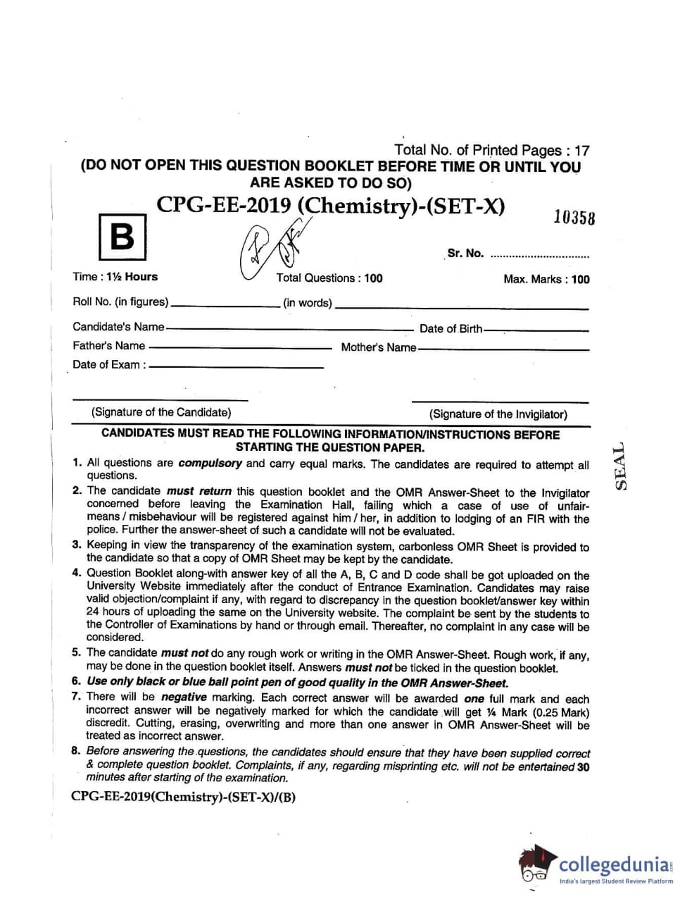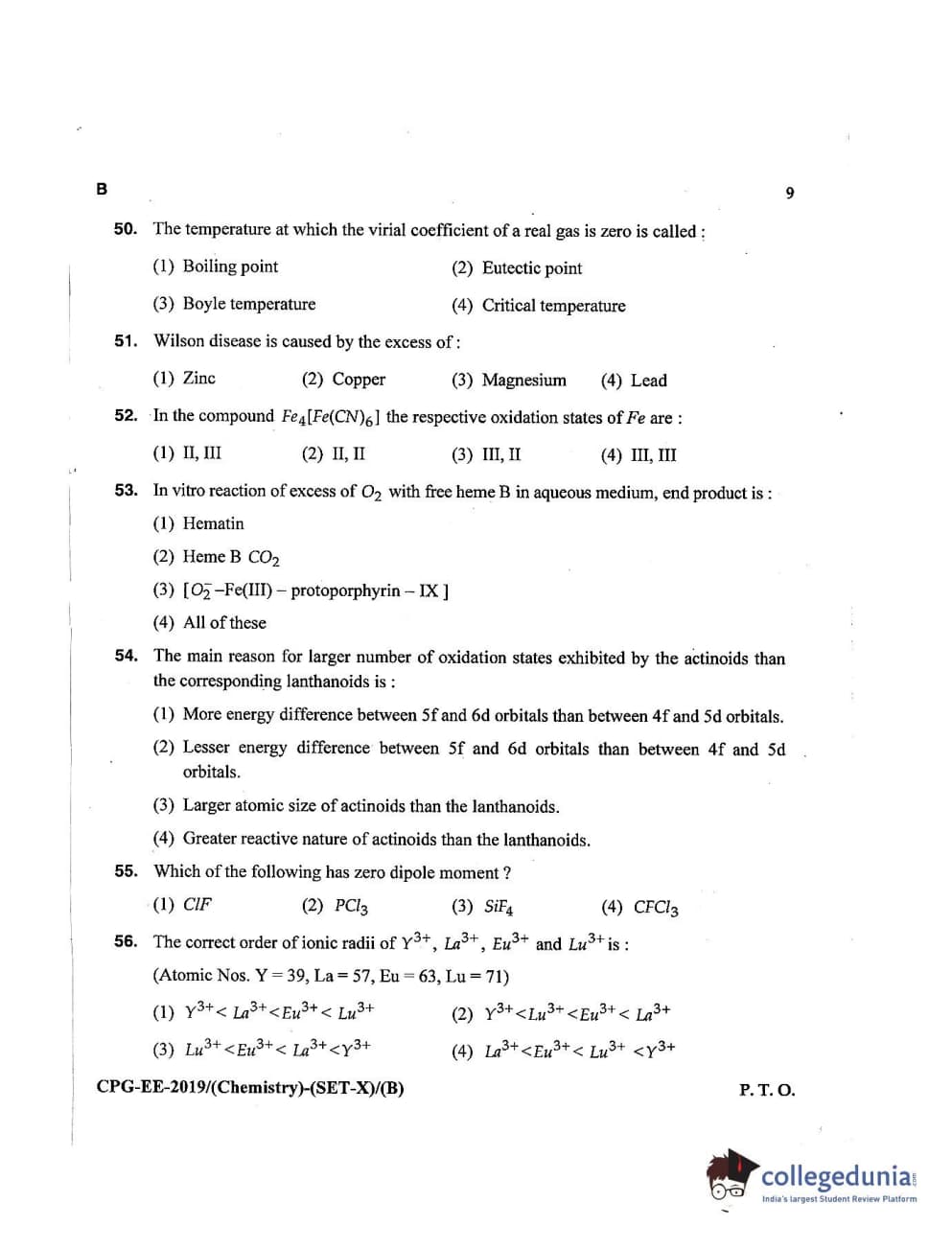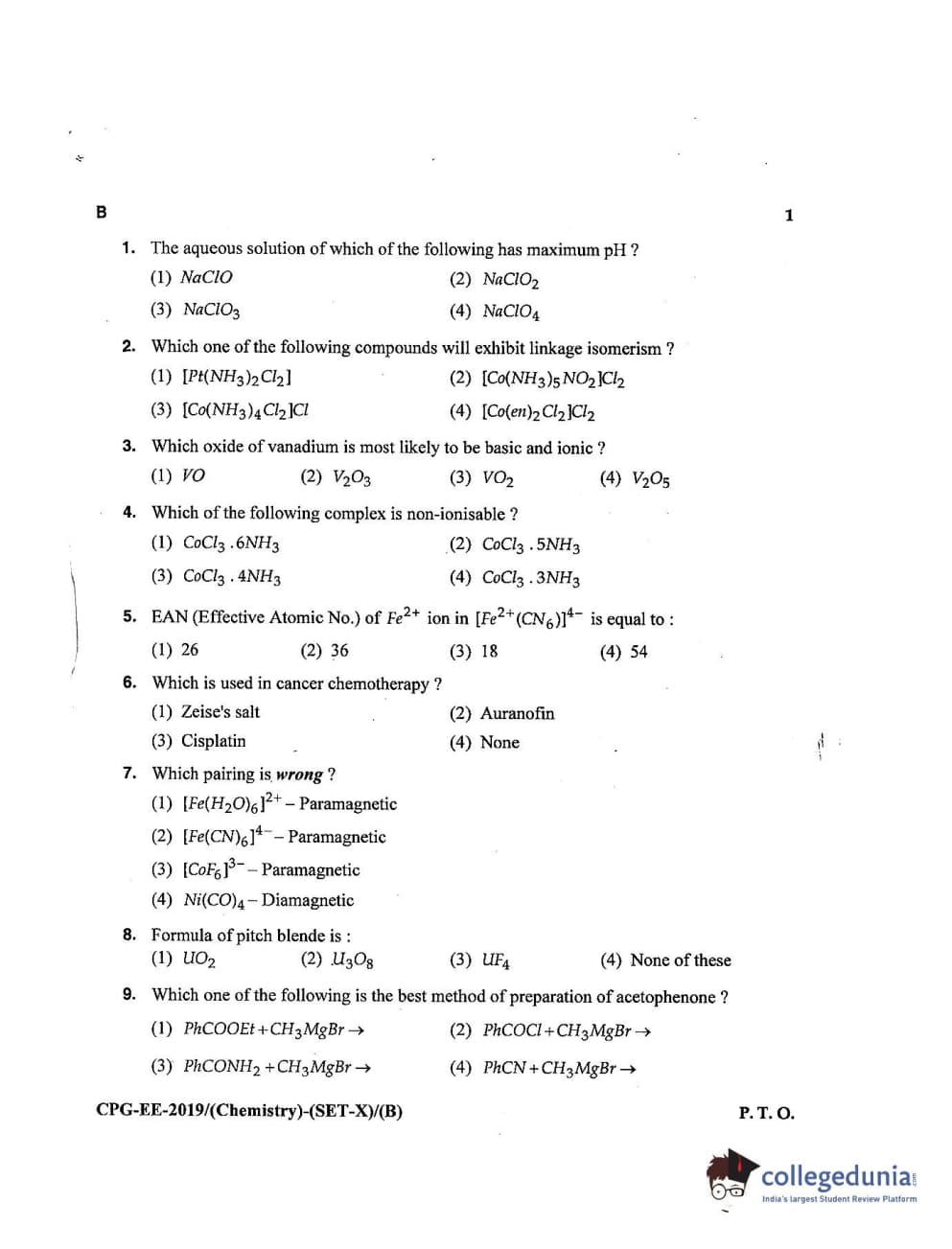 MDUCEE 2019 Chemistry Set B Question paper with answer key pdf is available for download. The exam was successfully organized by Maharishi Dayanand University. The question paper comprised a total of 100 questions.