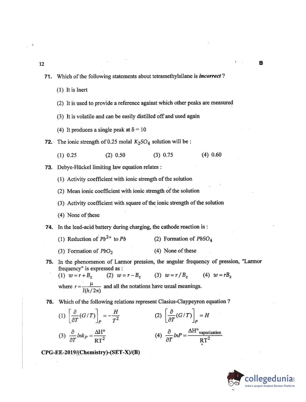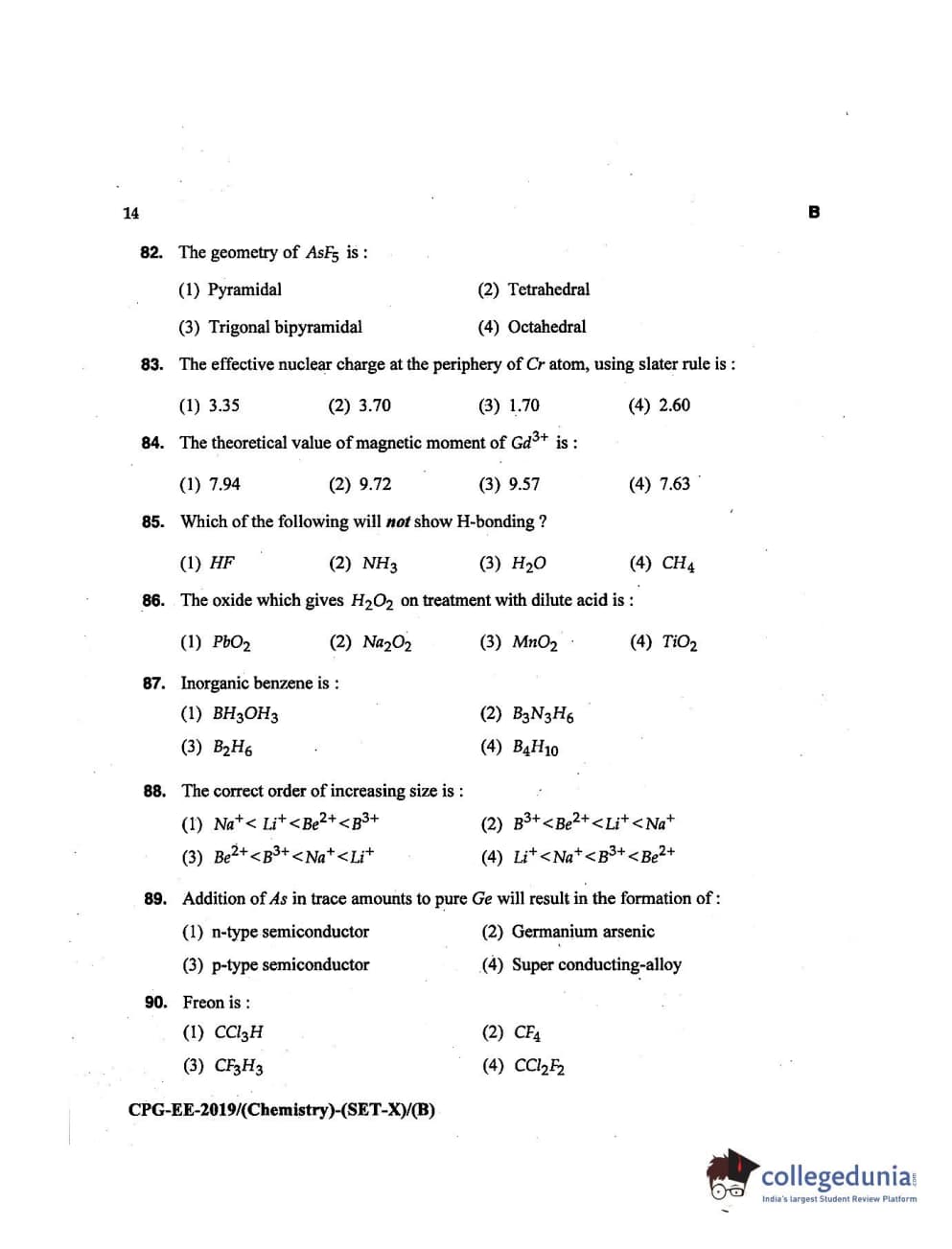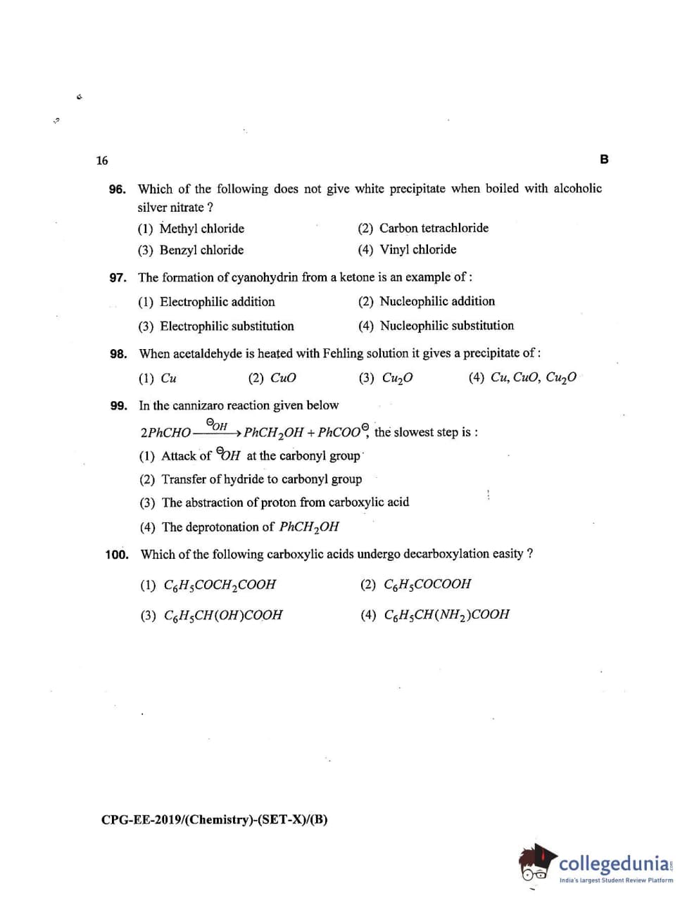 MDUCEE 2019 Chemistry Set B Question Paper with Answer Key PDFs