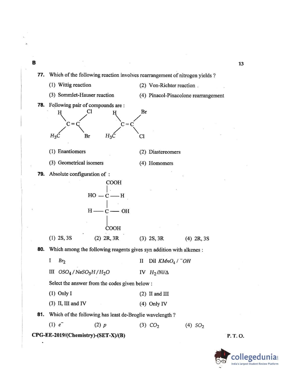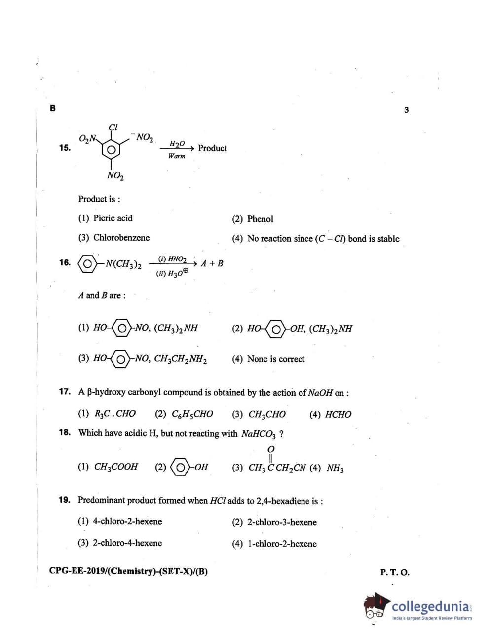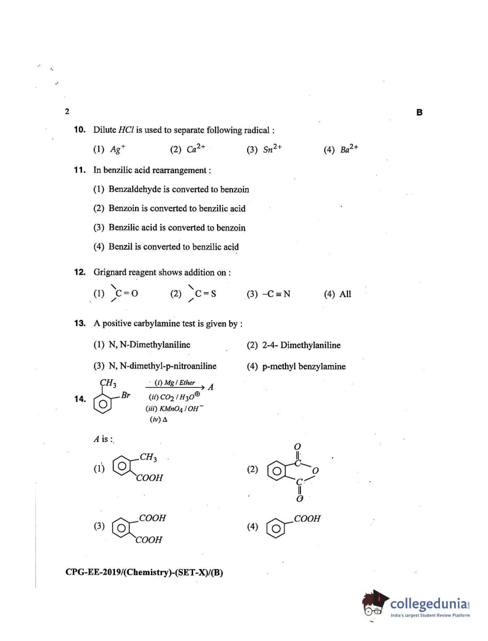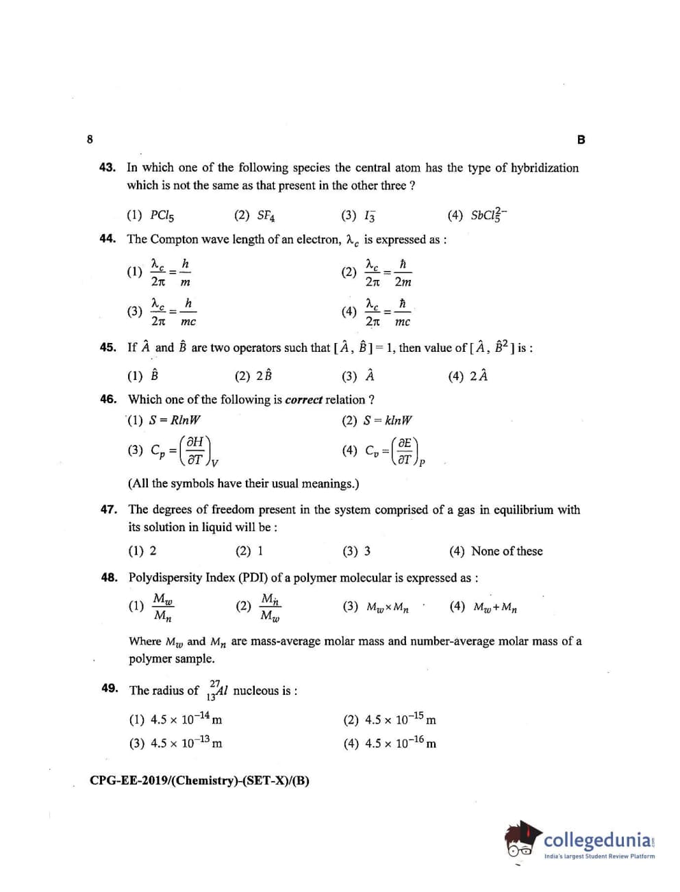 MDUCEE 2019 Chemistry Set B Question Paper with Answer Key PDFs