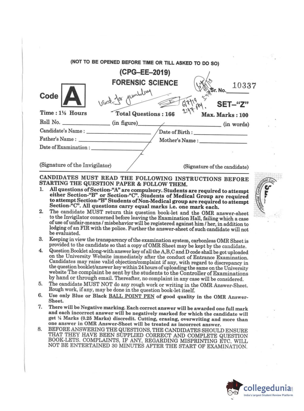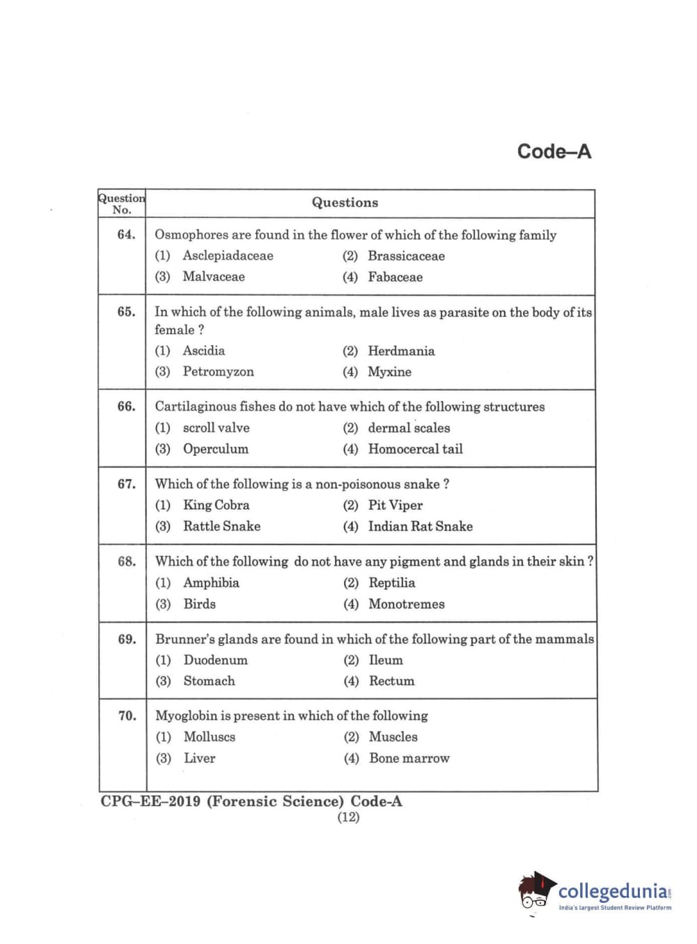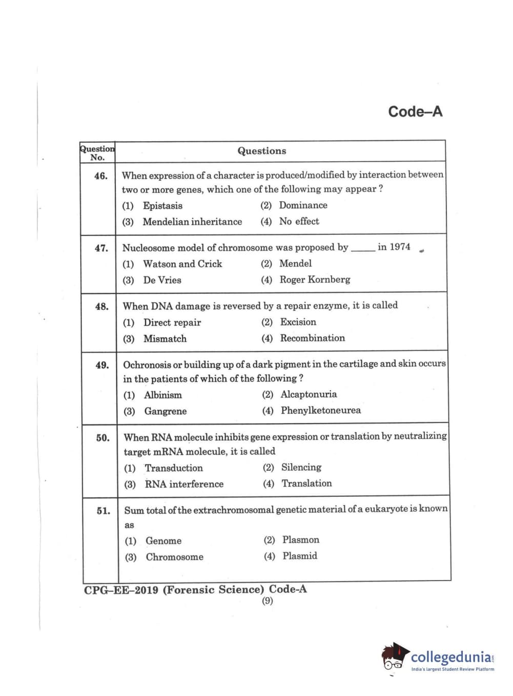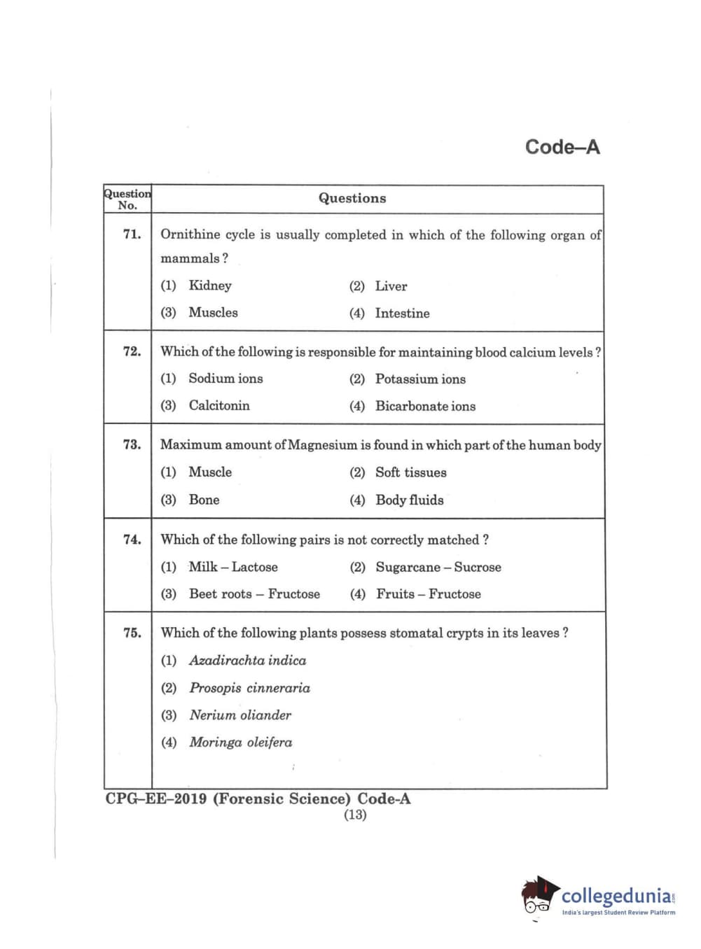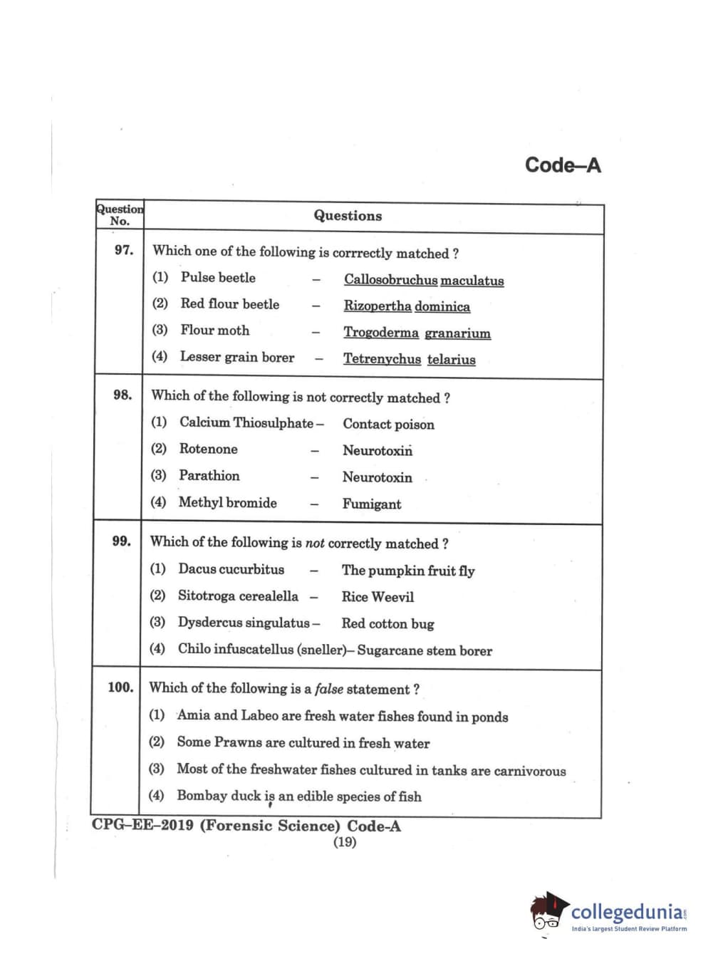 | MDUCEE 2019 Forensic Science Set A Question Paper PDF | MDUCEE 2019 Forensic Science Set A Answer Key PDF |
