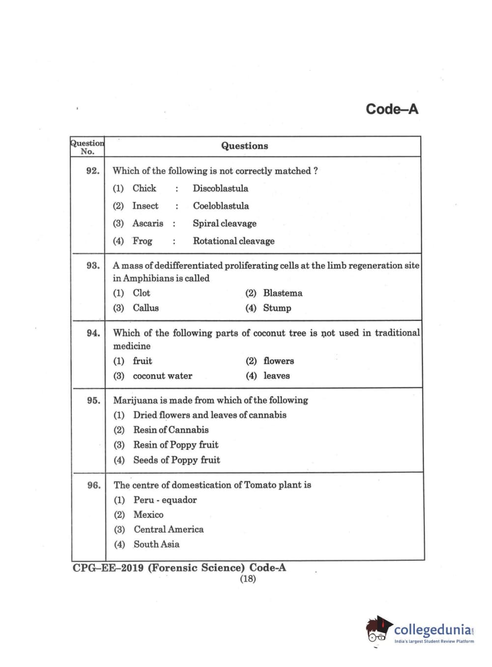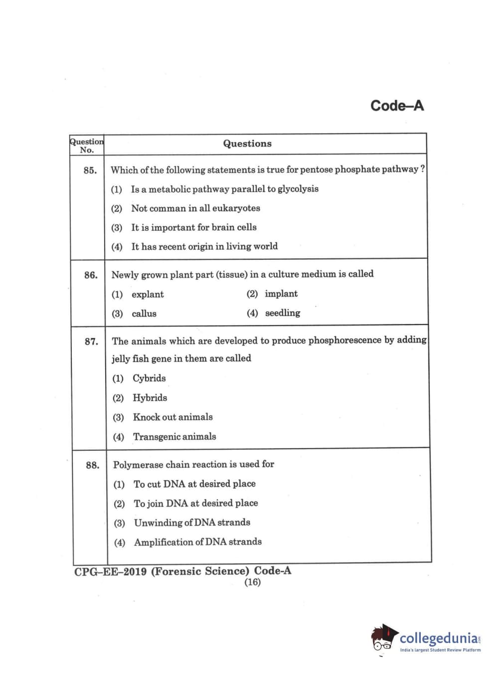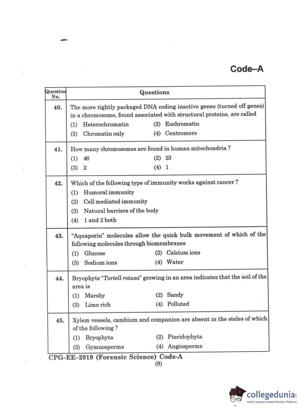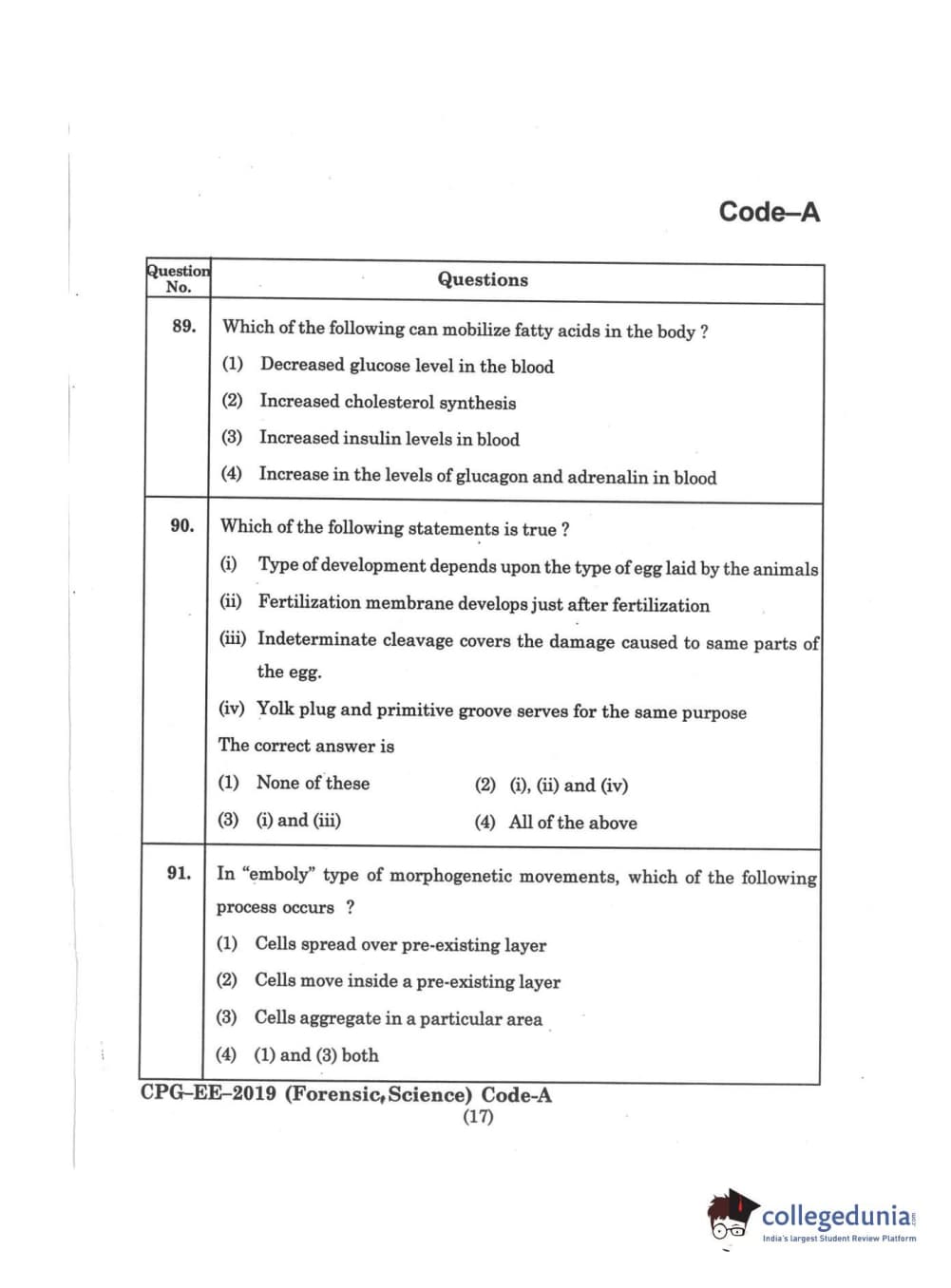 | MDUCEE 2019 Forensic Science Set A Question Paper PDF | MDUCEE 2019 Forensic Science Set A Answer Key PDF |
