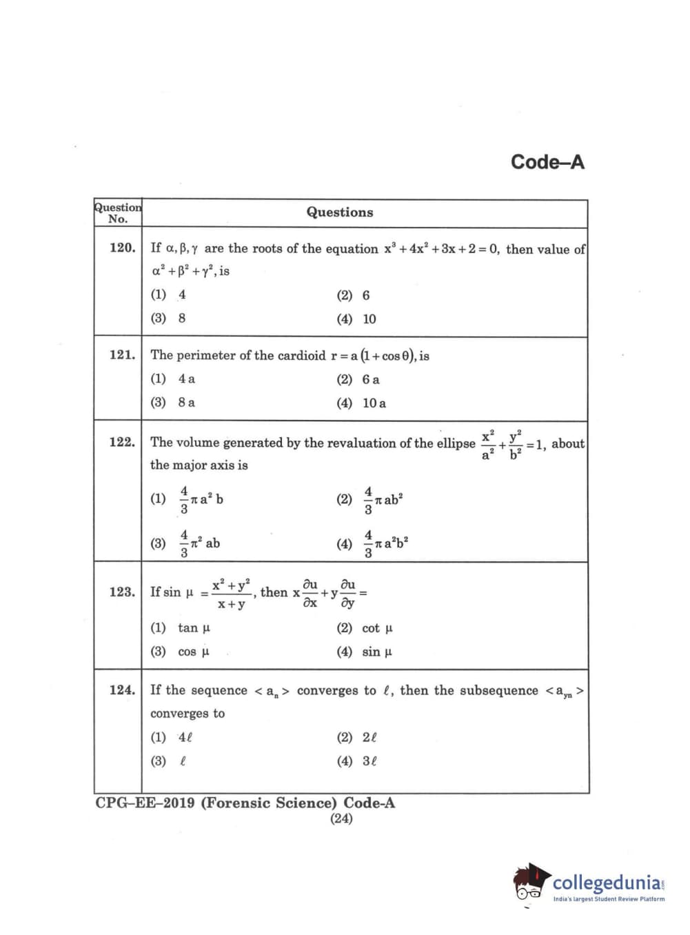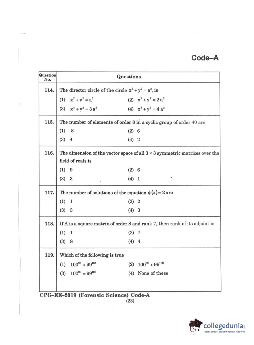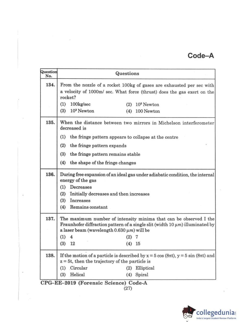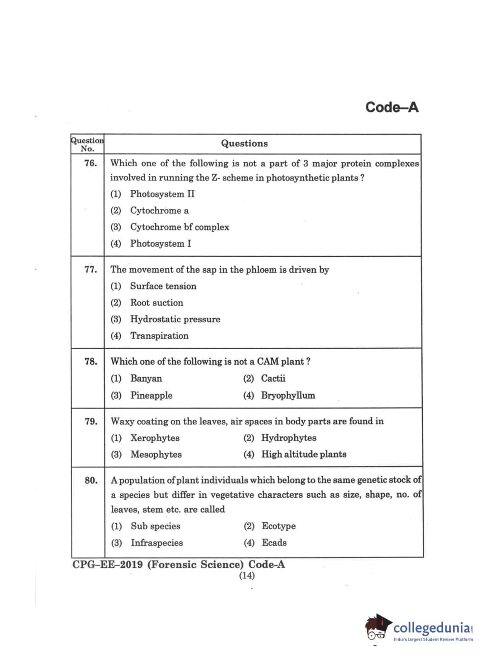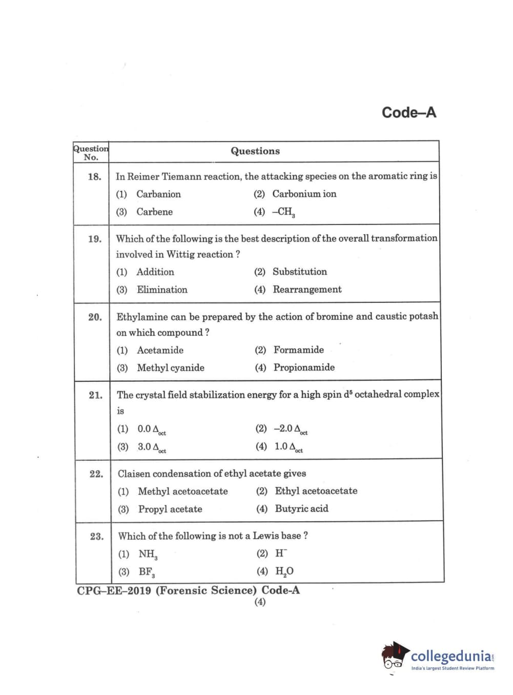 | MDUCEE 2019 Forensic Science Set A Question Paper PDF | MDUCEE 2019 Forensic Science Set A Answer Key PDF |