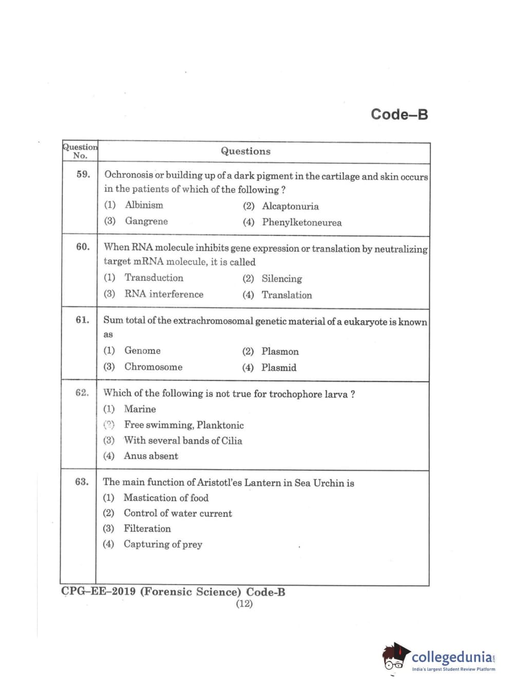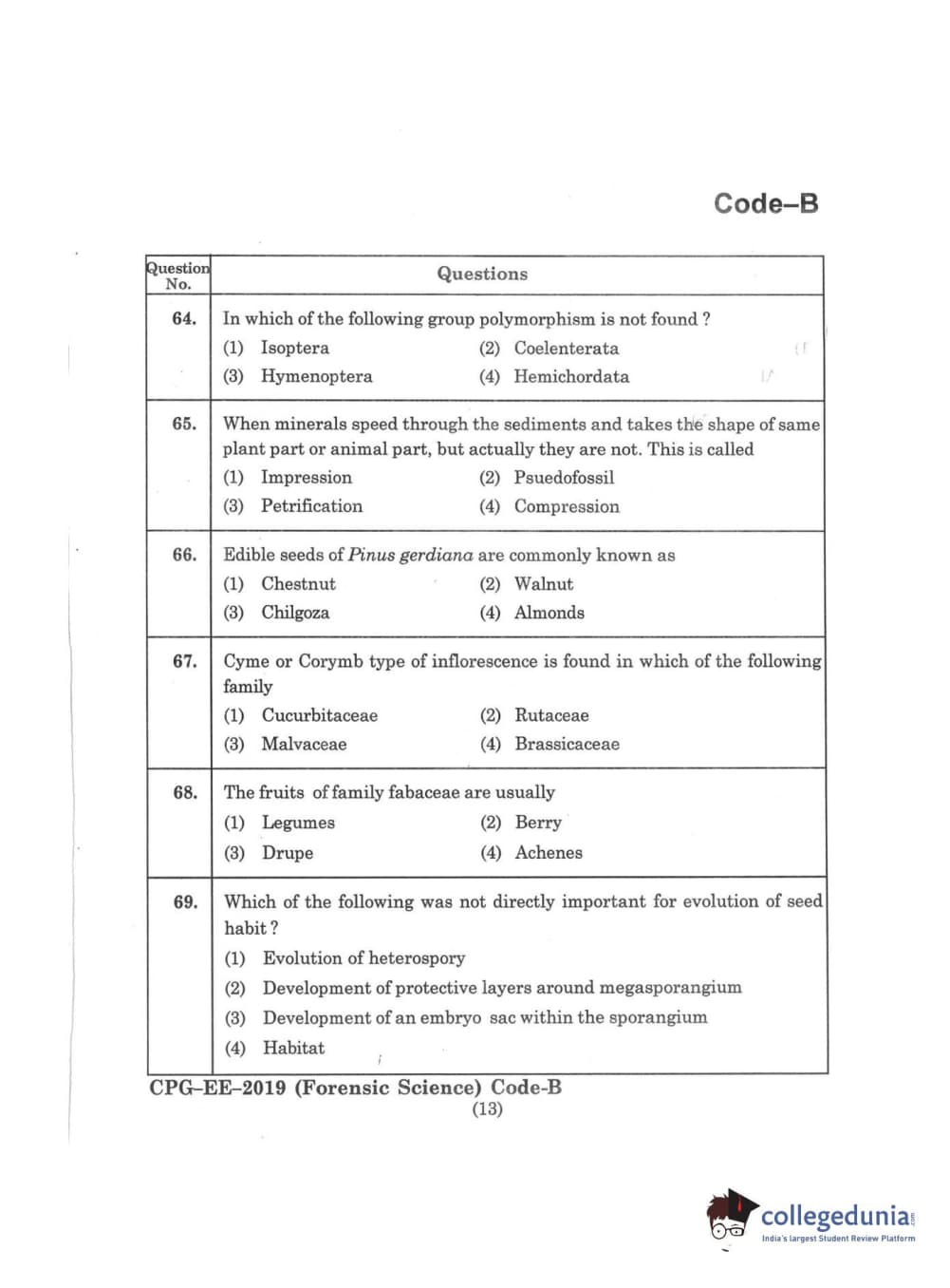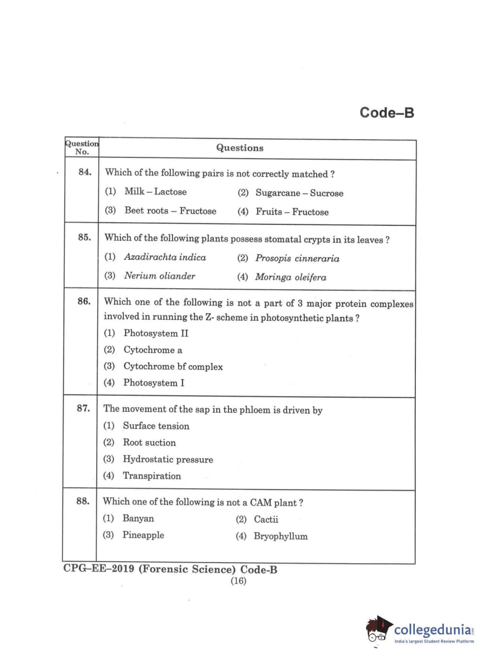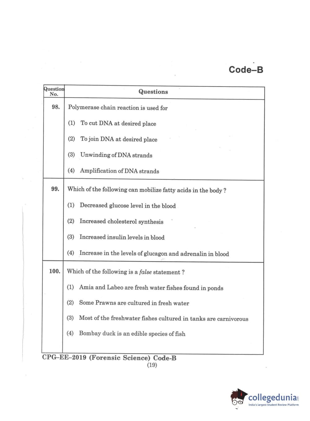 | MDUCEE 2019 Forensic Science Set B Question Paper PDF | MDUCEE 2019 Forensic Science Set B Answer Key PDF |