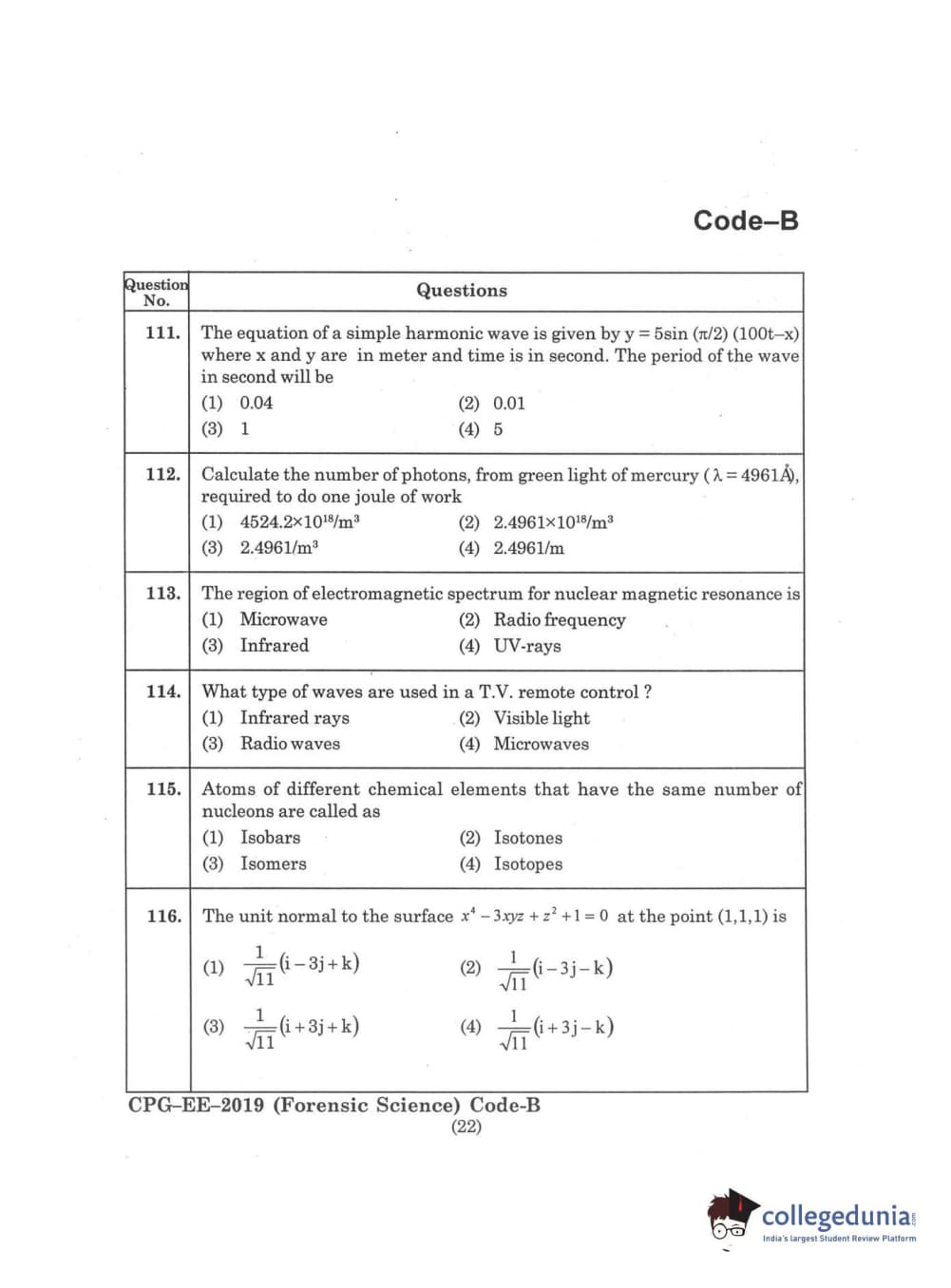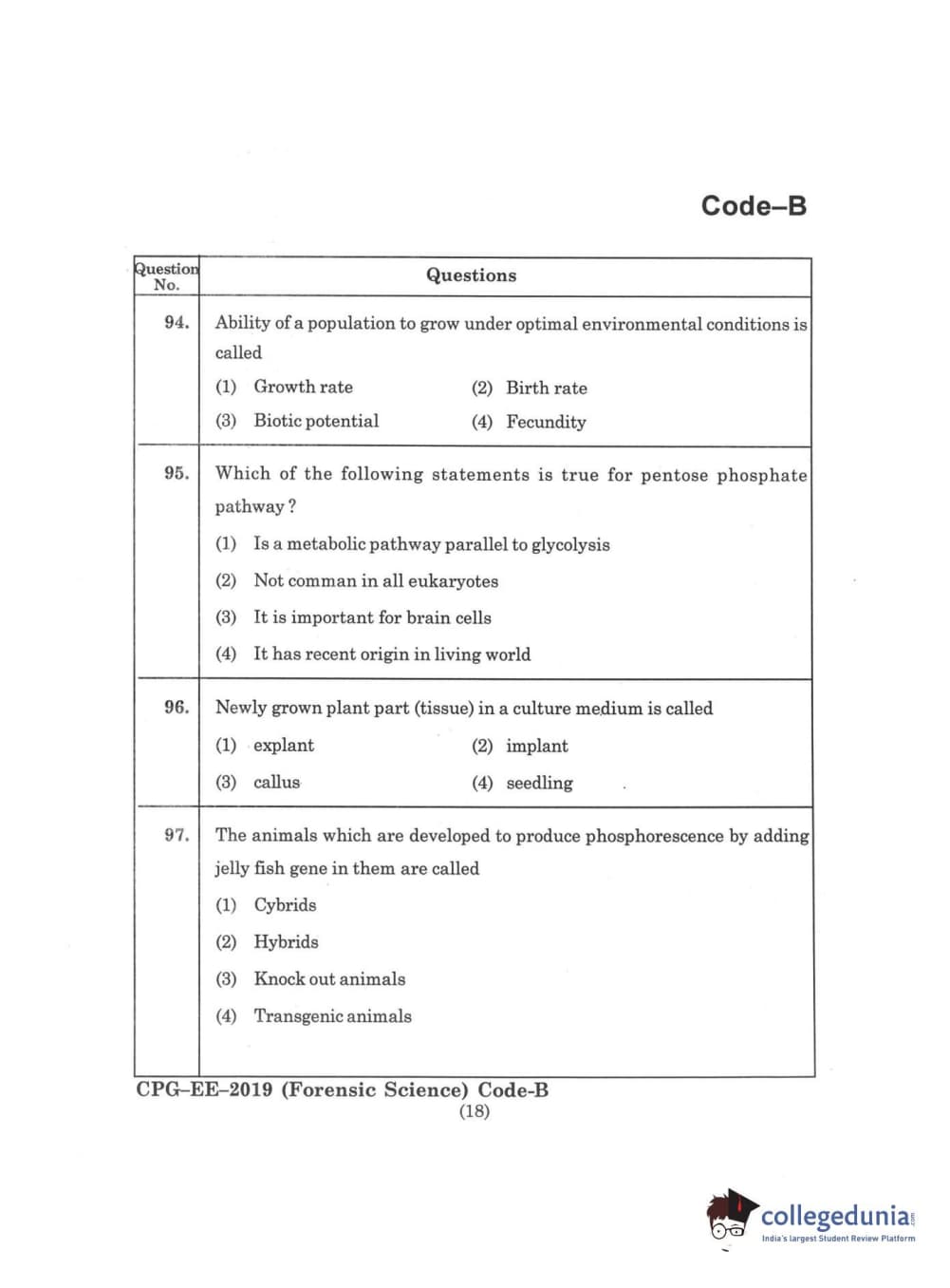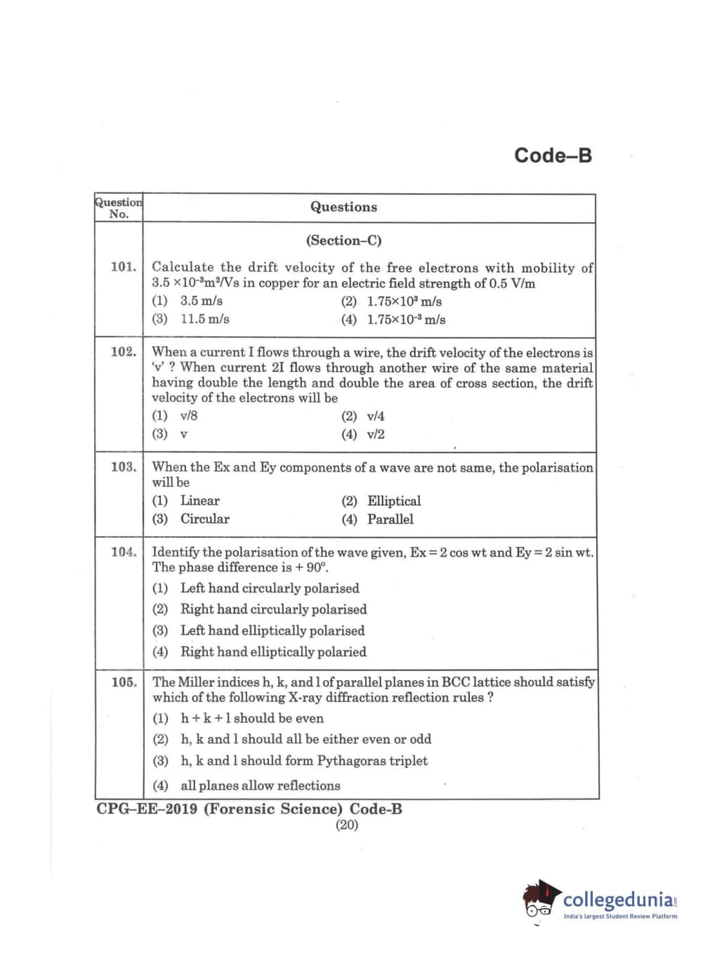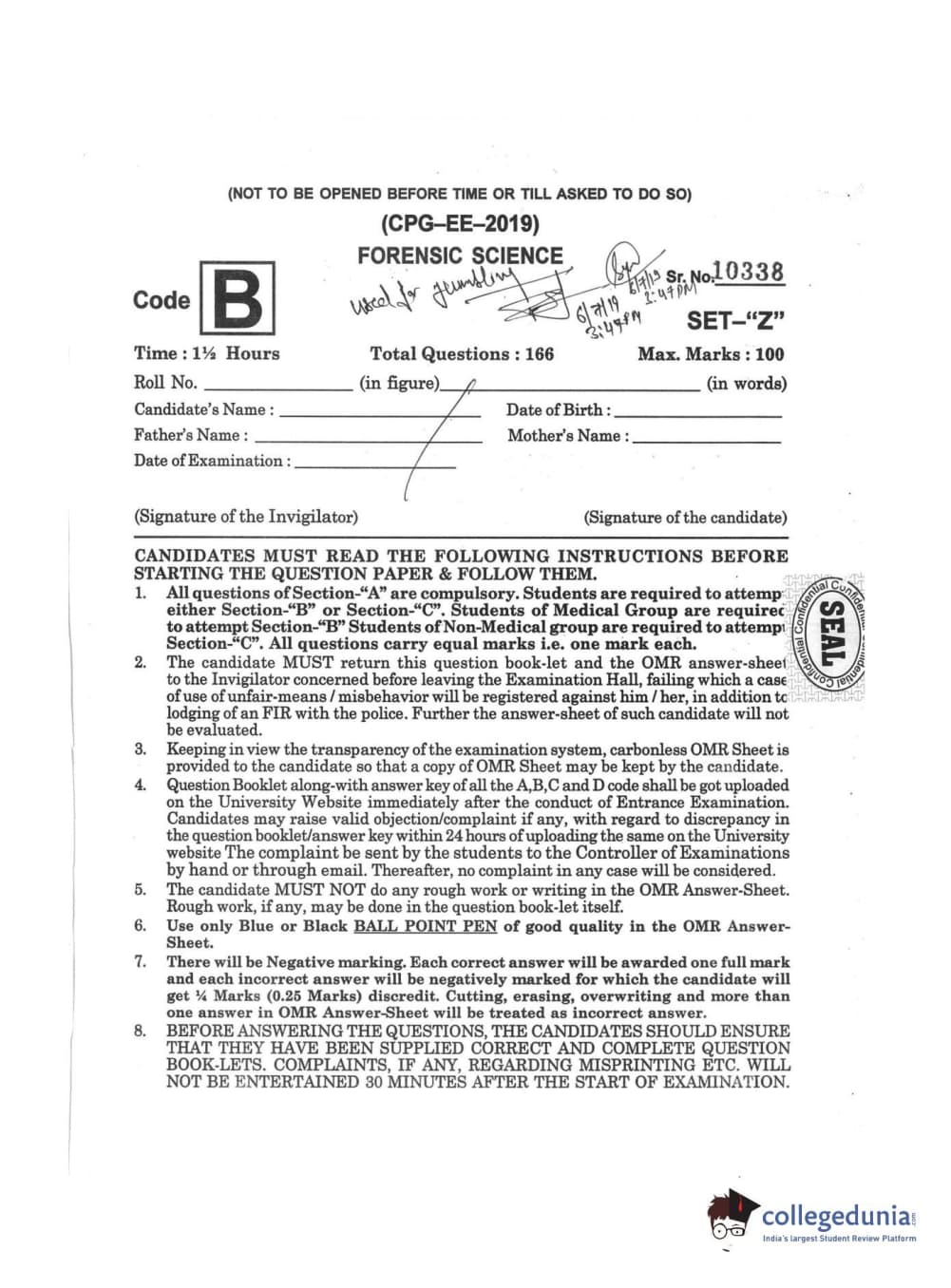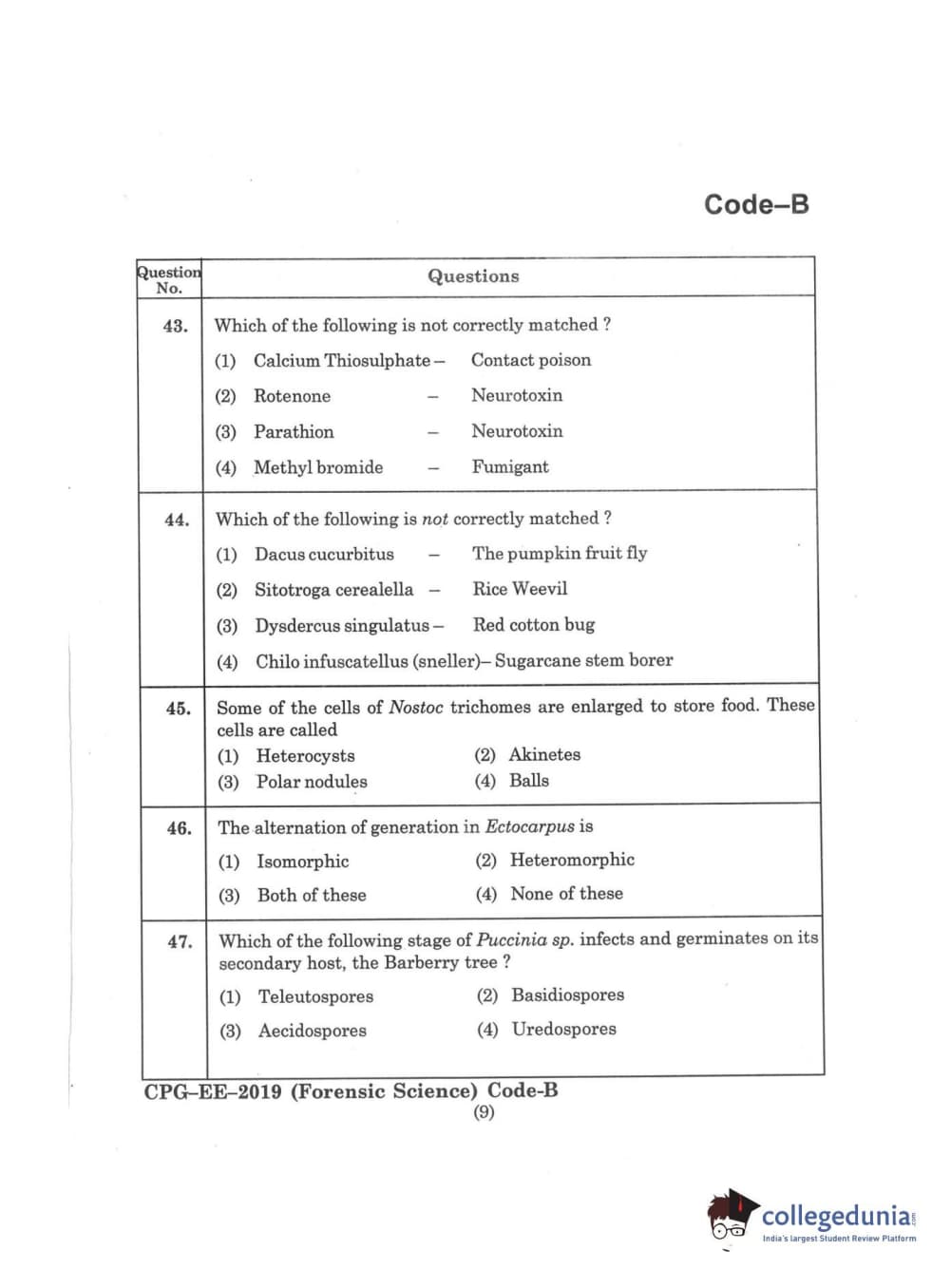 | MDUCEE 2019 Forensic Science Set B Question Paper PDF | MDUCEE 2019 Forensic Science Set B Answer Key PDF |