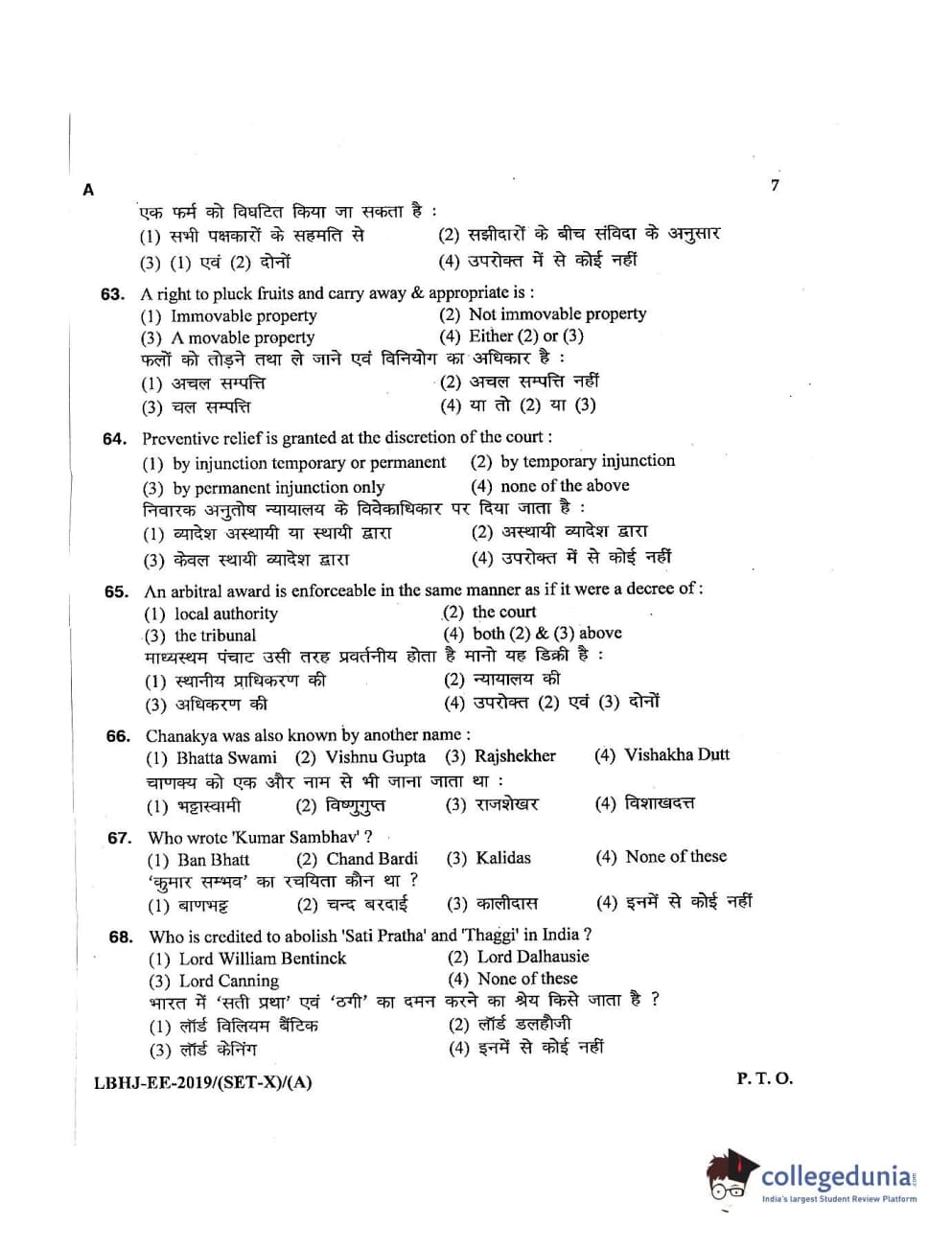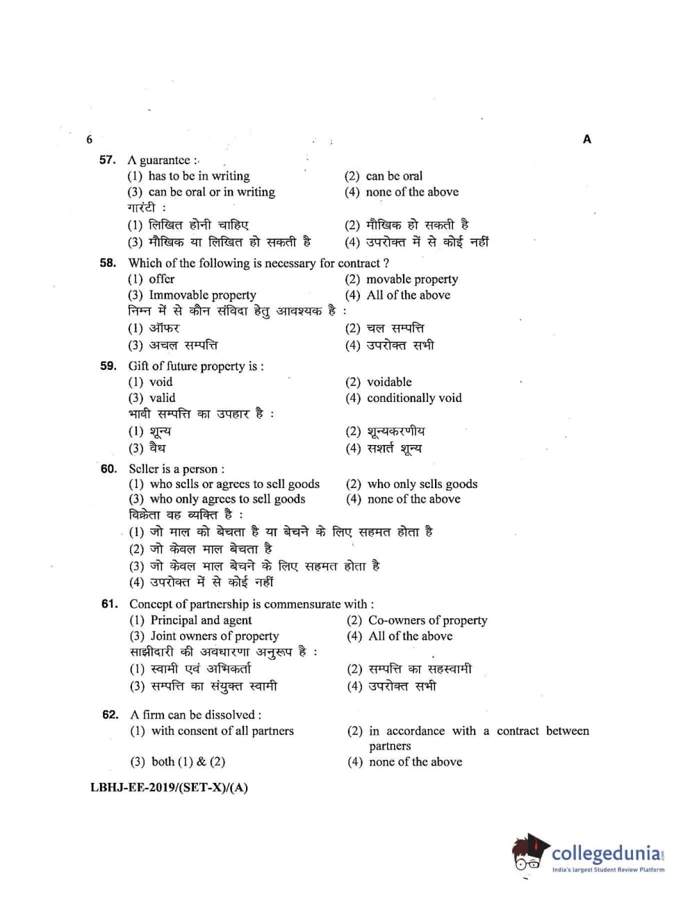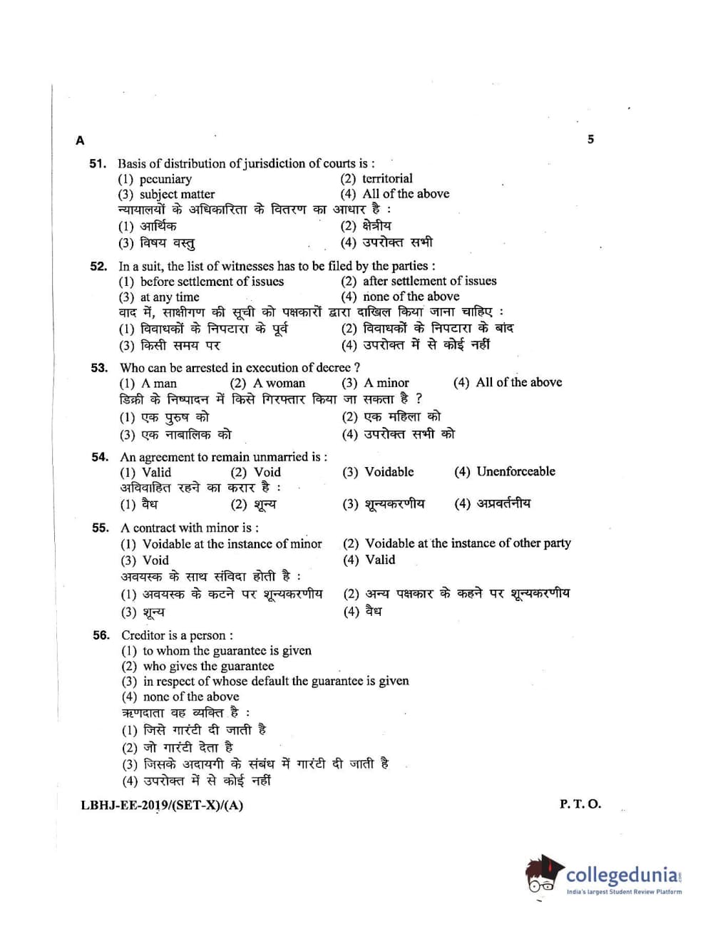 MDUCEE 2019 LL.B. (Hons.) 3 Years Set A Question Paper with Answer Key PDFs