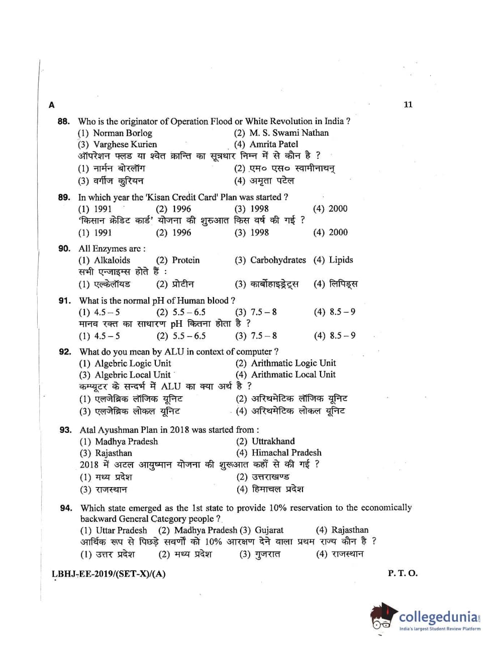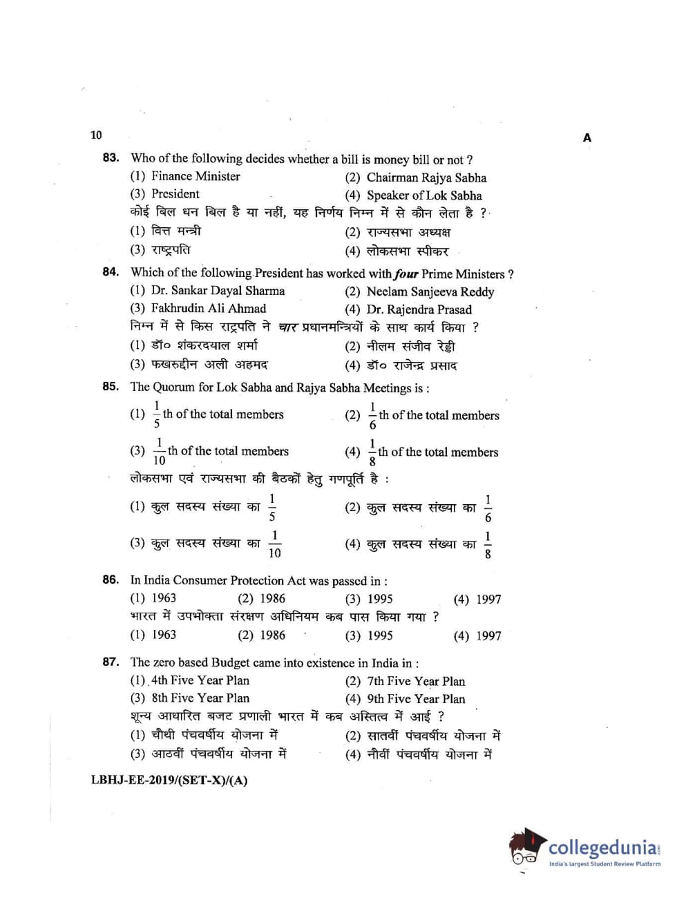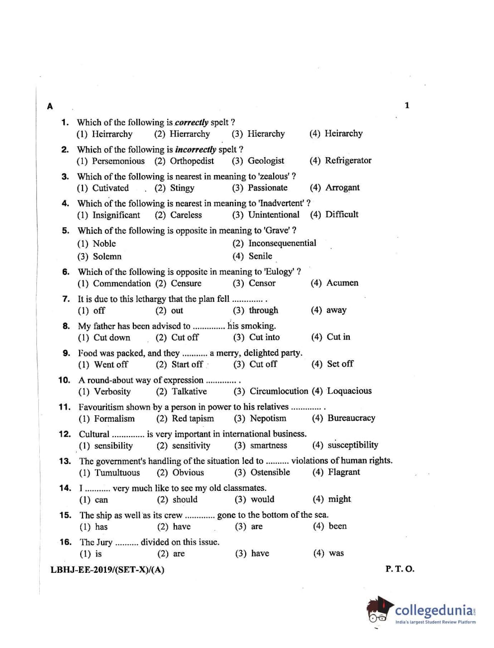 MDUCEE 2019 LL.B. (Hons.) 3 Years Set A Question Paper with Answer Key PDFs