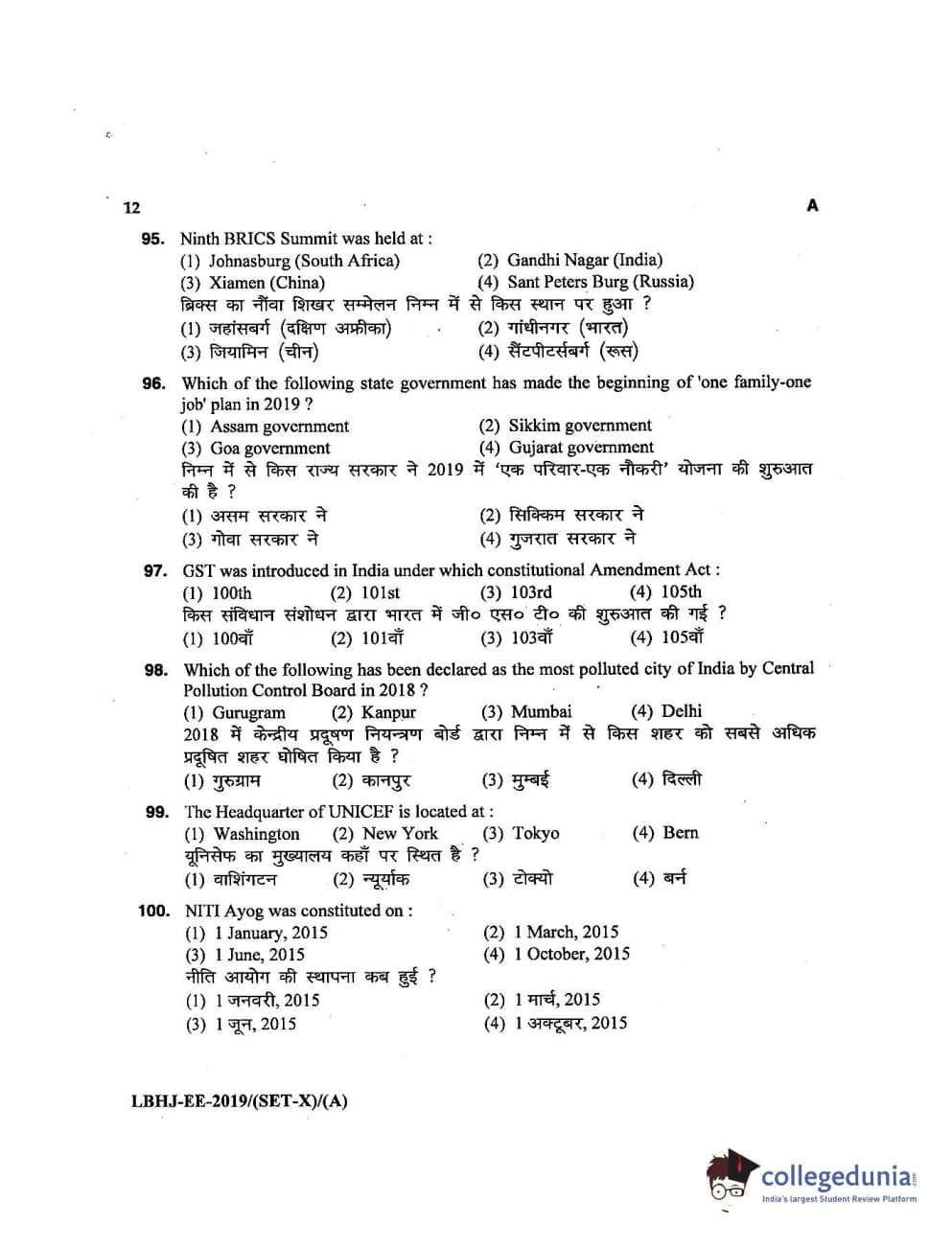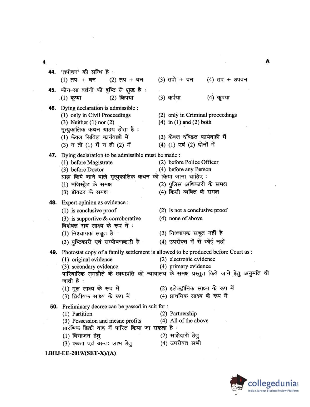 MDUCEE 2019 LL.B. (Hons.) 3 Years Set A Question paper with answer key pdf is available for download. The exam was successfully organized by Maharishi Dayanand University. The question paper comprised a total of 100 questions.
