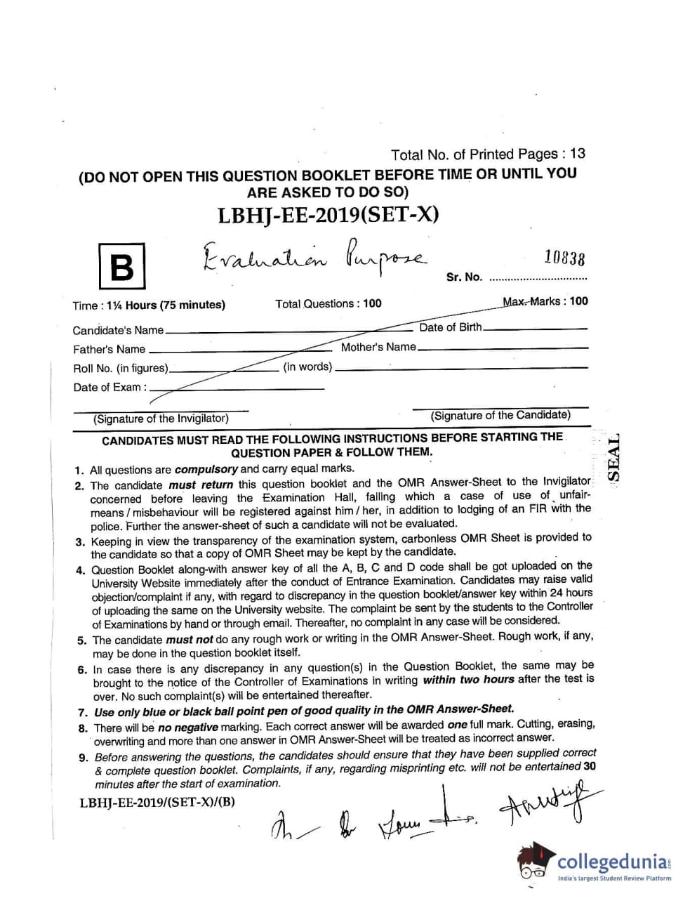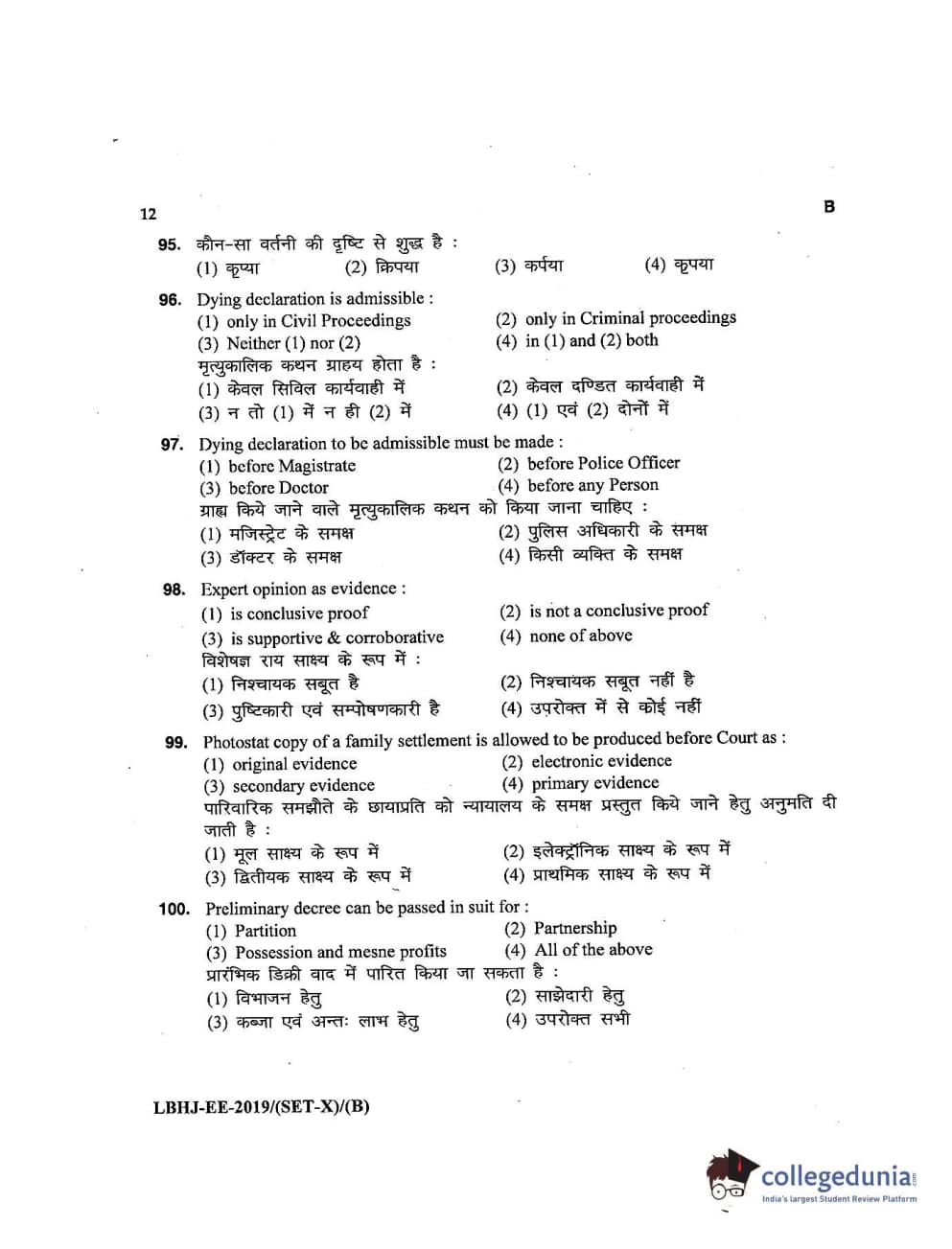 MDUCEE 2019 LL.B. (Hons.) 3 Years Set B Question paper with answer key pdf is available for download. The exam was successfully organized by Maharishi Dayanand University. The question paper comprised a total of 100 questions.