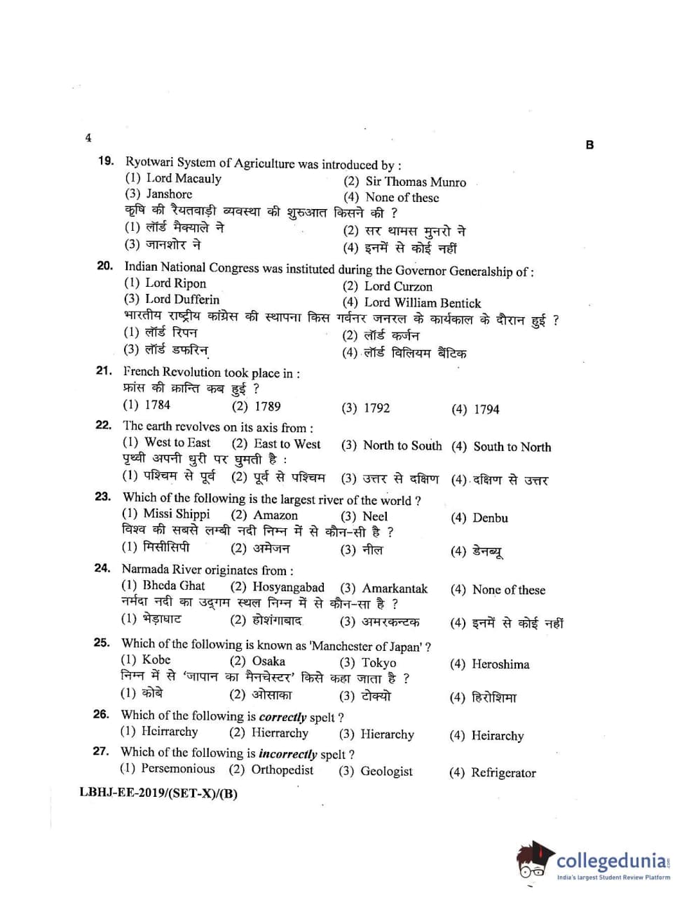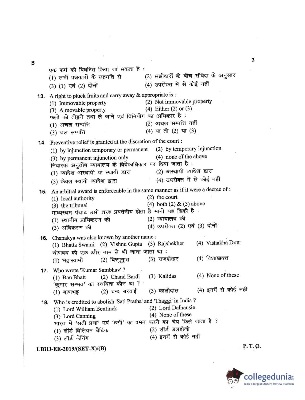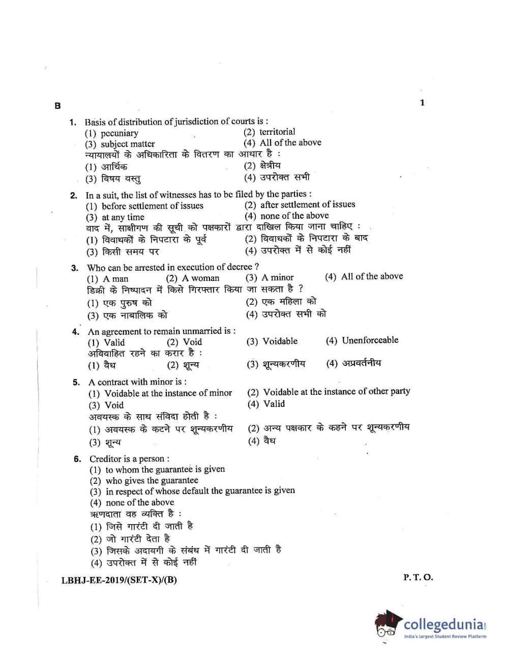 MDUCEE 2019 LL.B. (Hons.) 3 Years Set B Question Paper with Answer Key PDFs