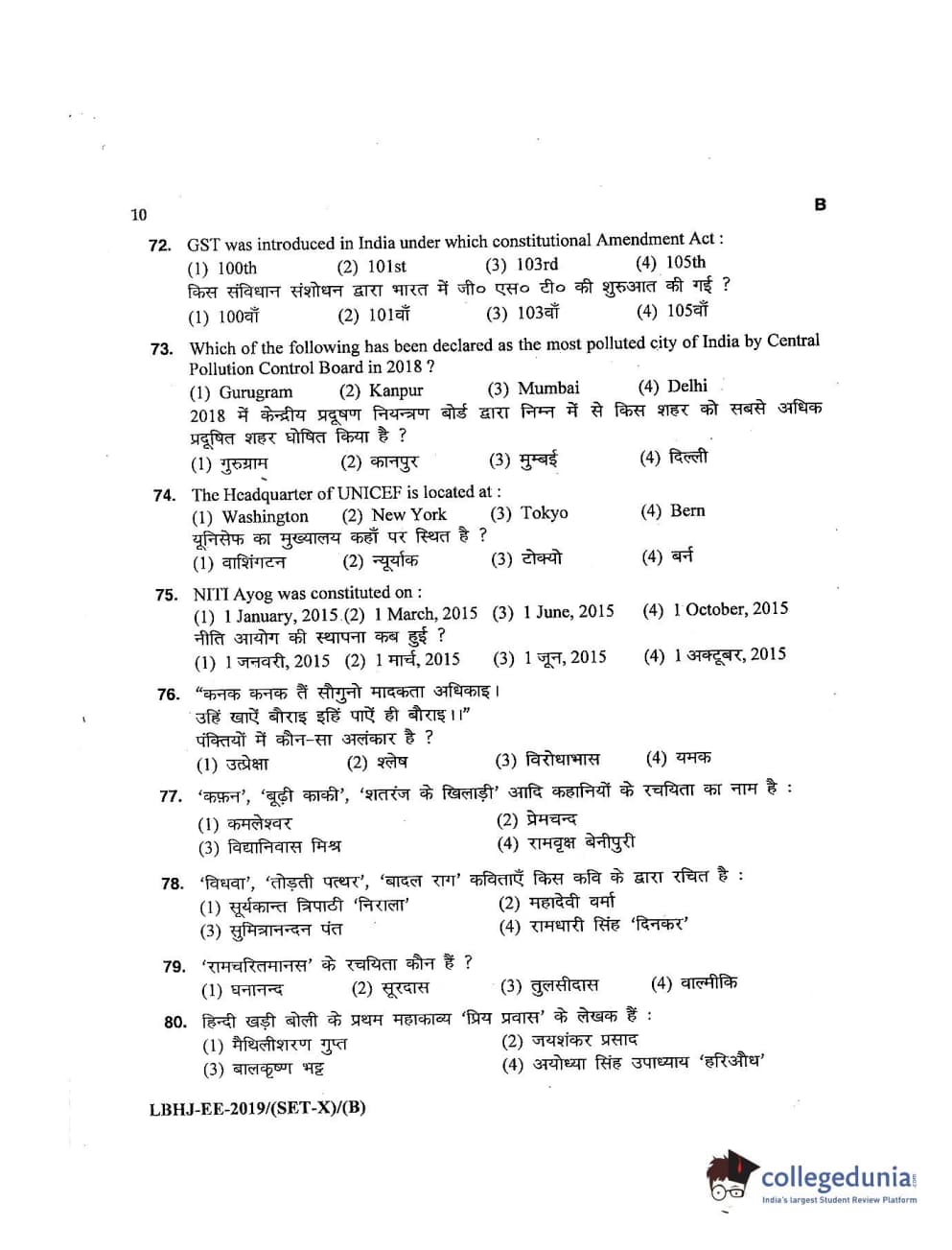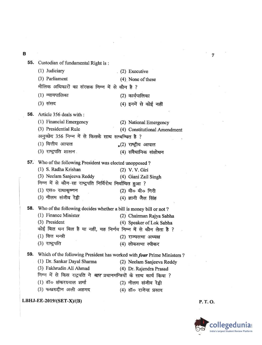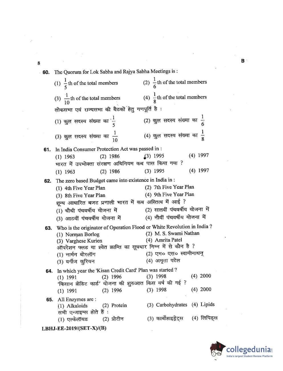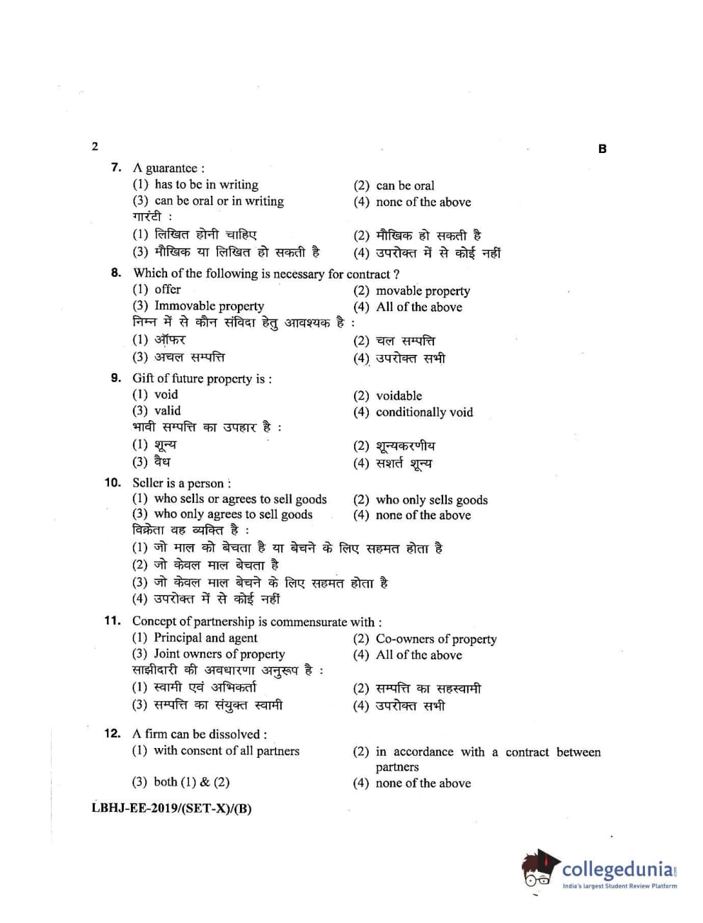 MDUCEE 2019 LL.B. (Hons.) 3 Years Set B Question Paper with Answer Key PDFs
