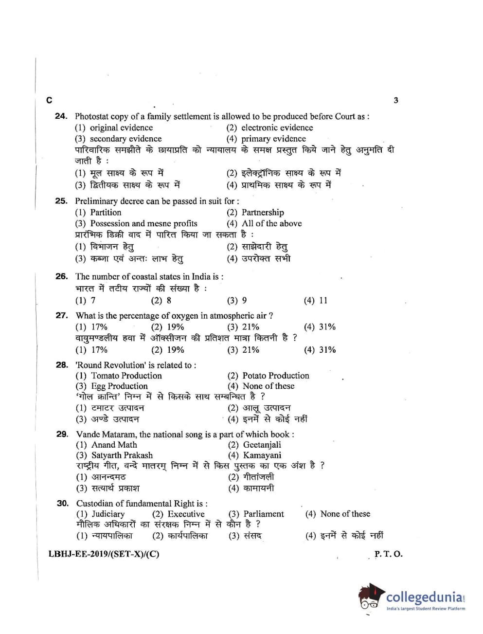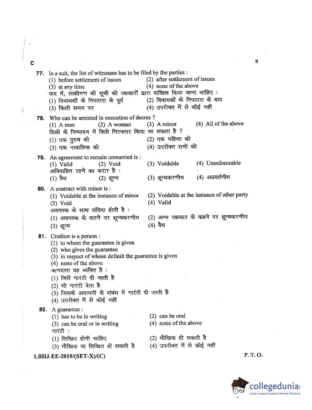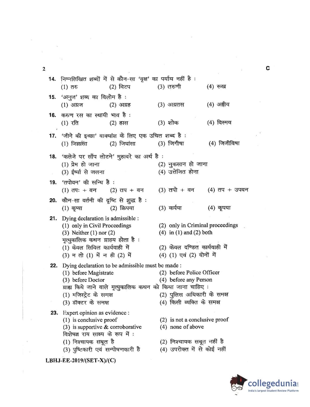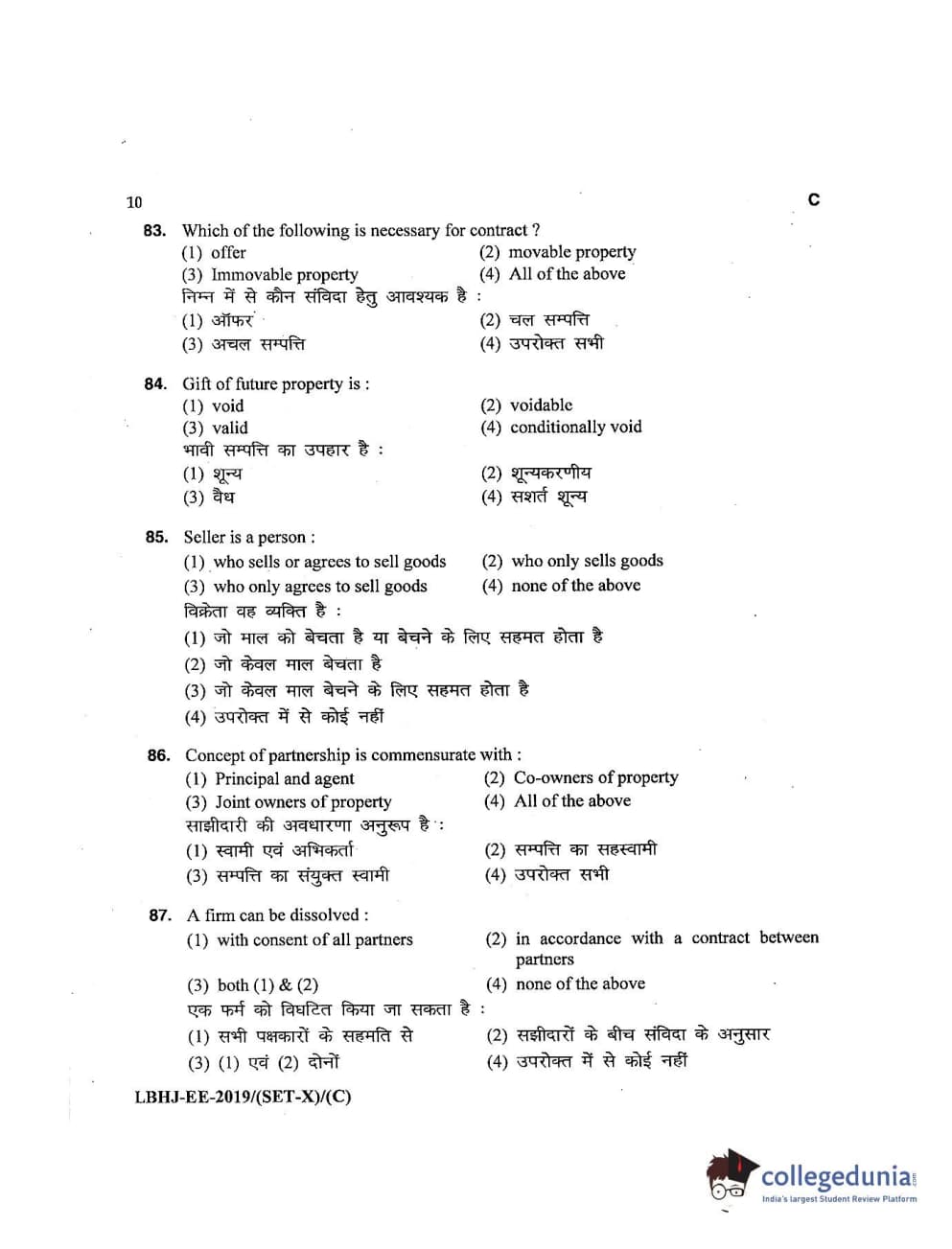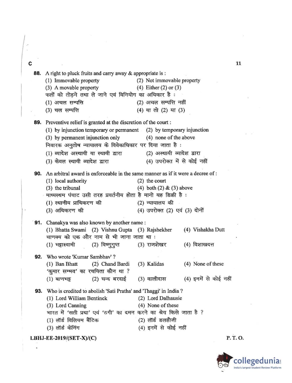 MDUCEE 2019 LL.B. (Hons.) 3 Years Set C Question Paper with Answer Key PDFs