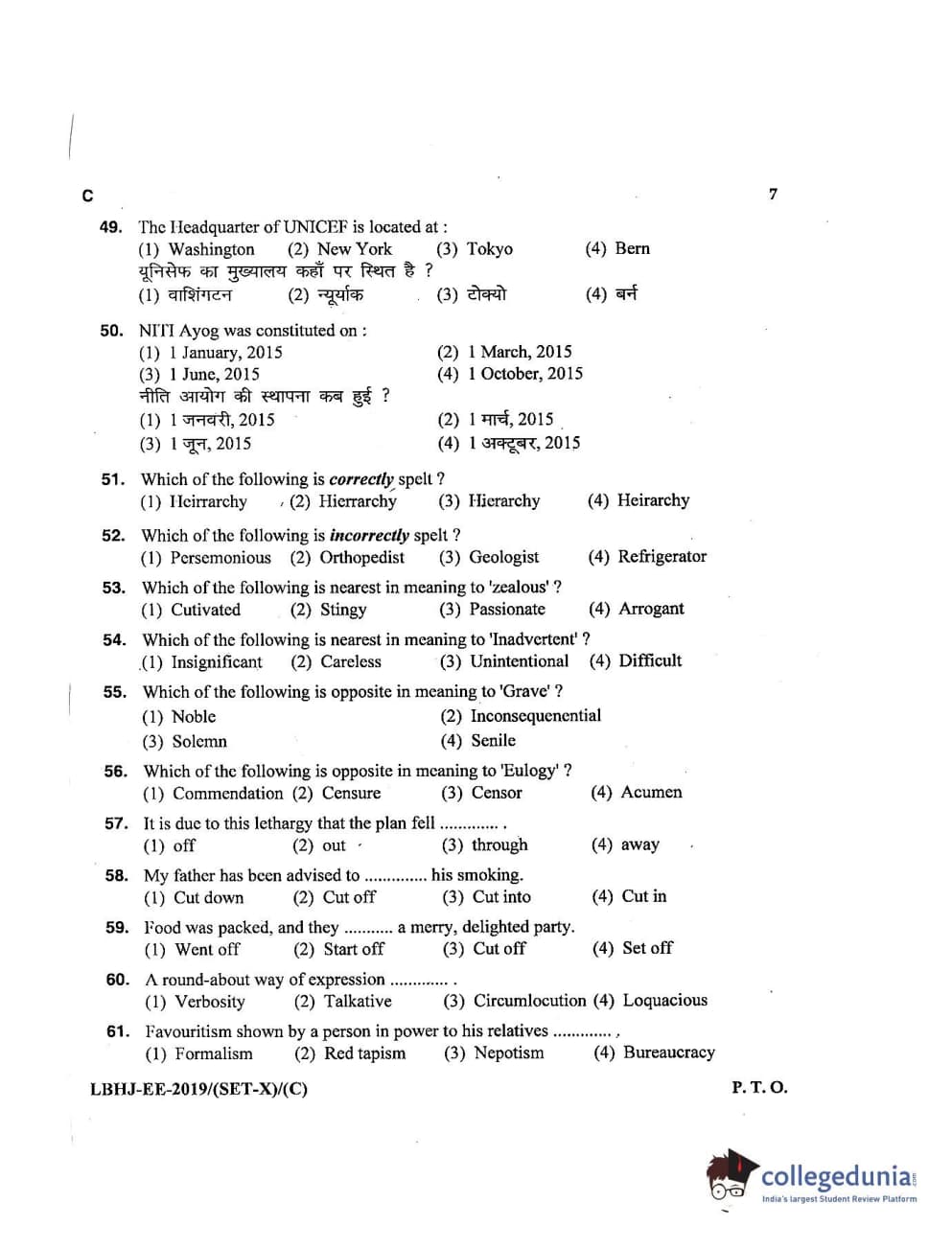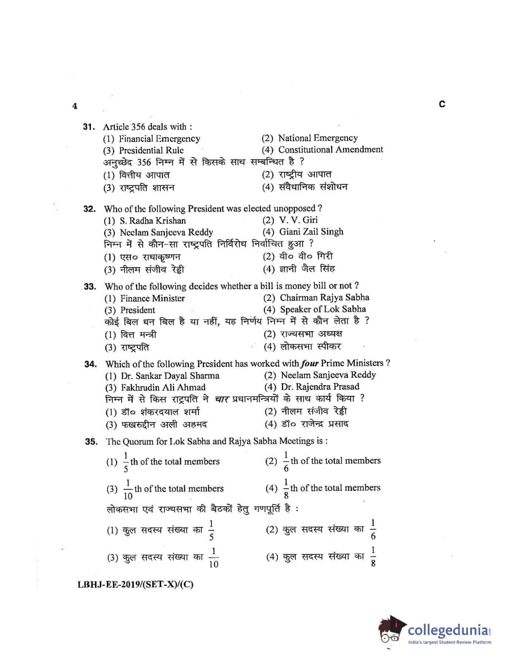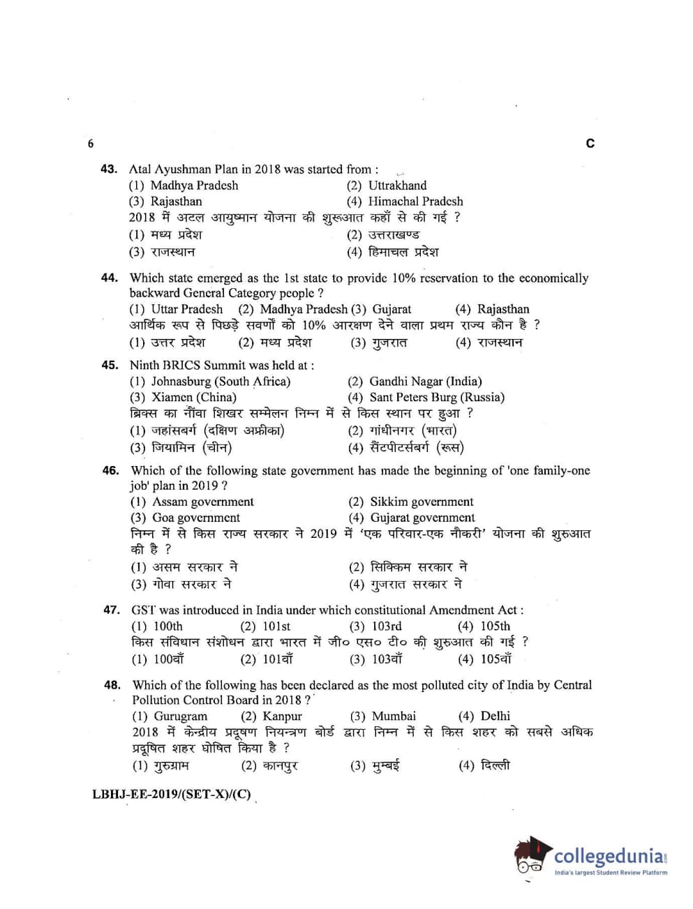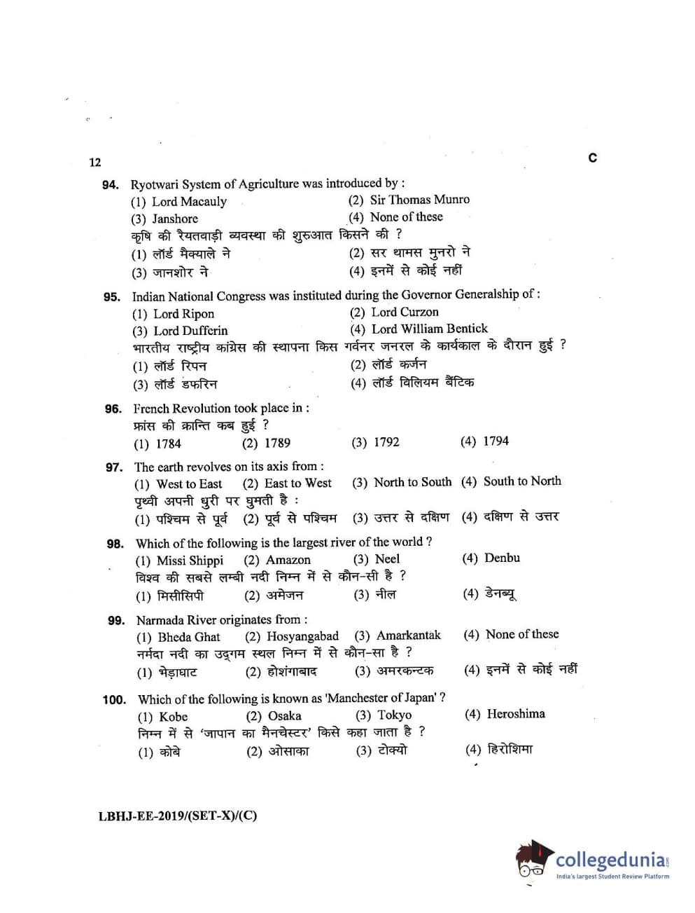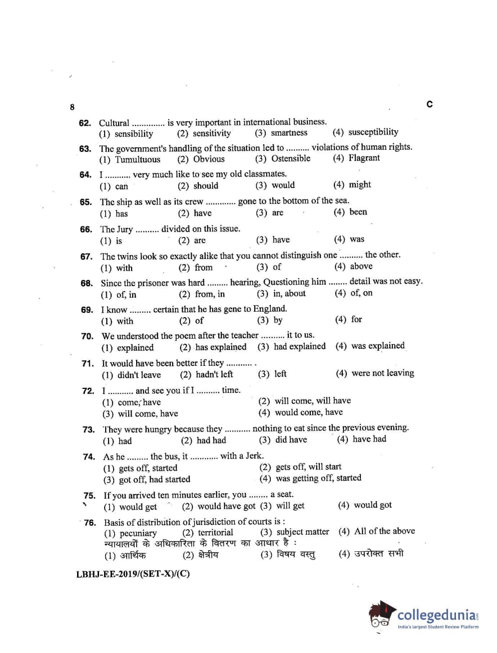MDUCEE 2019 LL.B. (Hons.) 3 Years Set C Question Paper with Answer Key PDFs