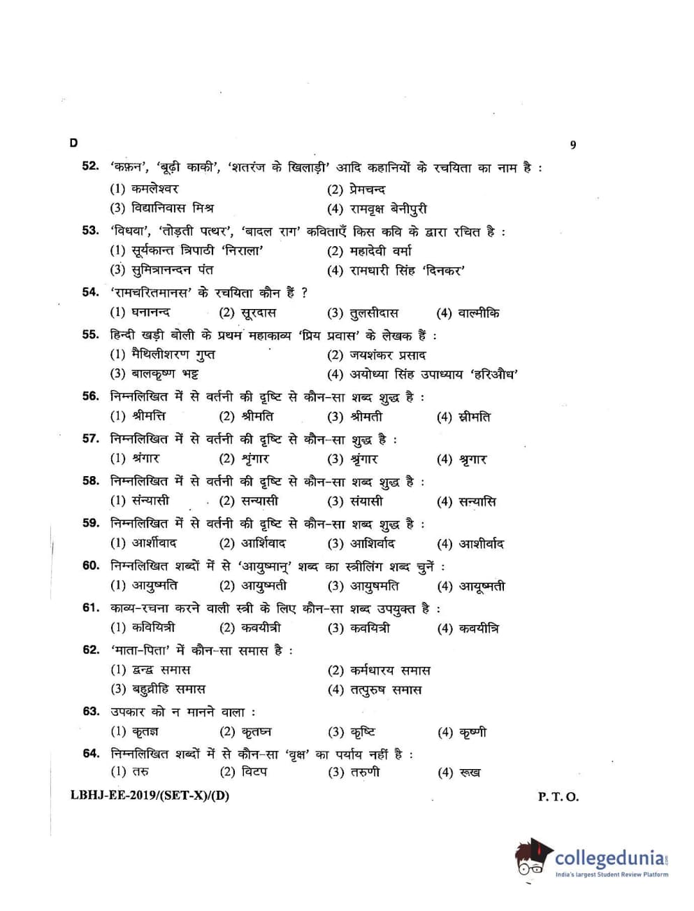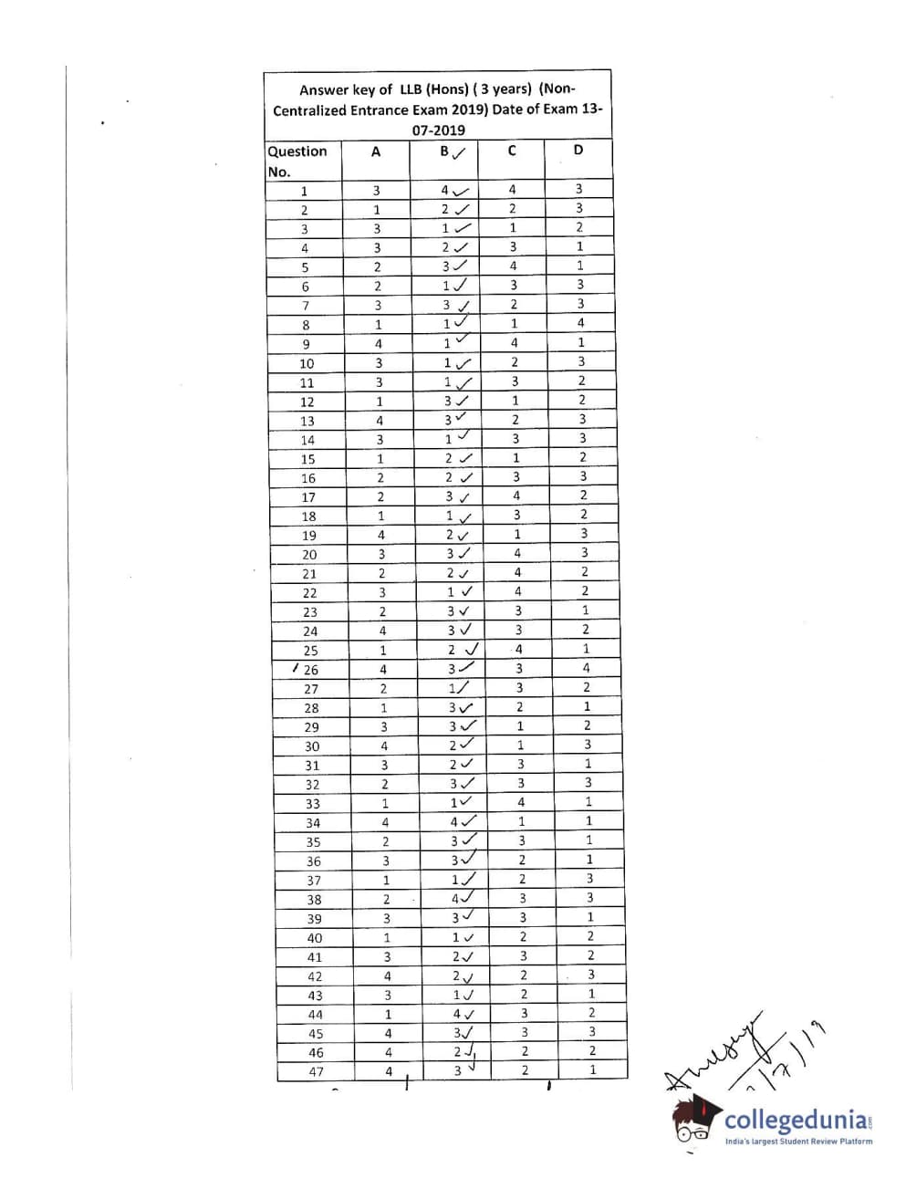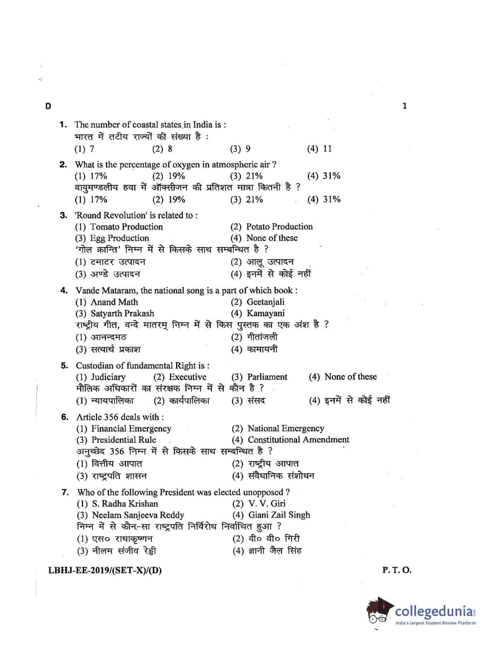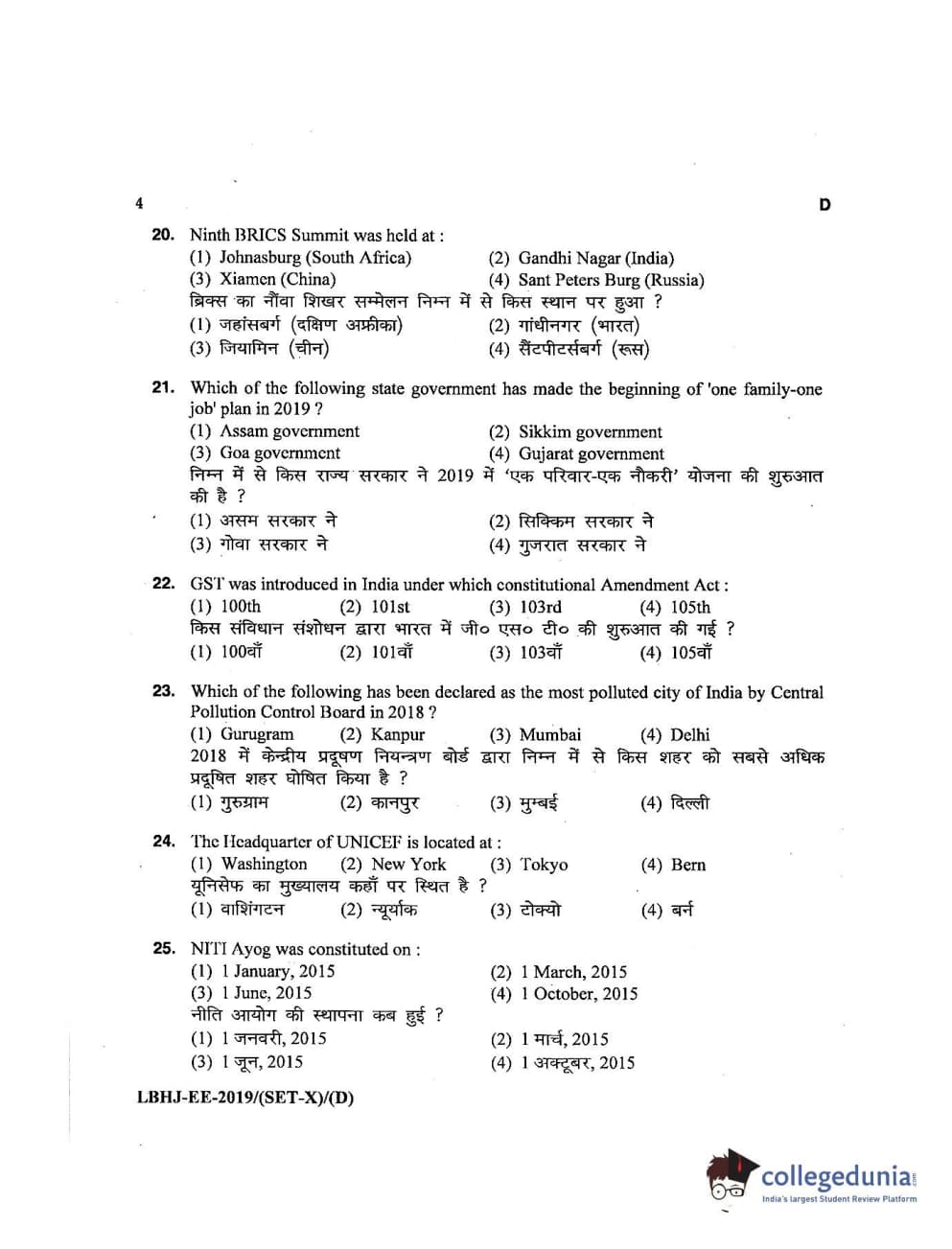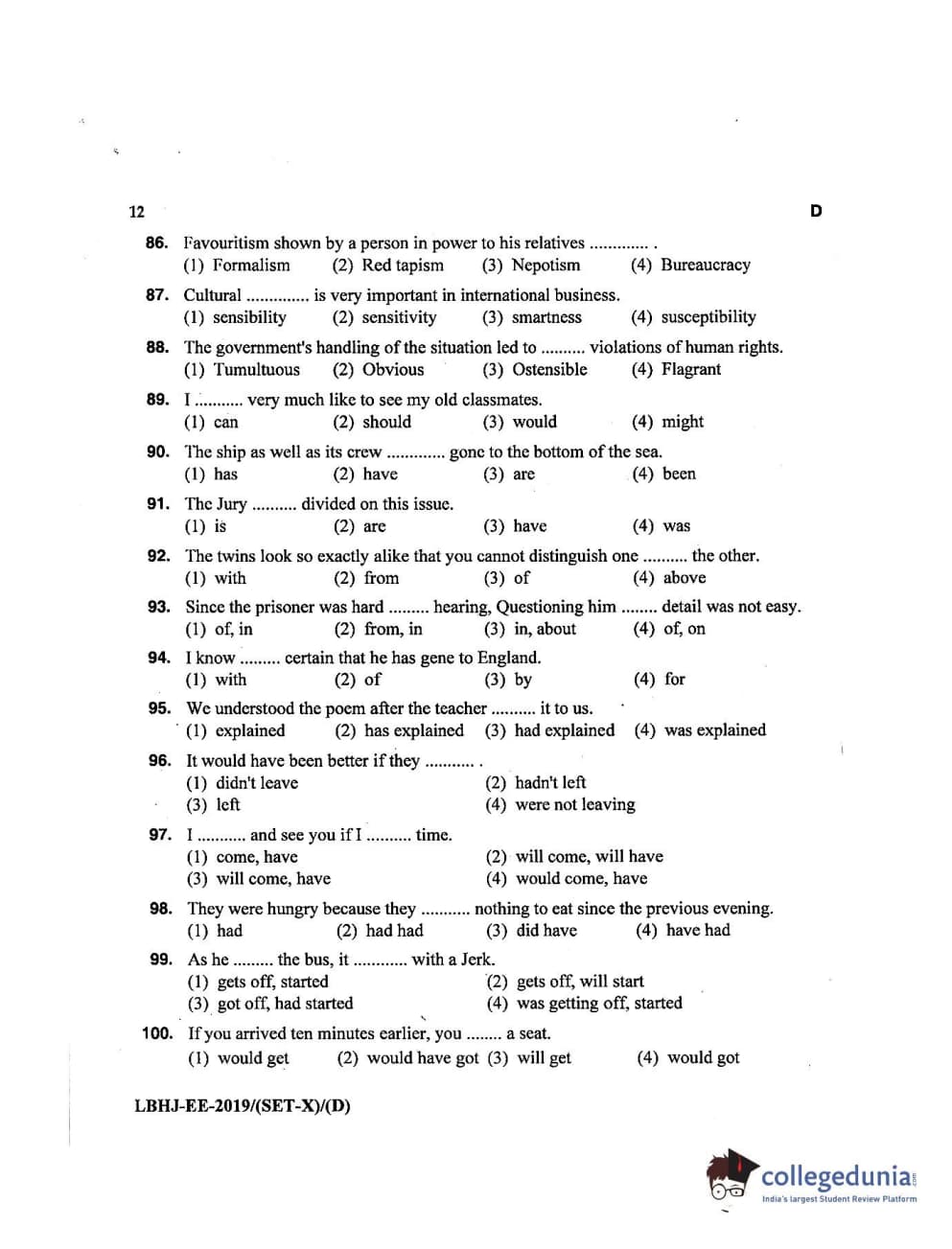 MDUCEE 2019 LL.B. (Hons.) 3 Years Set D Question Paper with Answer Key PDFs