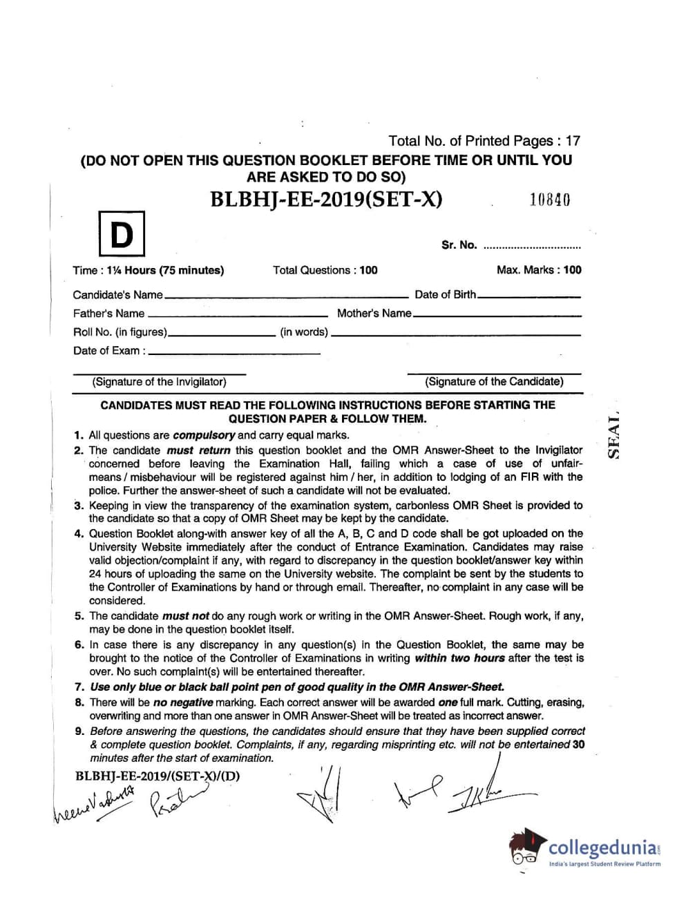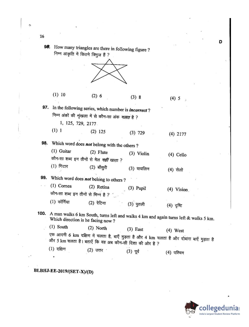 MDUCEE 2019 LL.B. (Hons.) 5 Years Integrated Set D Question paper with answer key pdf is available for download. The exam was successfully organized by Maharishi Dayanand University. The question paper comprised a total of 100 questions.