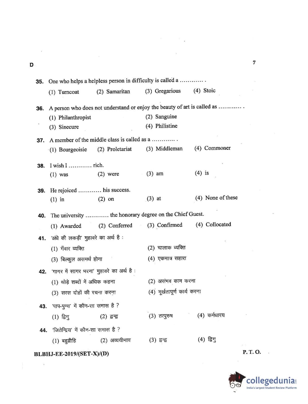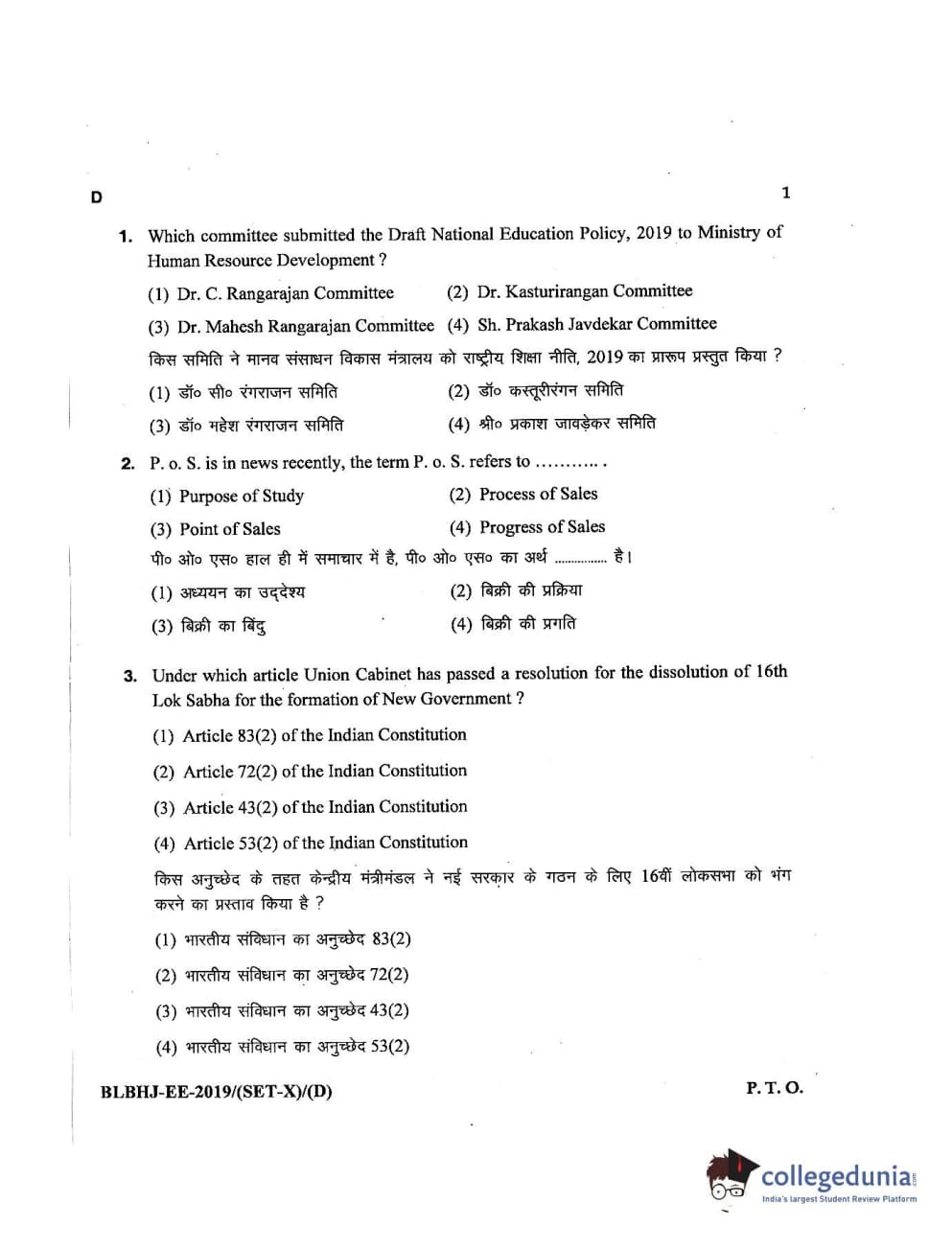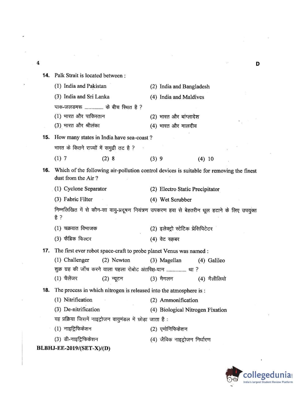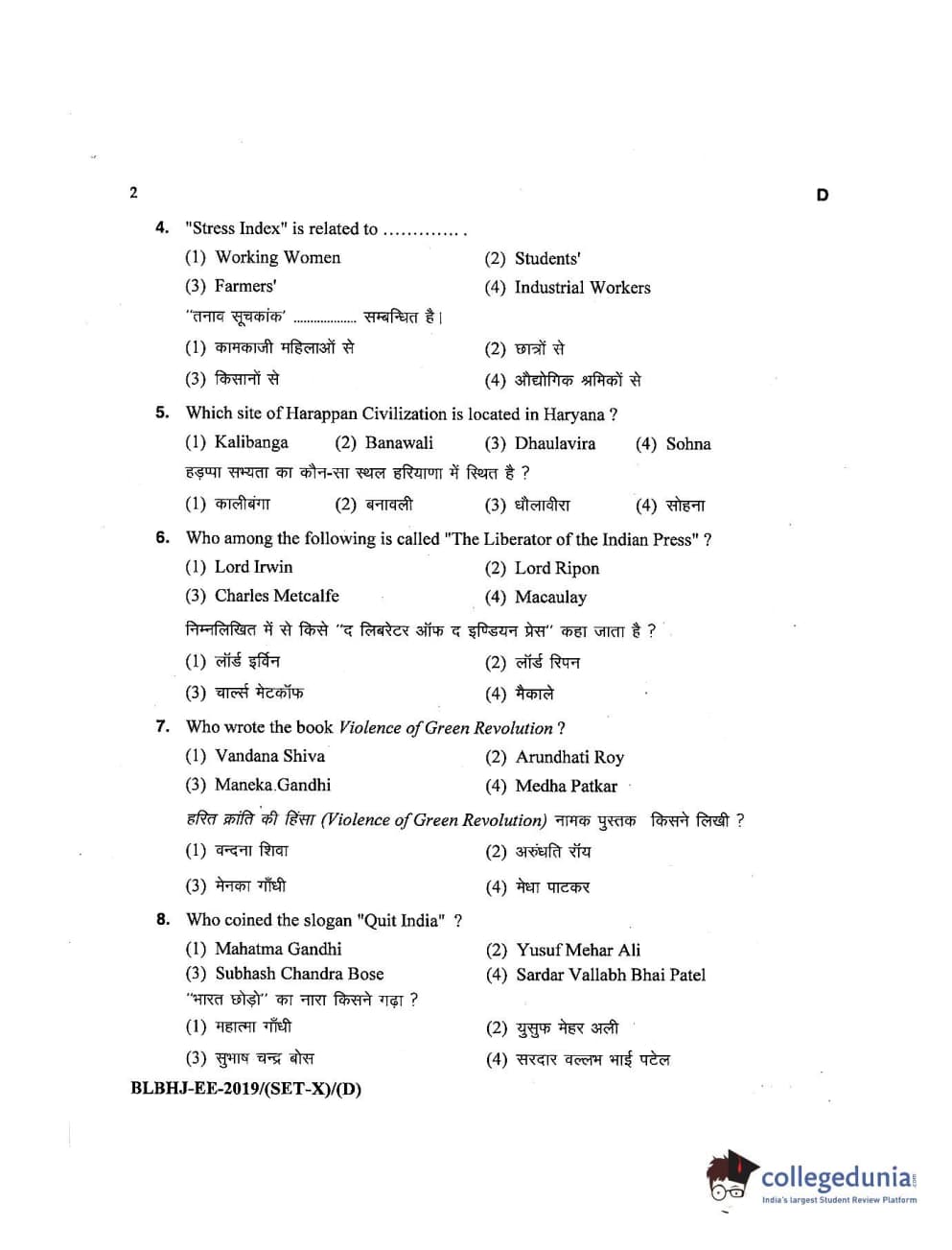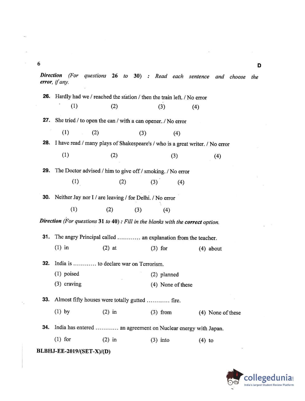 MDUCEE 2019 LL.B. (Hons.) 5 Years Integrated Set D Question Paper with Answer Key PDFs