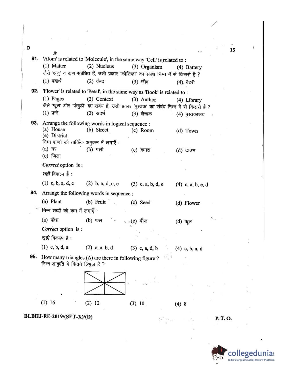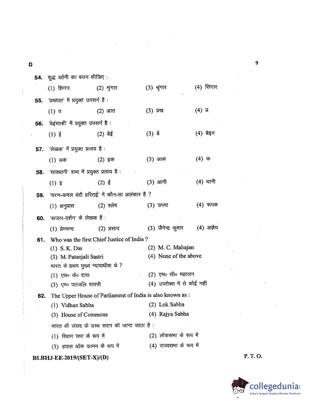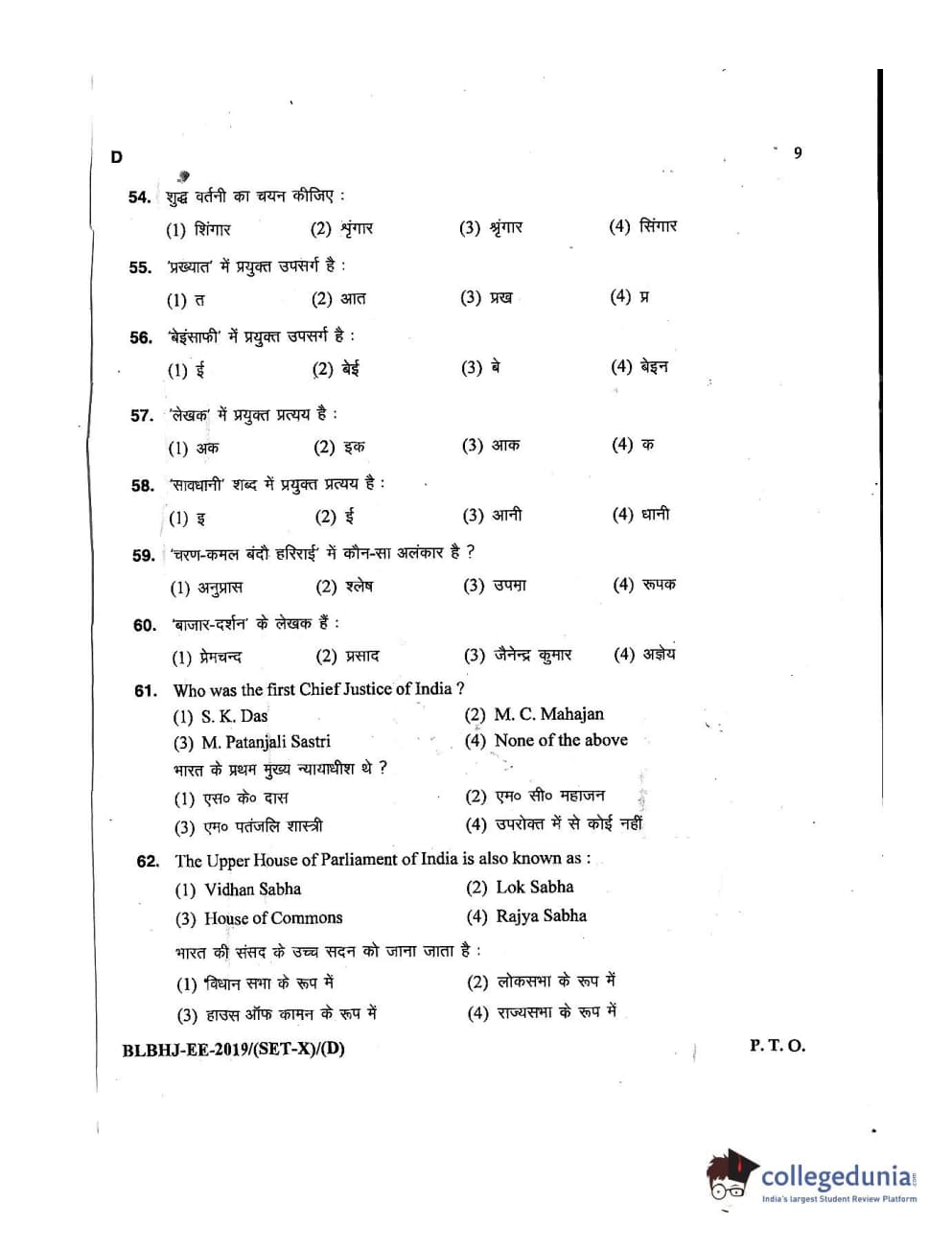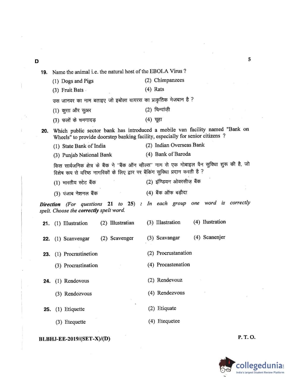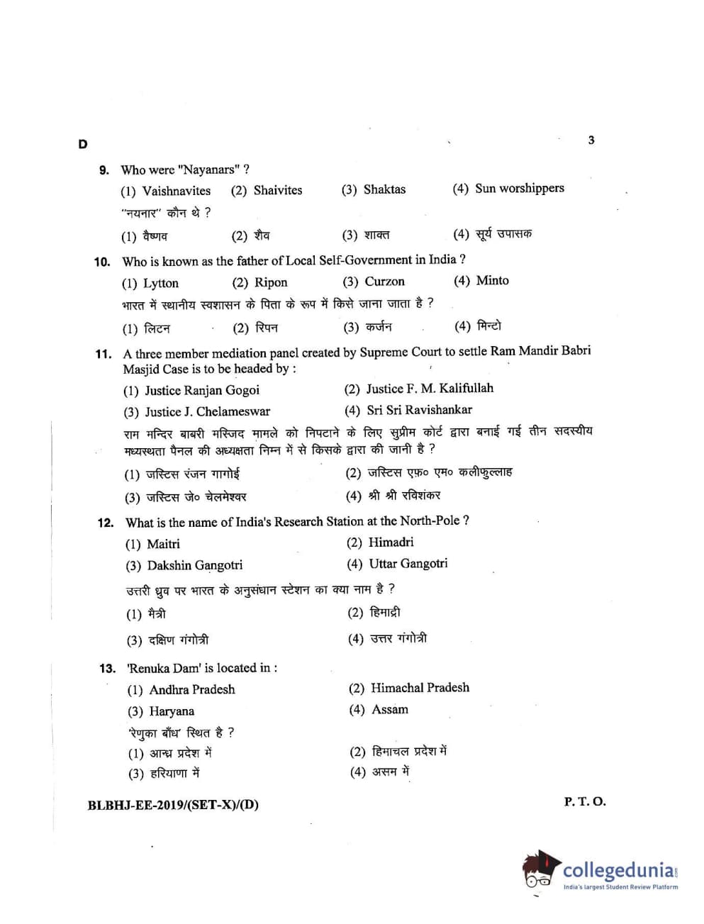 MDUCEE 2019 LL.B. (Hons.) 5 Years Integrated Set D Question Paper with Answer Key PDFs