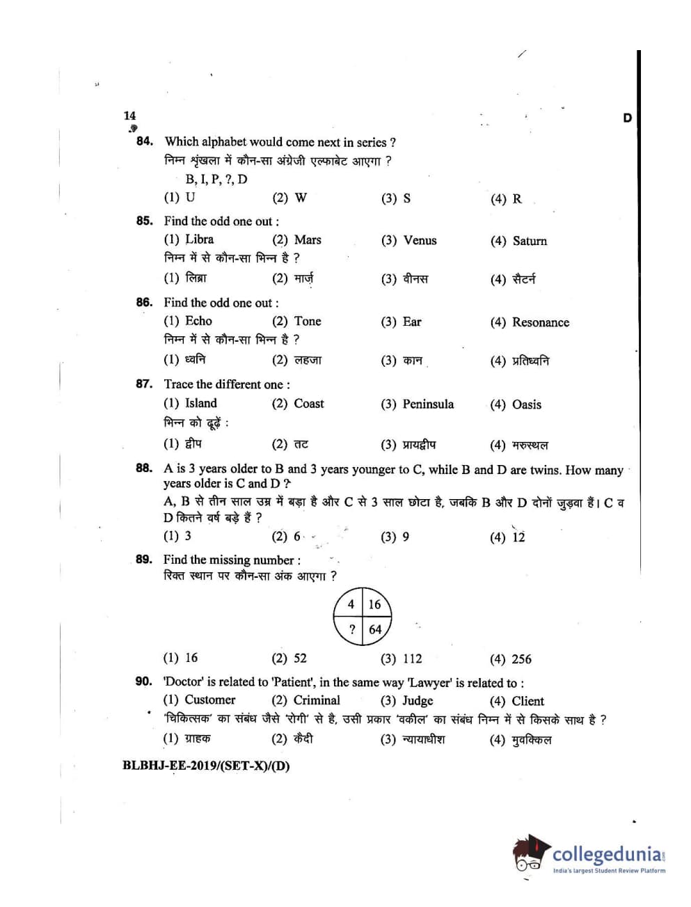 | MDUCEE 2019 LL.B. (Hons.) 5 Years Integrated Set D Question Paper PDF | MDUCEE 2019 LL.B. (Hons.) 5 Years Integrated Set D Answer Key PDF |