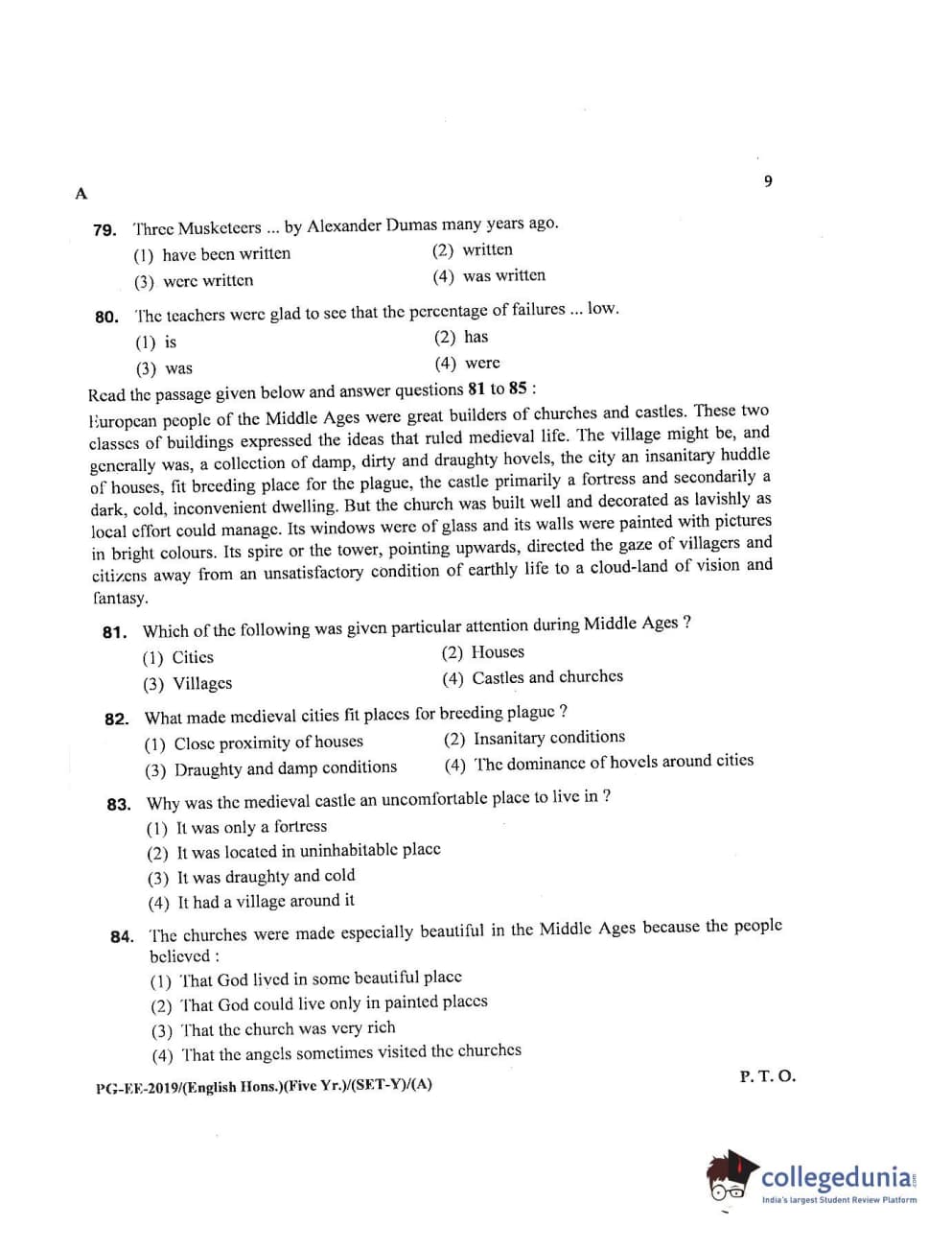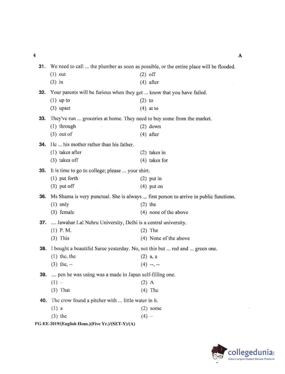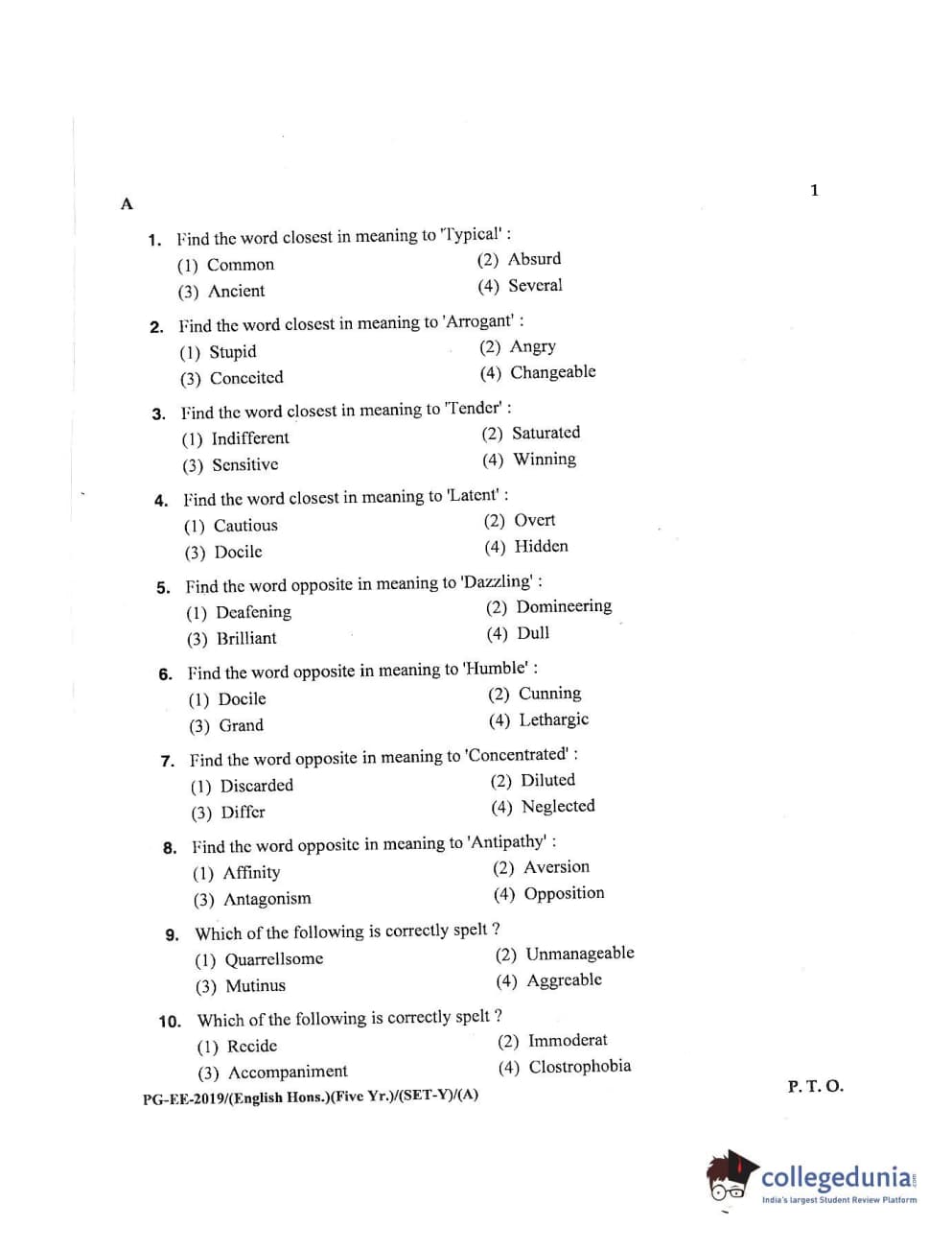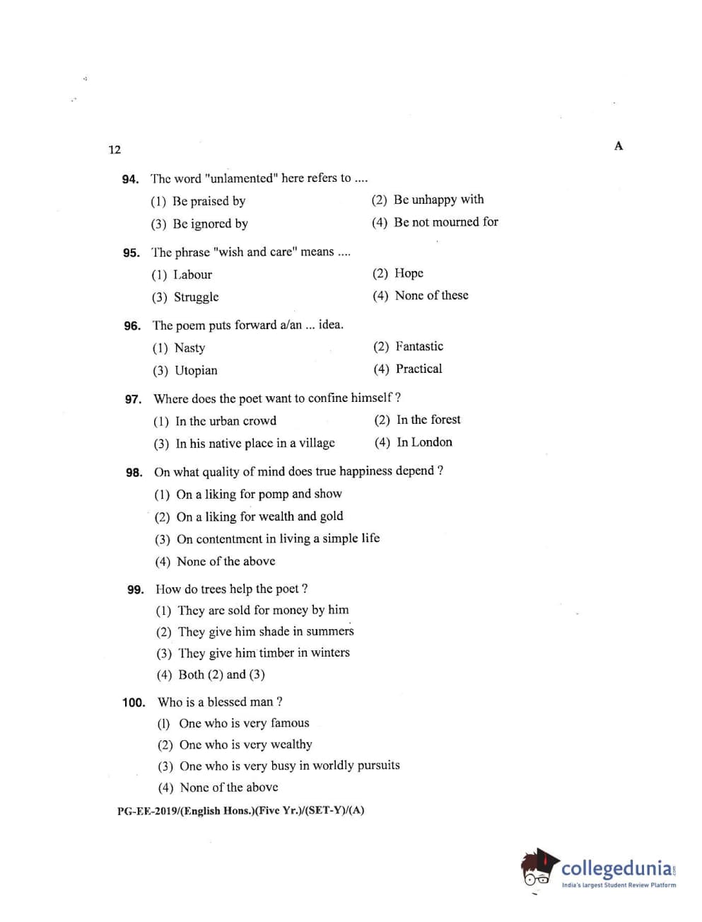 | MDUCEE 2019 M.A English Hons 5 Year Integrated (Reconducted) Set A Question Paper PDF | MDUCEE 2019 M.A English Hons 5 Year Integrated (Reconducted) Set A Answer Key PDF |