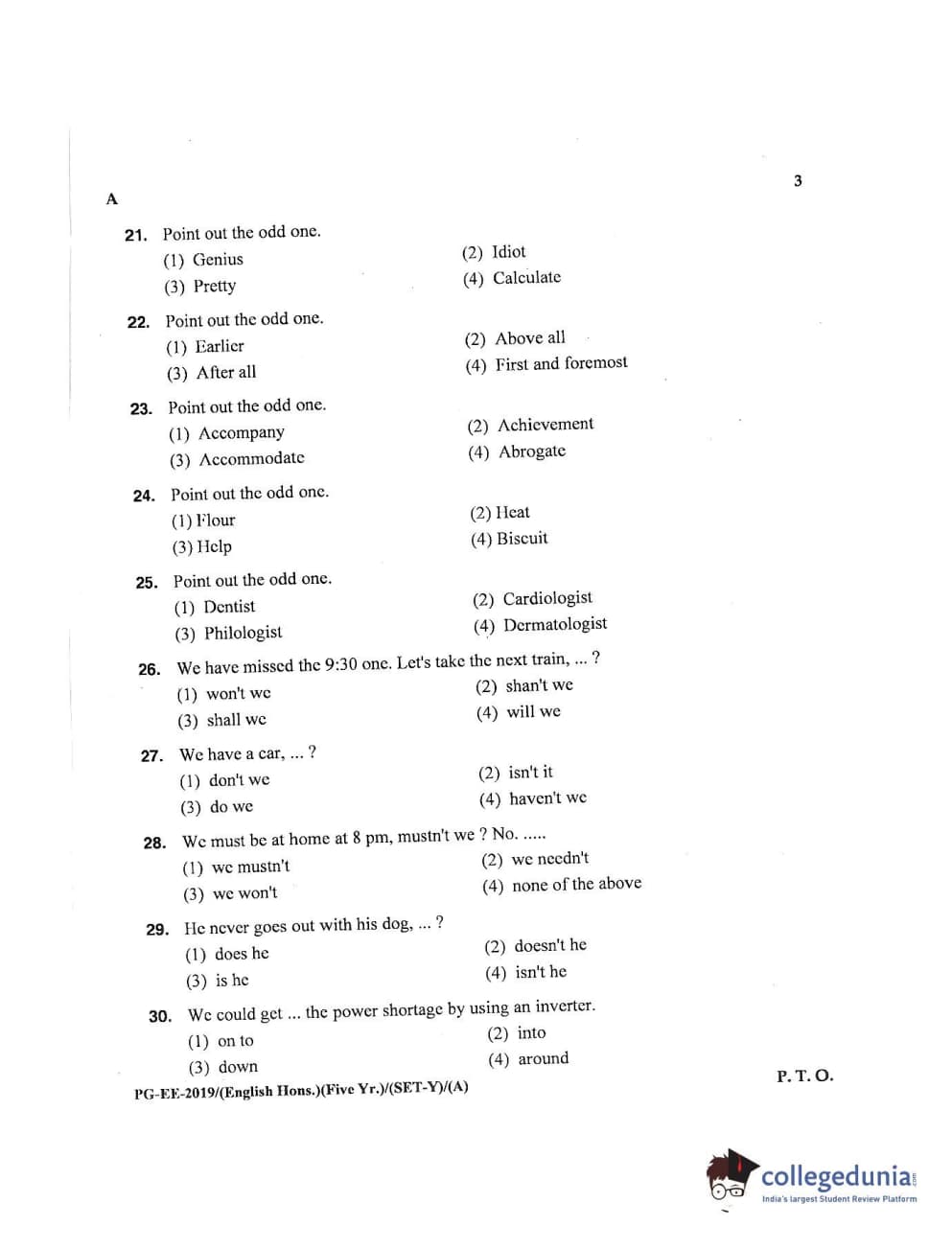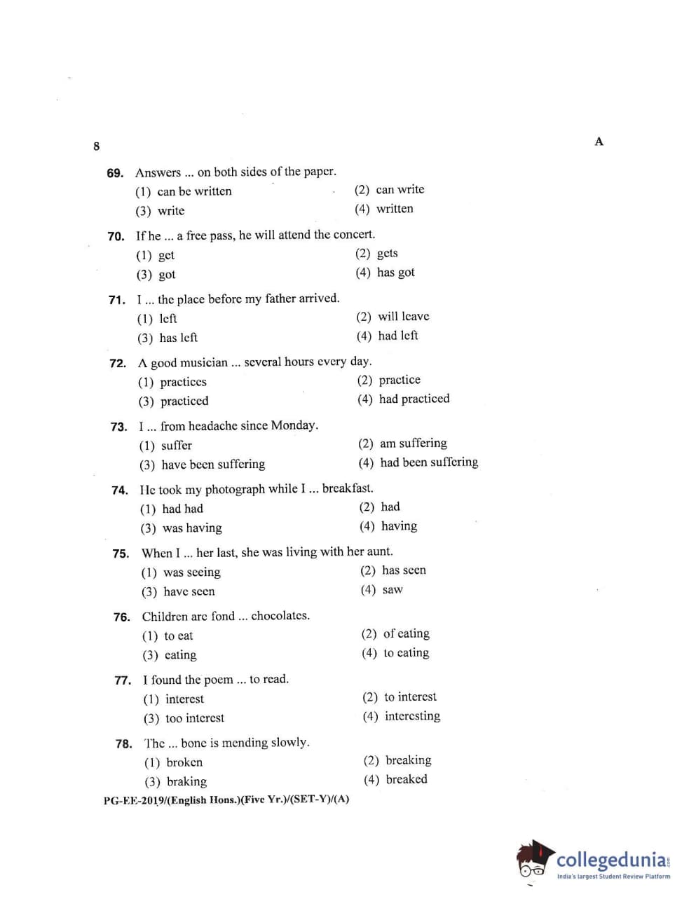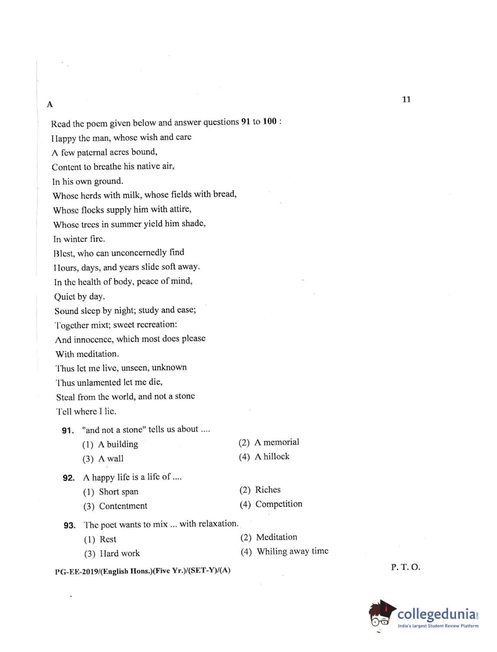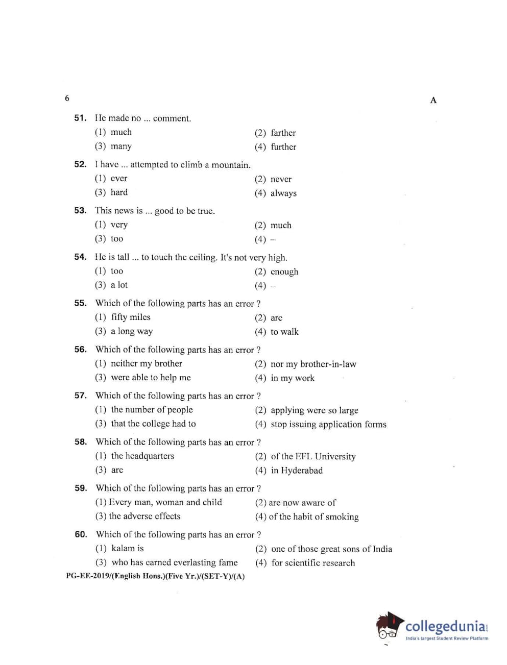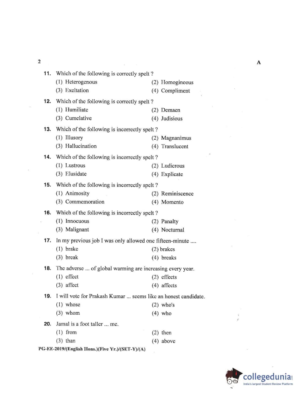 | MDUCEE 2019 M.A English Hons 5 Year Integrated (Reconducted) Set A Question Paper PDF | MDUCEE 2019 M.A English Hons 5 Year Integrated (Reconducted) Set A Answer Key PDF |