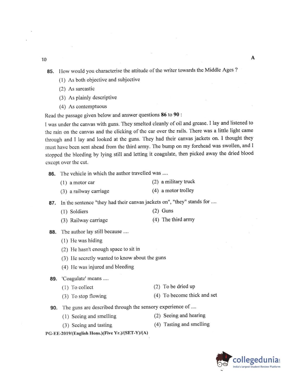 MDUCEE 2019 M.A English Hons 5 Year Integrated (Reconducted) Set A Question Paper with Answer Key PDFs