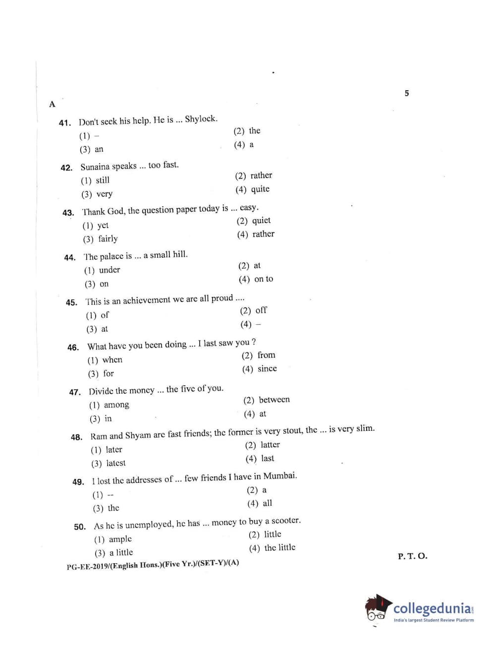 MDUCEE 2019 M.A English Hons 5 Year Integrated (Reconducted) Set A Question paper with answer key pdf is available for download. The exam was successfully organized by Maharishi Dayanand University. The question paper comprised a total of 100 questions.