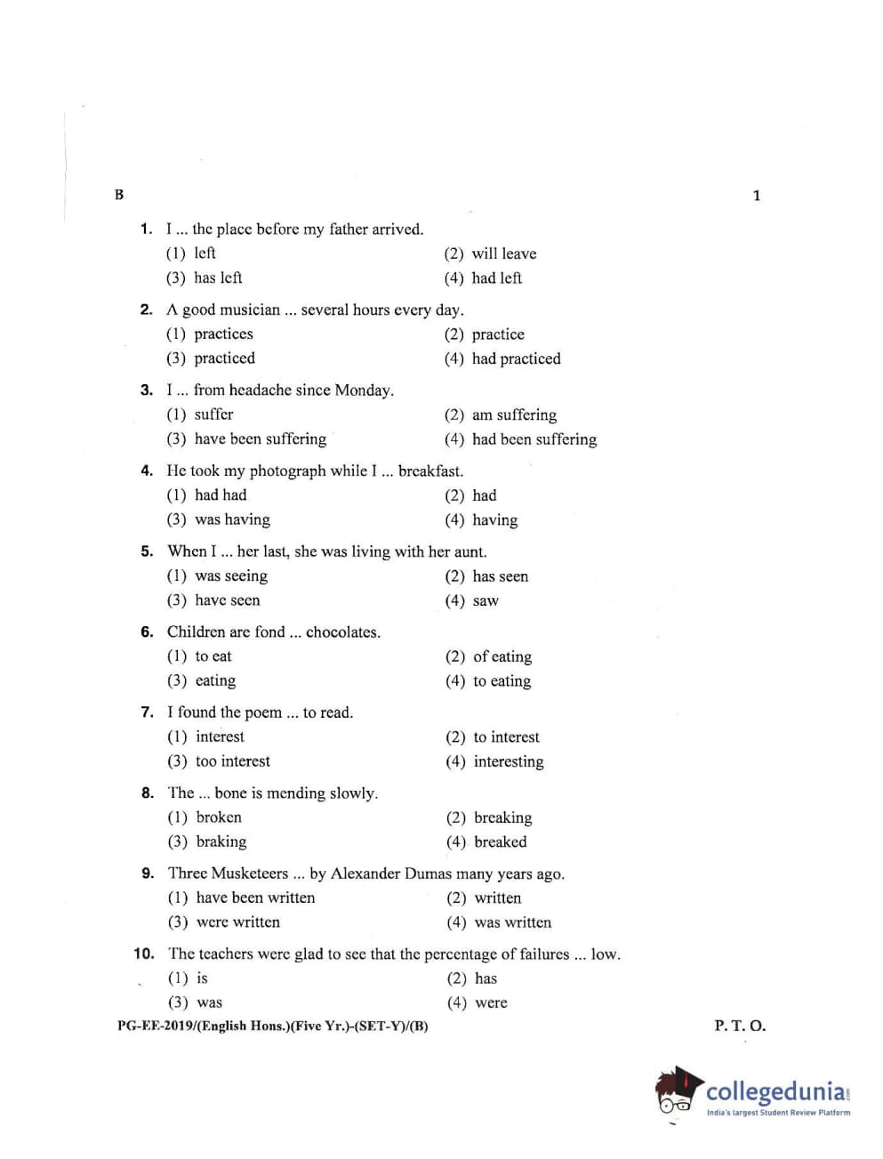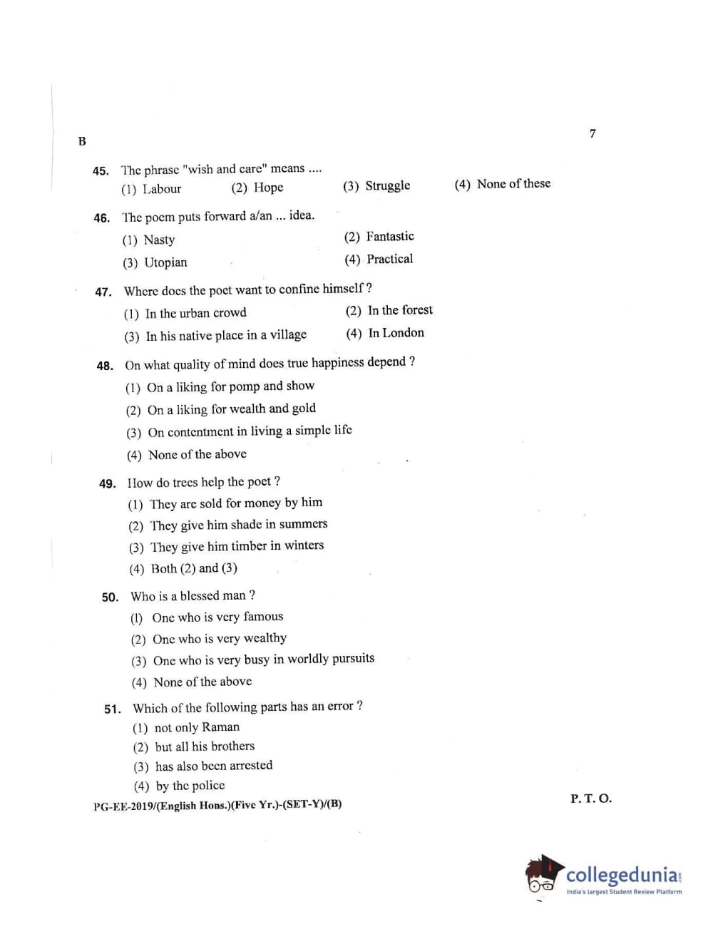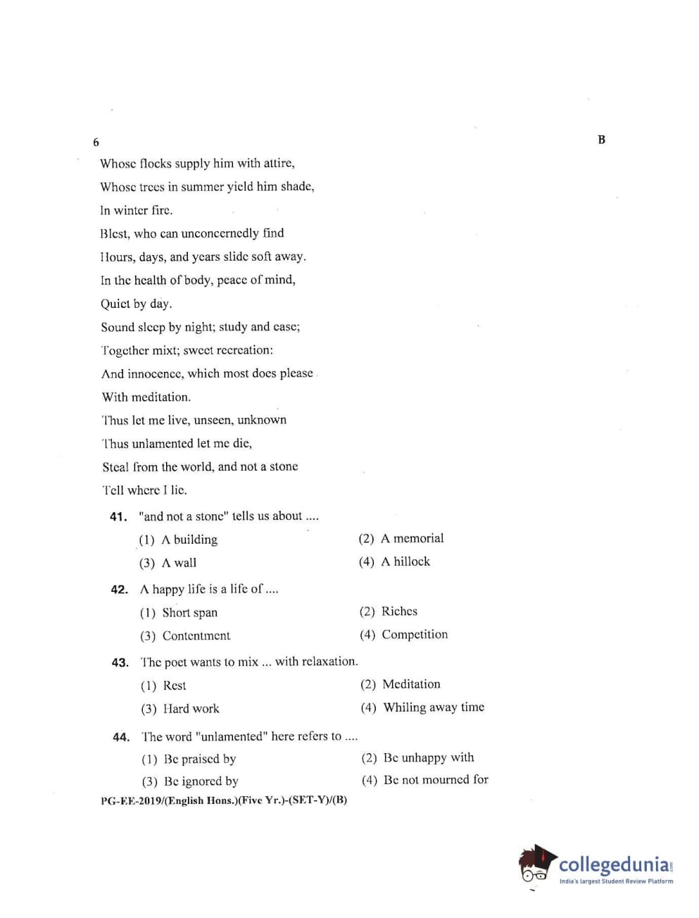 MDUCEE 2019 M.A English Hons 5 Year Integrated (Reconducted) Set B Question paper with answer key pdf is available for download. The exam was successfully organized by Maharishi Dayanand University. The question paper comprised a total of 100 questions.