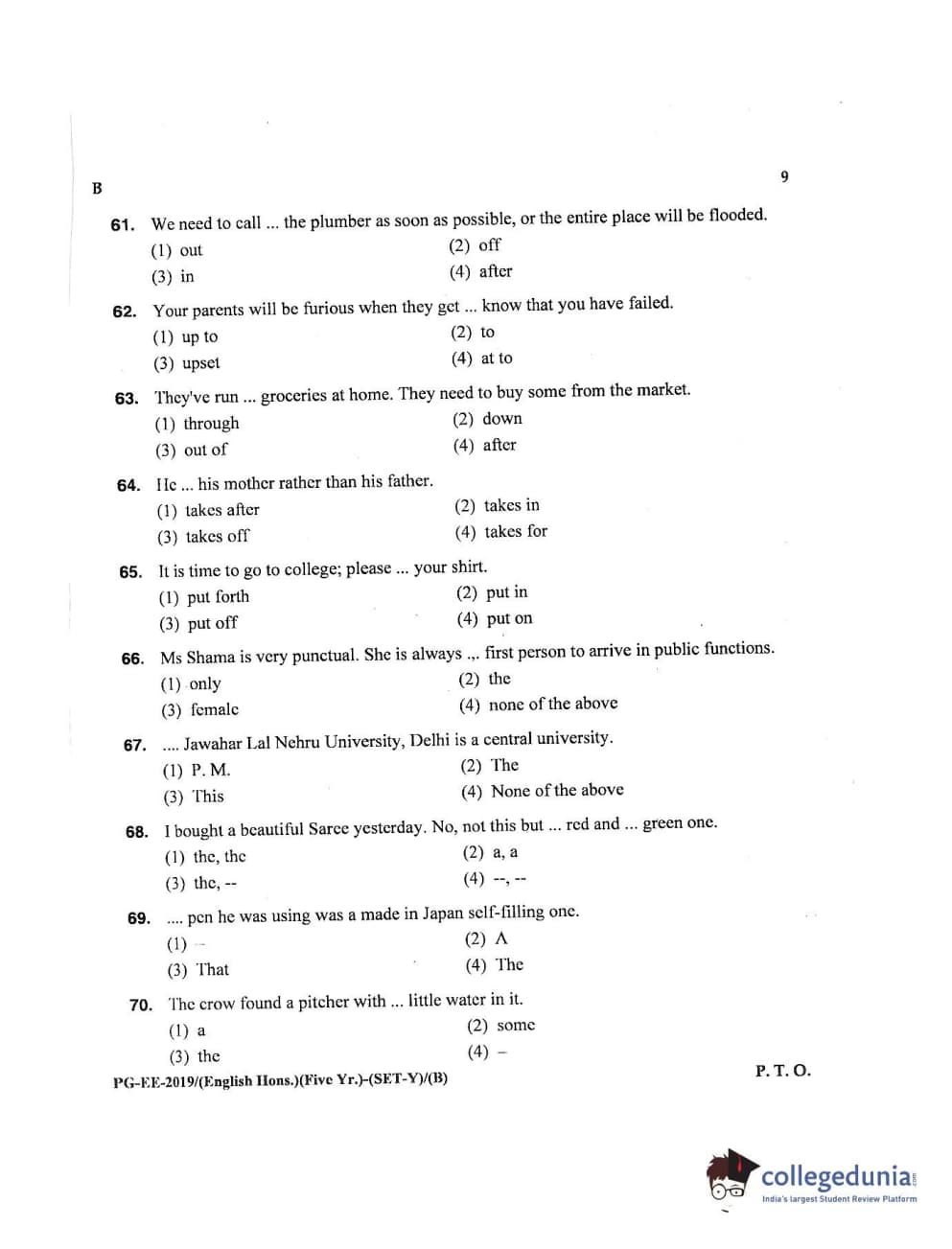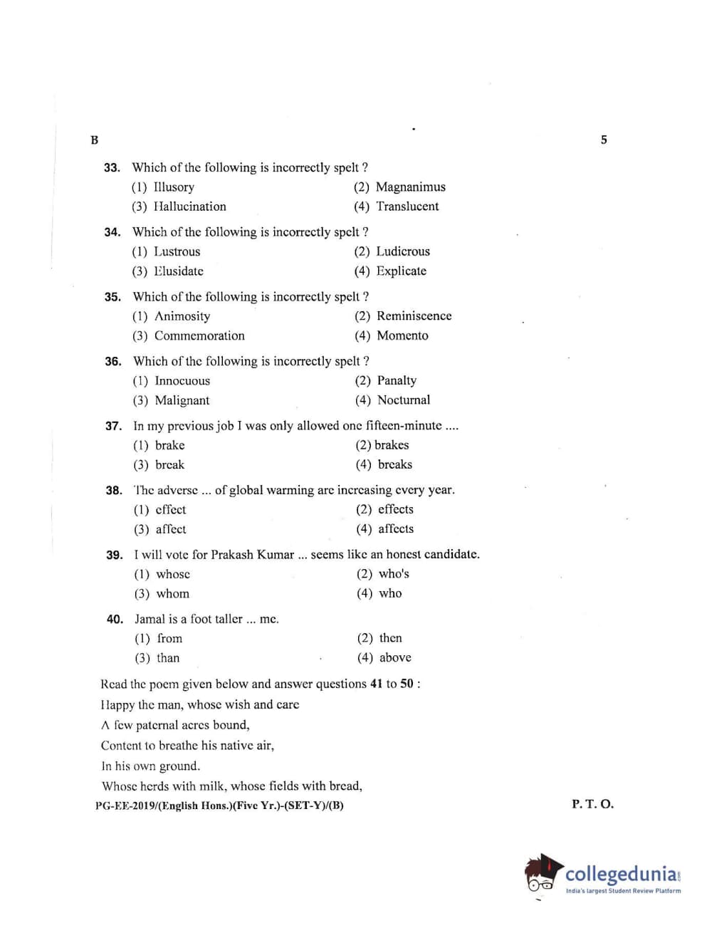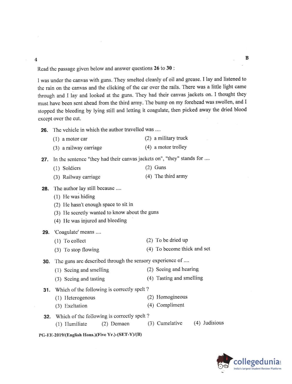 MDUCEE 2019 M.A English Hons 5 Year Integrated (Reconducted) Set B Question Paper with Answer Key PDFs