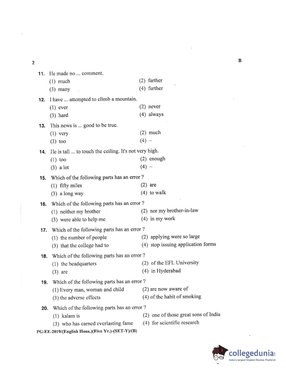 | MDUCEE 2019 M.A English Hons 5 Year Integrated (Reconducted) Set B Question Paper PDF | MDUCEE 2019 M.A English Hons 5 Year Integrated (Reconducted) Set B Answer Key PDF |