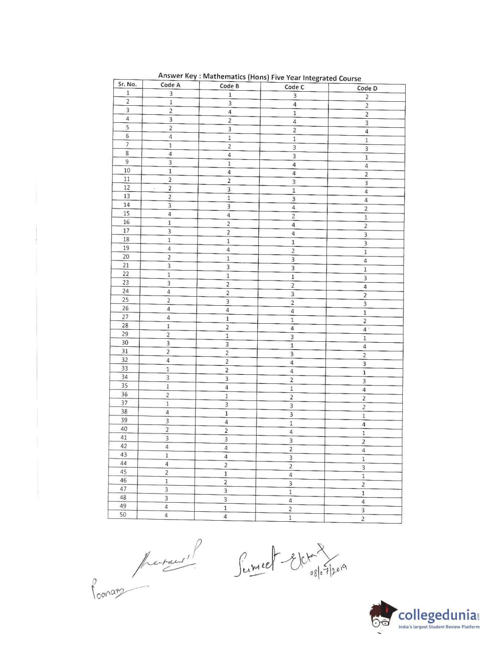 | MDUCEE 2019 Mathematics Hons. (Five Year) Set A Question Paper PDF | MDUCEE 2019 Mathematics Hons. (Five Year) Set A Answer Key PDF |